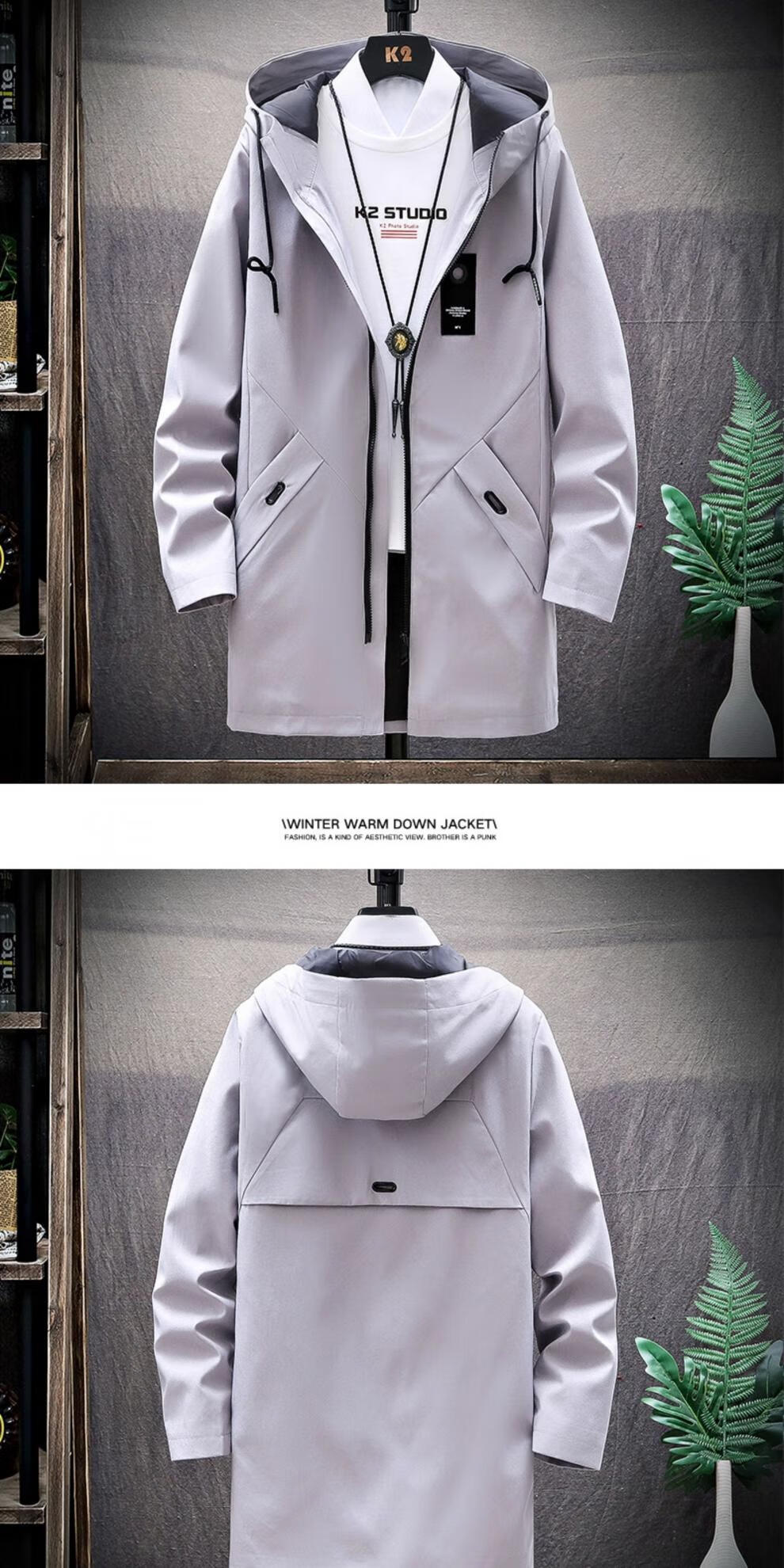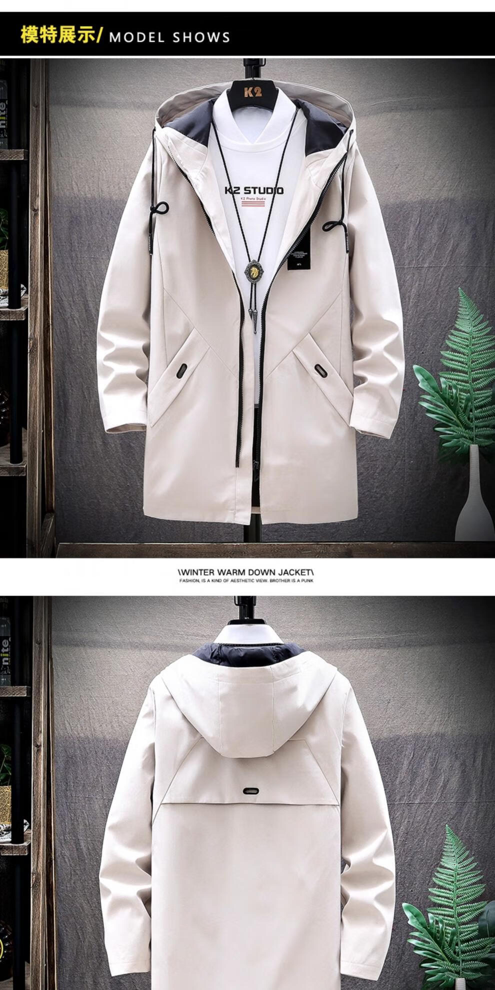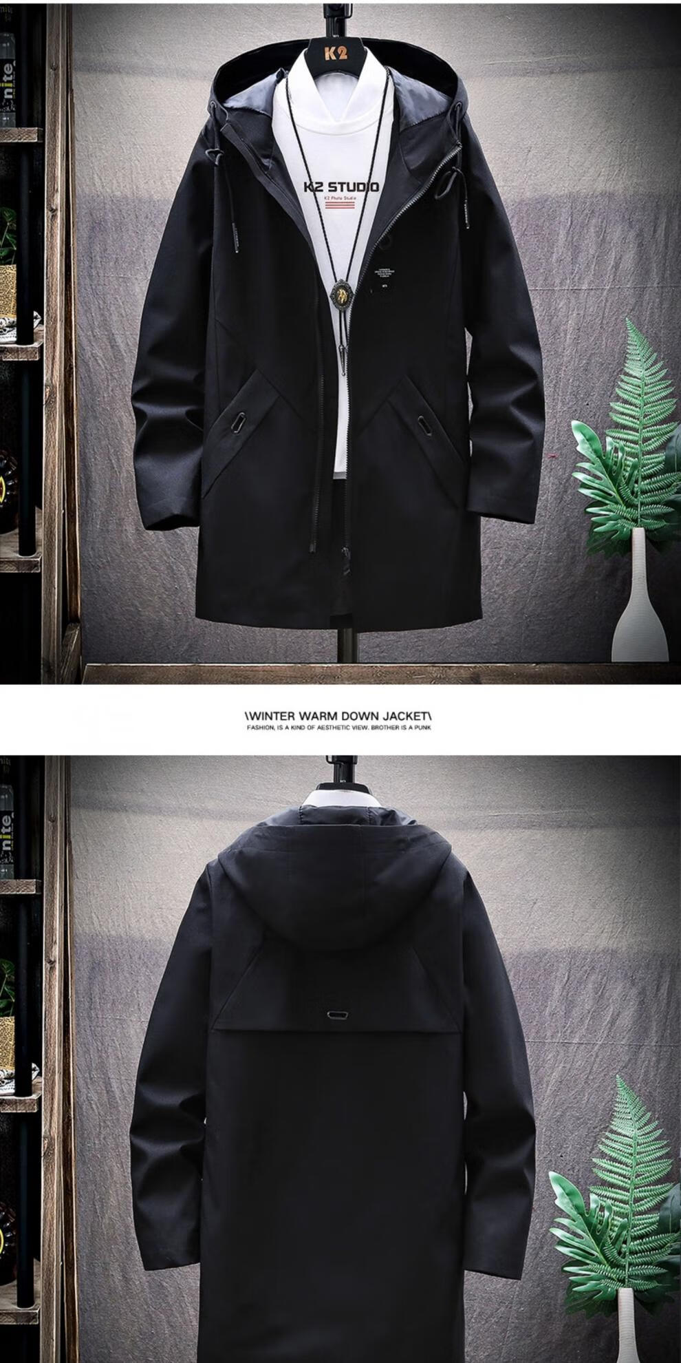 Tulan Hangzhou Итальянская французская ветровка Мужская осень 2025 г. Новая осенняя одежда Мужская модная сезонная куртка средней длины Plus Velvet Plus Small Squares (Black Plus Velvet XL)