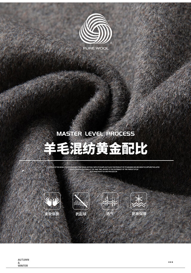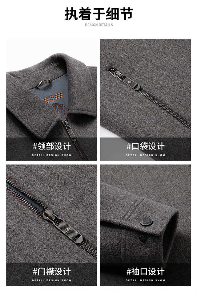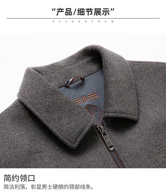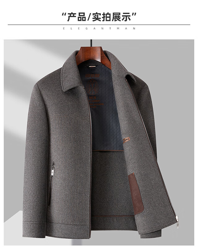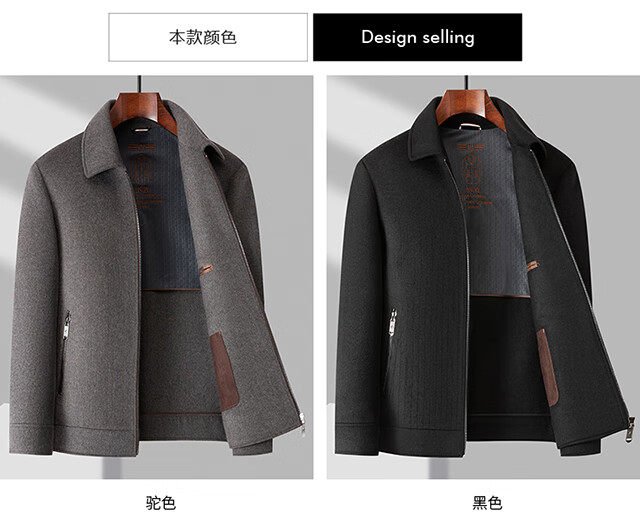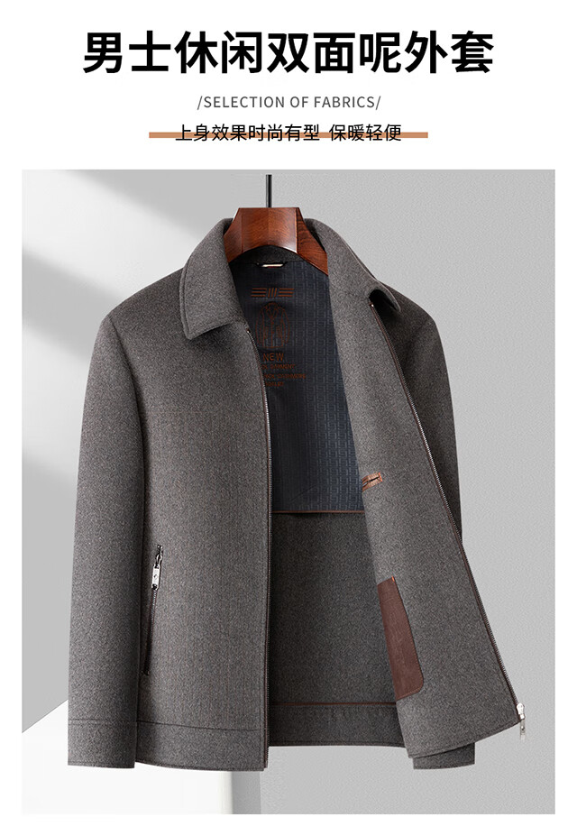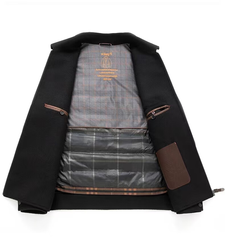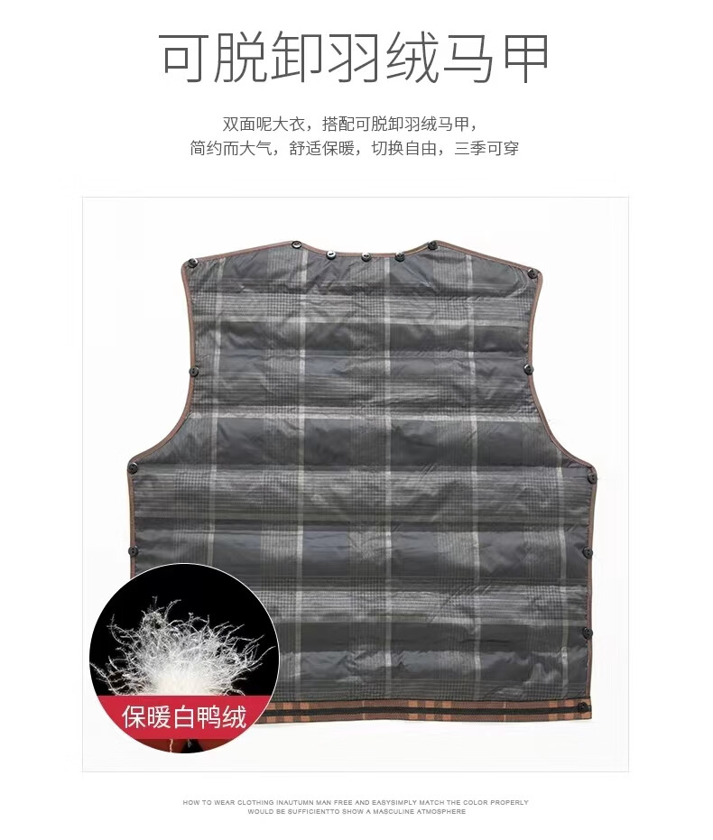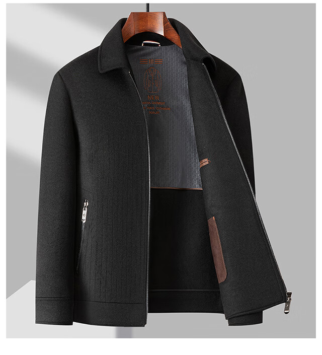 国际米澜高端秋冬季绵羊毛高端双面呢外套男翻领加厚呢子可脱卸白鸭绒内胆 黑色 XL 130-150斤