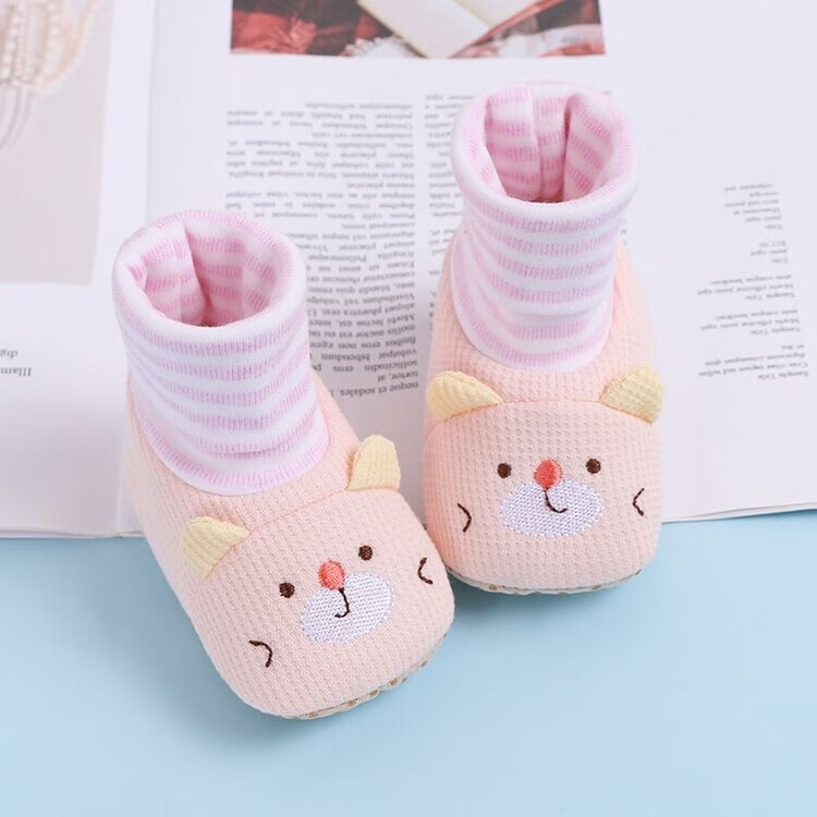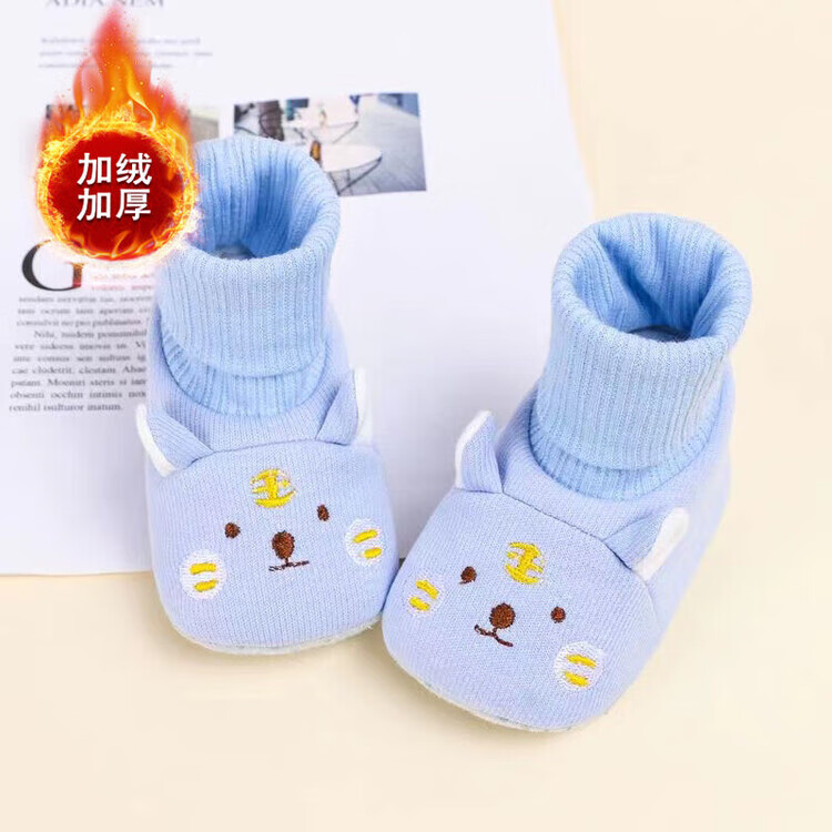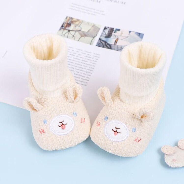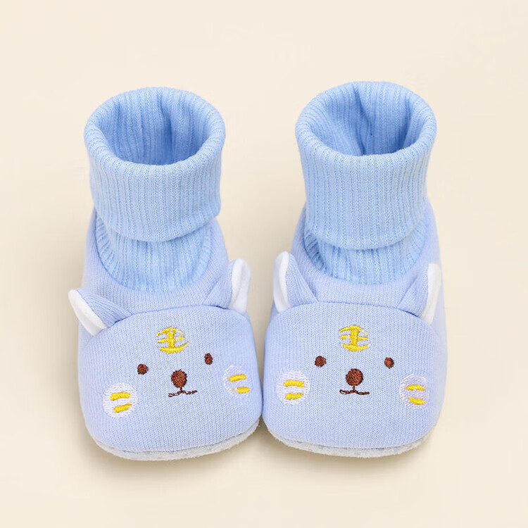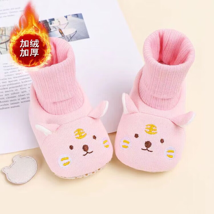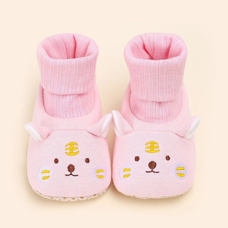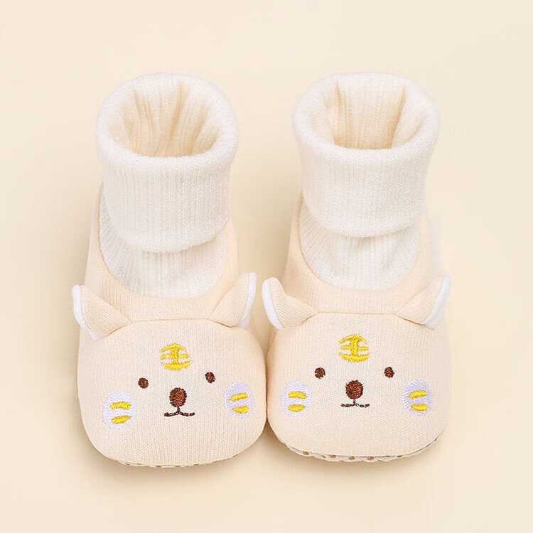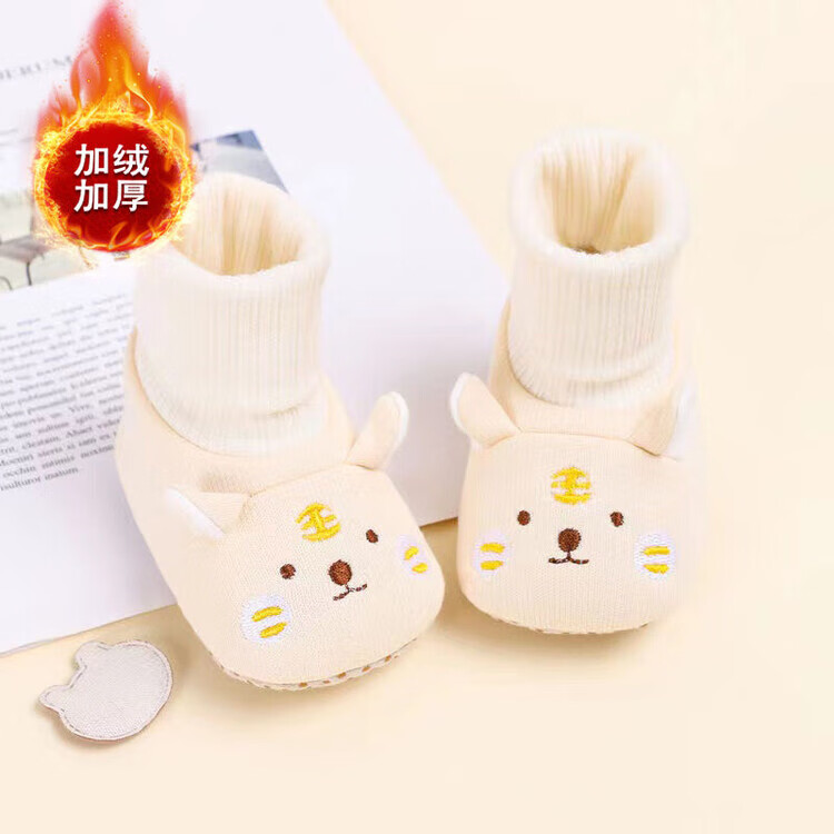 馍彭婴儿冬季鞋秋冬子0-1岁新生儿软底不掉袜男女宝宝学步防滑护脚套 淡卡其小萌虎【春秋款】 内长10.5cm 建议0-3个月