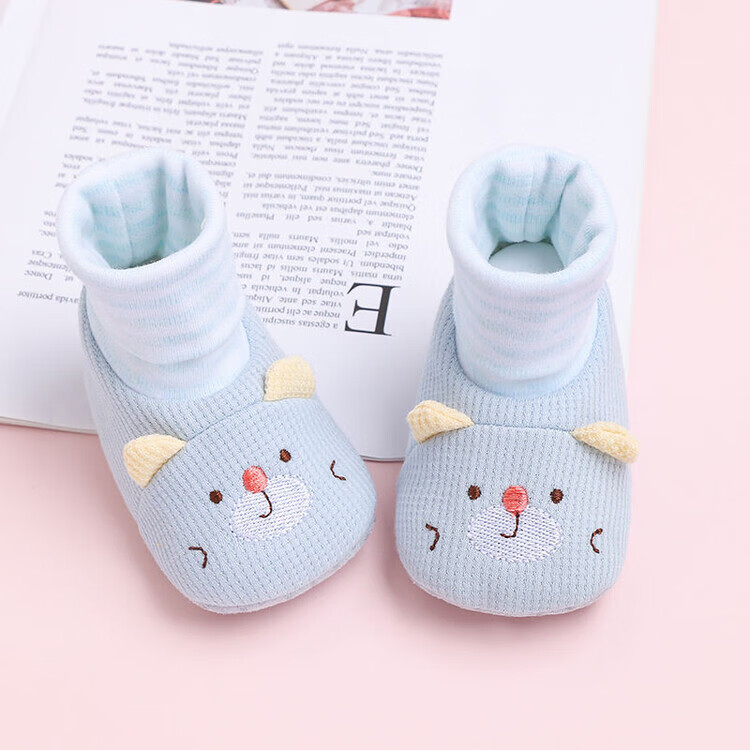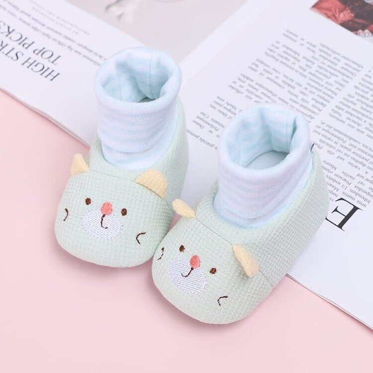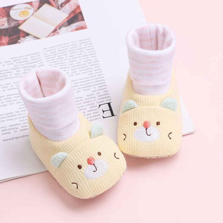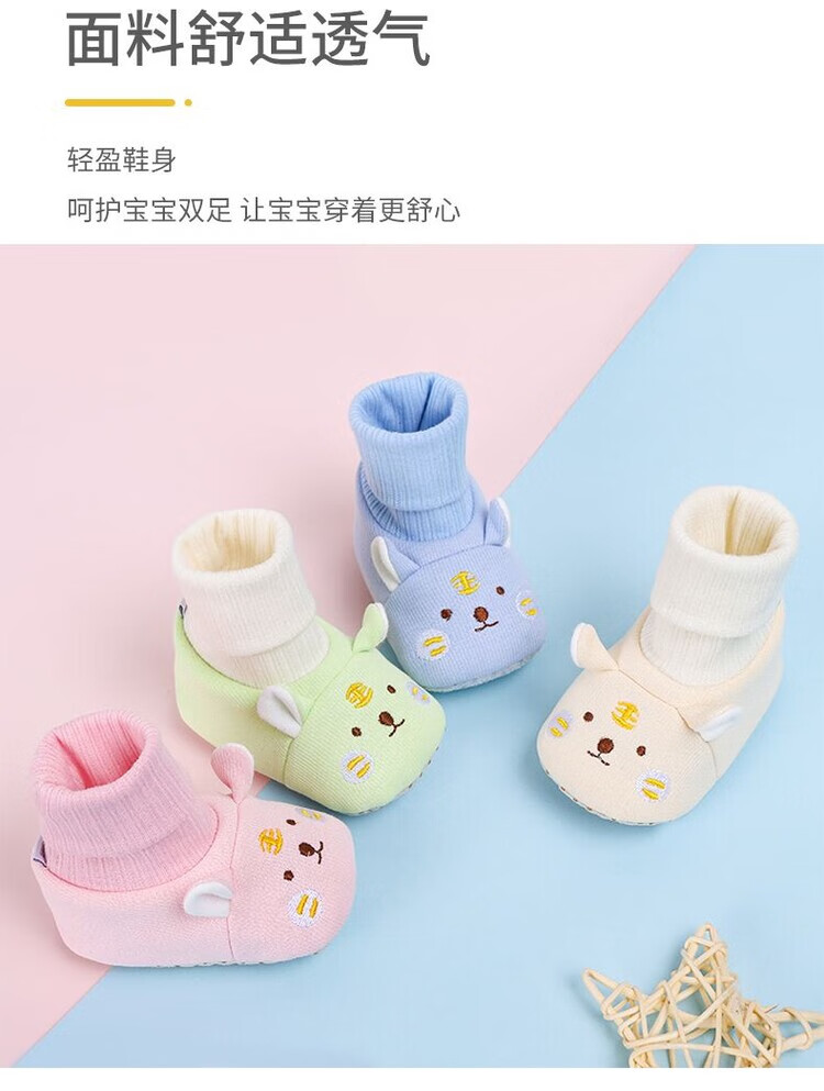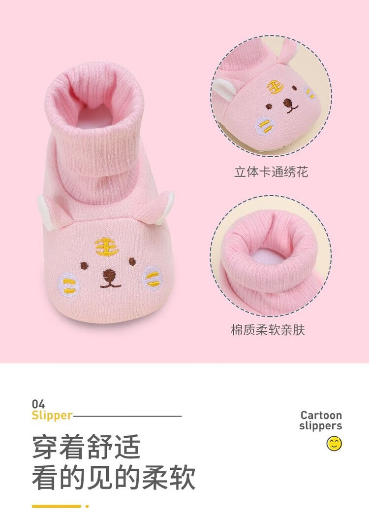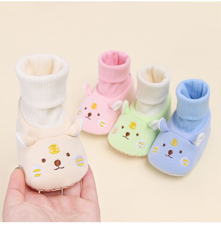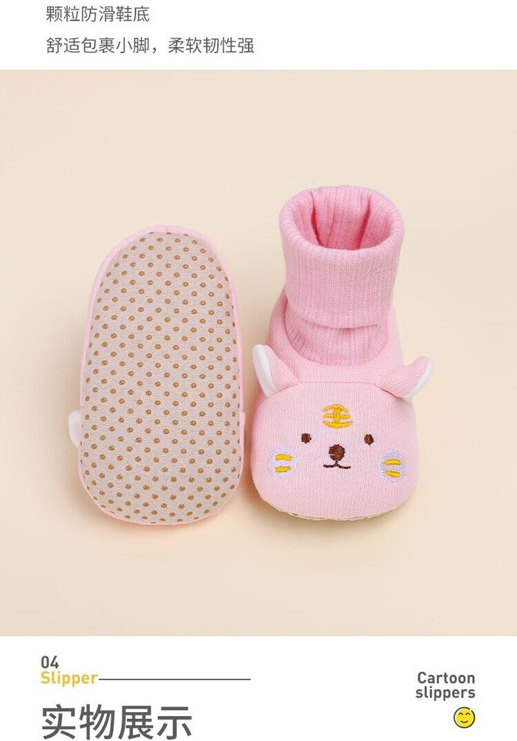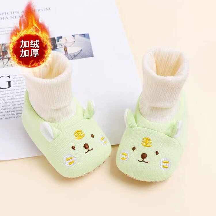 馍彭婴儿冬季鞋秋冬子0-1岁新生儿软底不掉袜男女宝宝学步防滑护脚套 淡卡其小萌虎【春秋款】 内长10.5cm 建议0-3个月