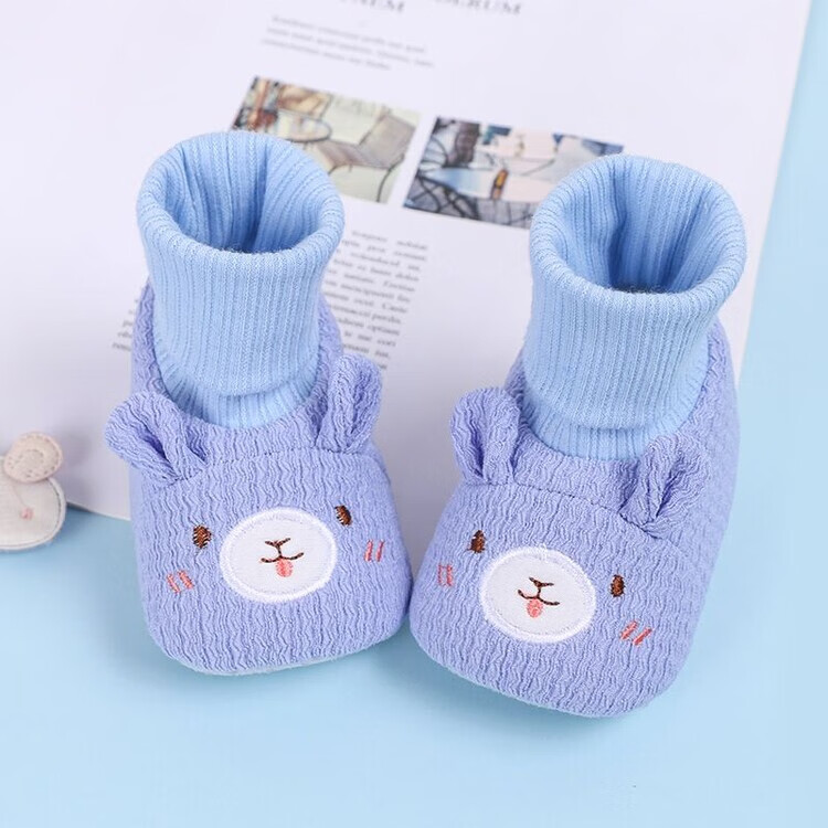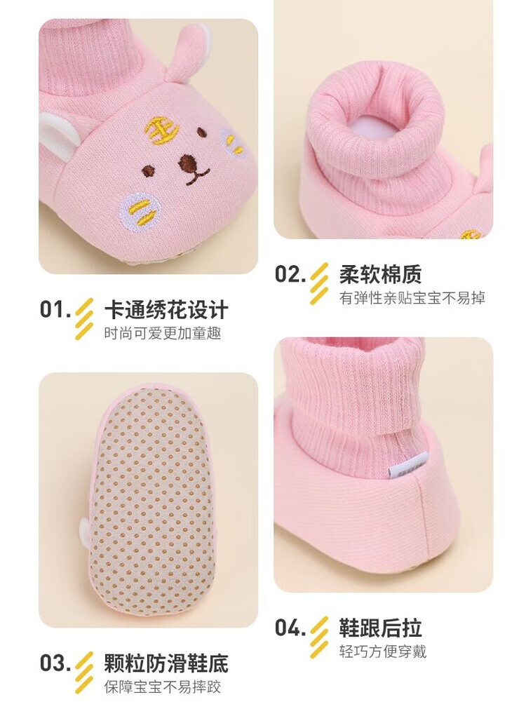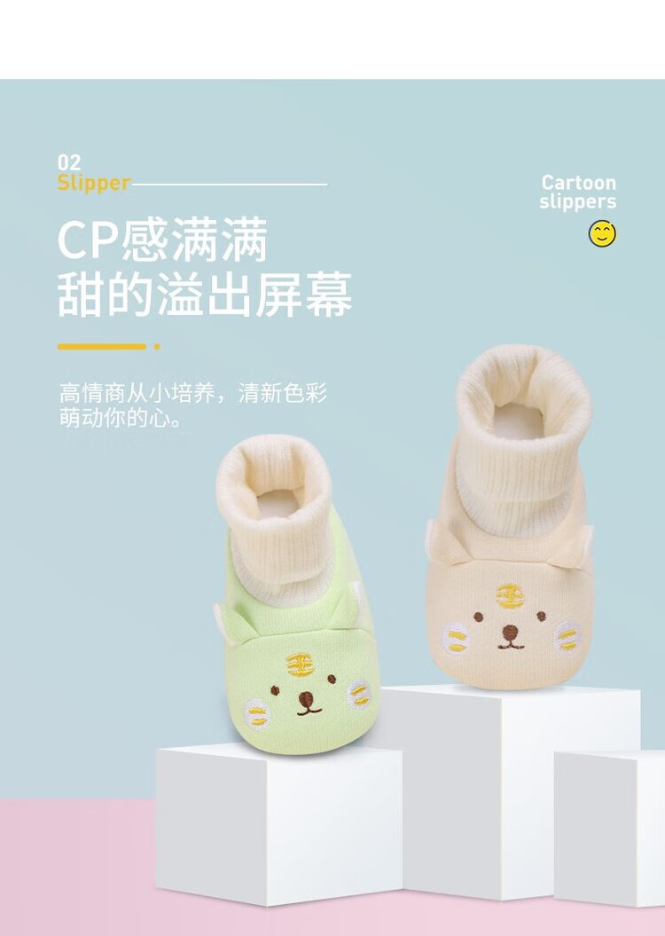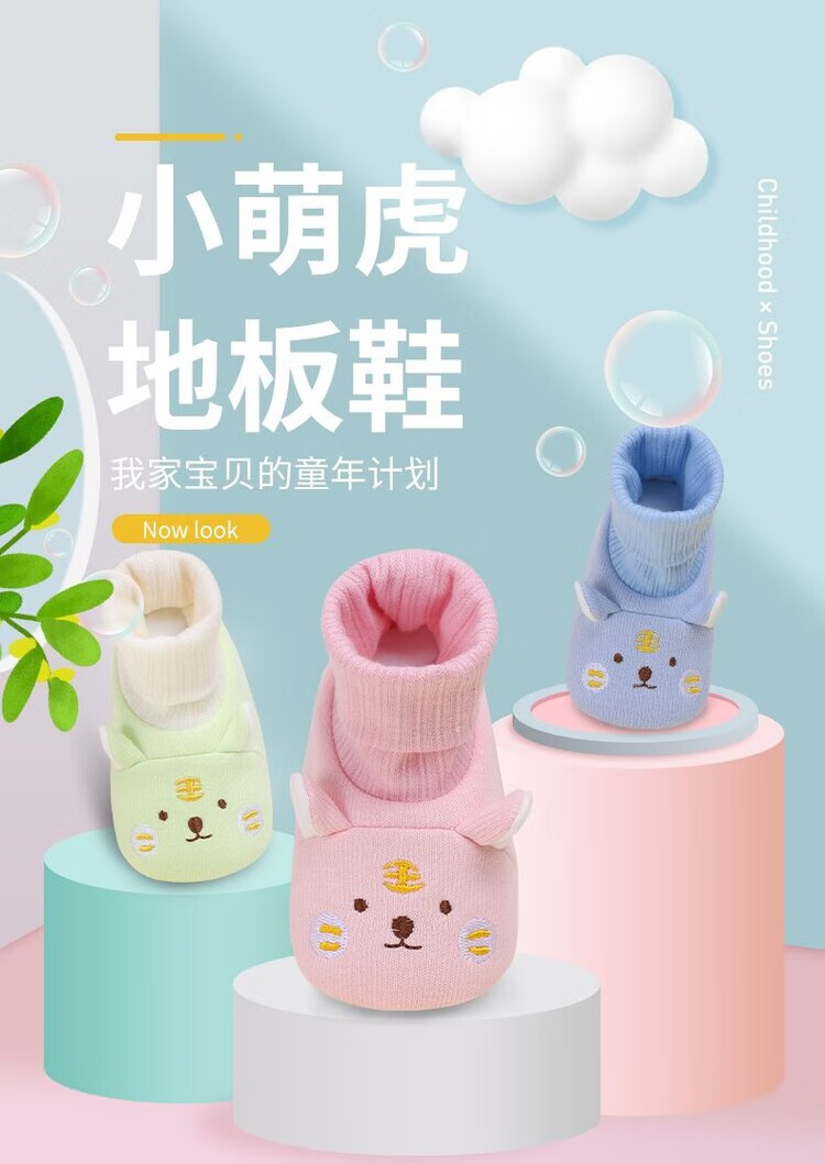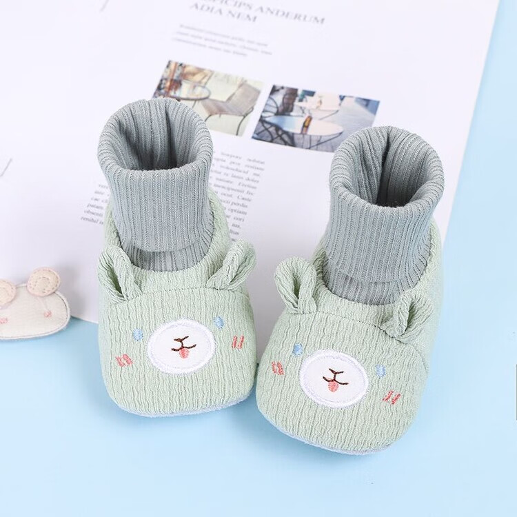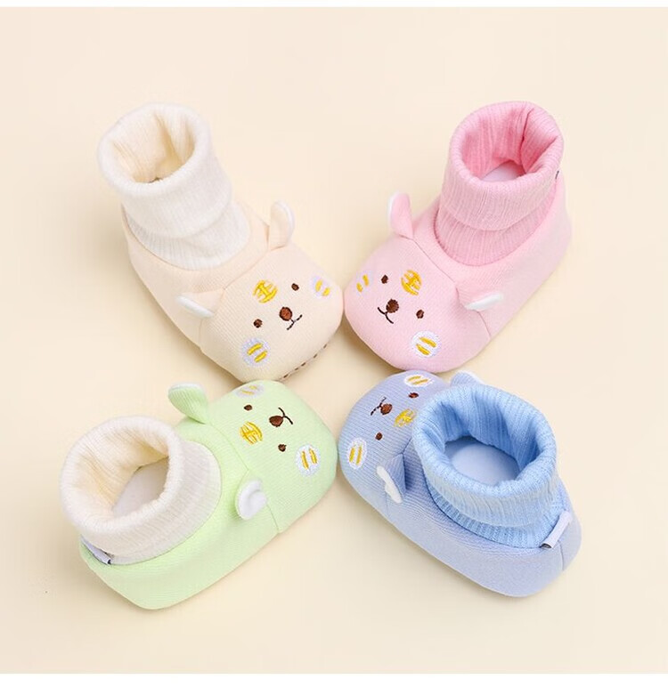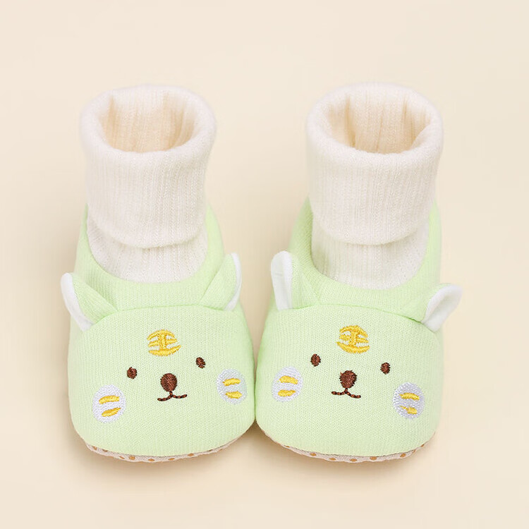 馍彭婴儿冬季鞋秋冬子0-1岁新生儿软底不掉袜男女宝宝学步防滑护脚套 淡卡其小萌虎【春秋款】 内长10.5cm 建议0-3个月