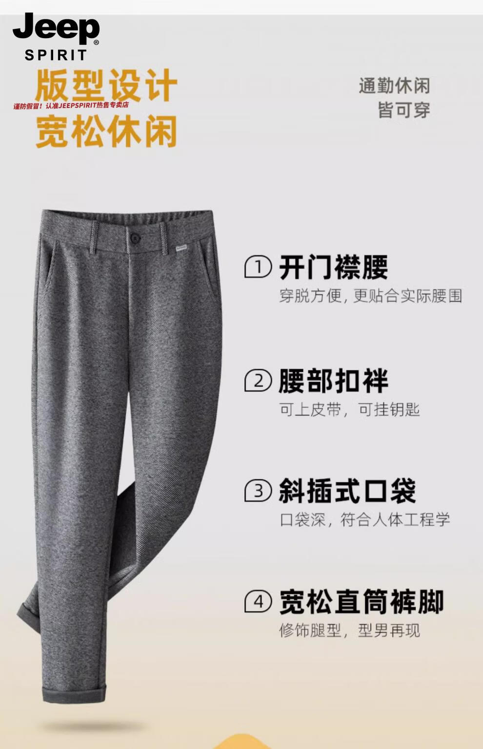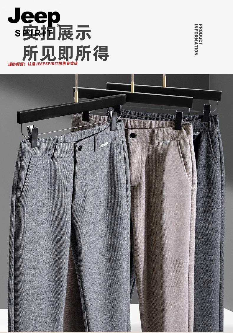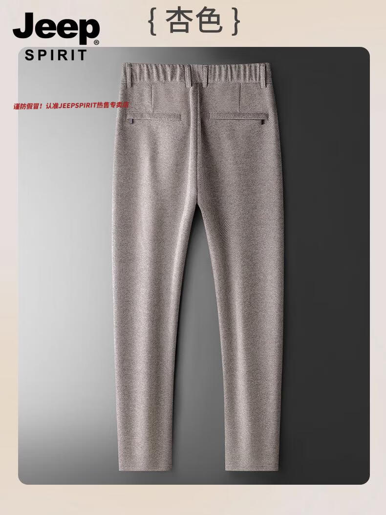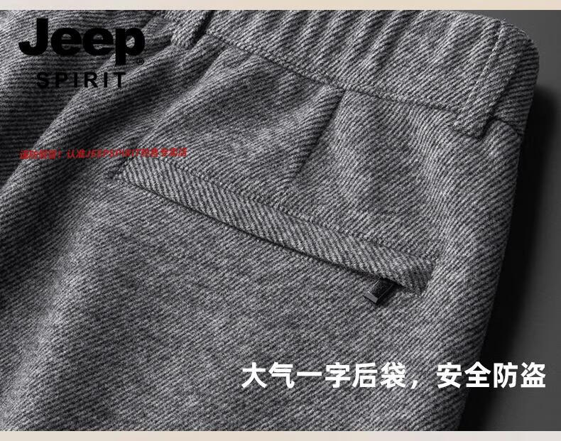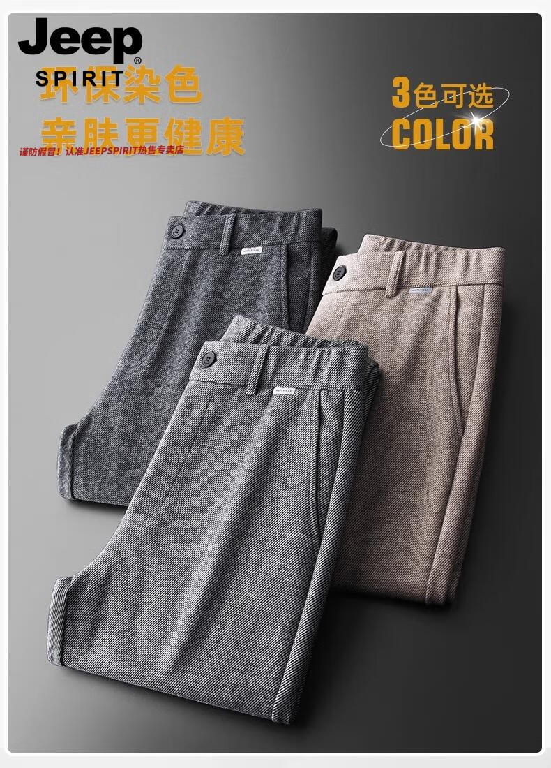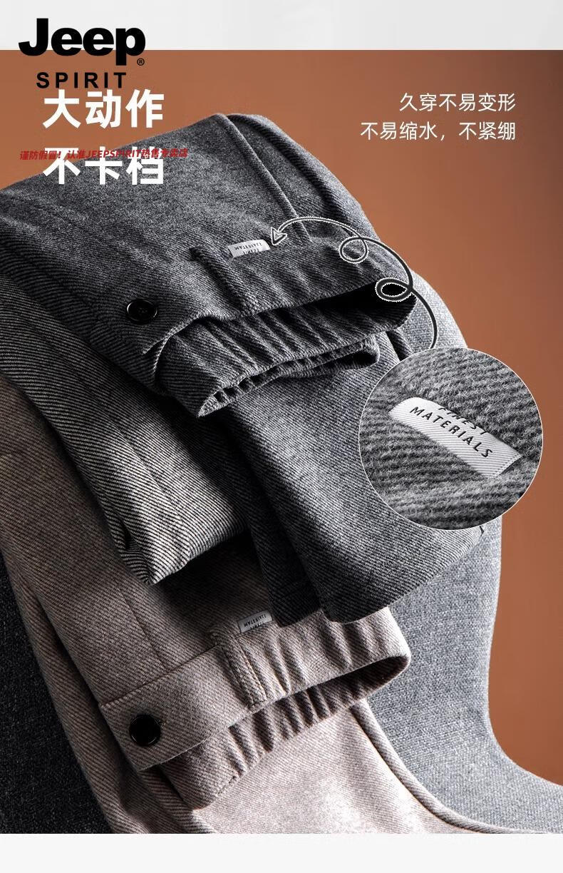 JEEP SPIRIT高端羊毛 轻奢男士休闲裤宽松直筒高腰深档厚款秋冬季男裤子加绒 杏色【高端羊毛】 M 建议【110-126】