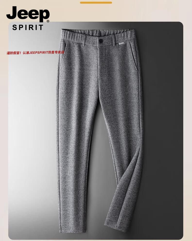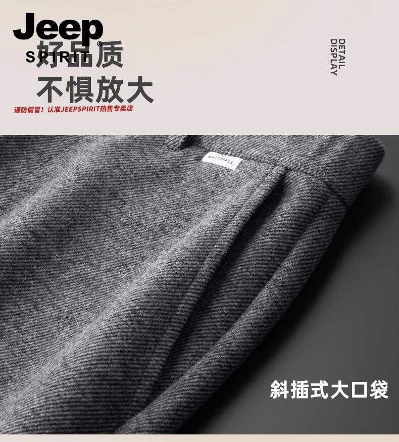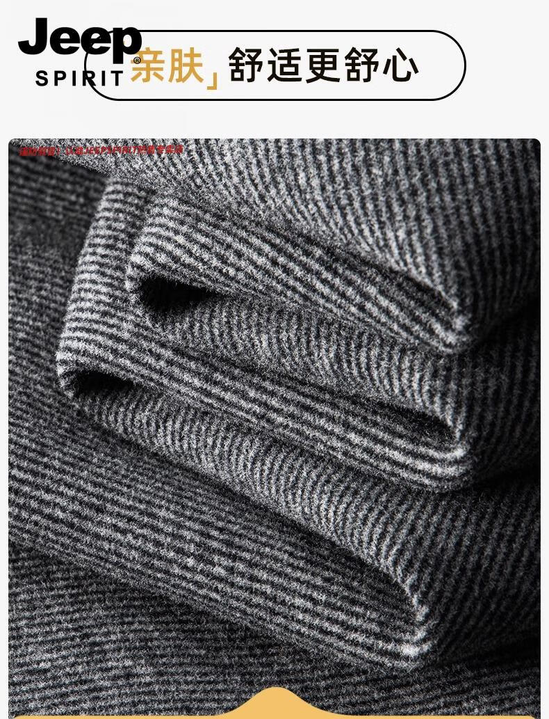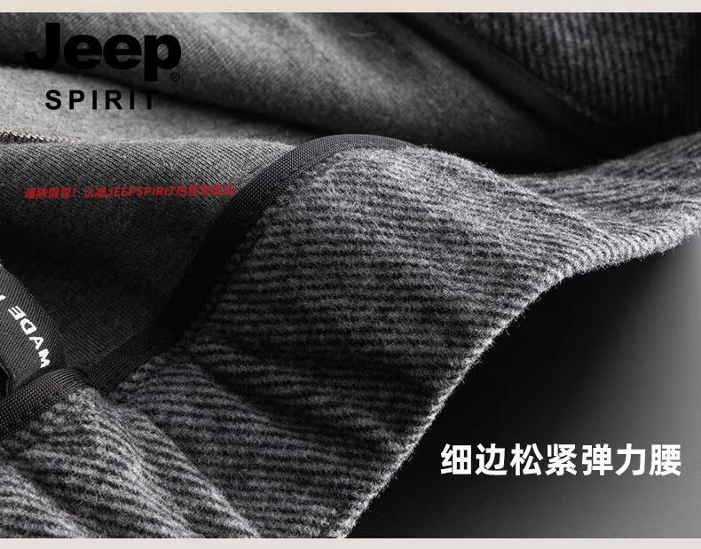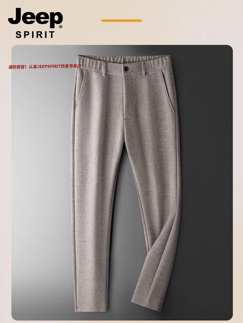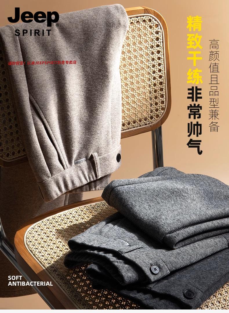 JEEP SPIRIT高端羊毛 轻奢男士休闲裤宽松直筒高腰深档厚款秋冬季男裤子加绒 杏色【高端羊毛】 M 建议【110-126】