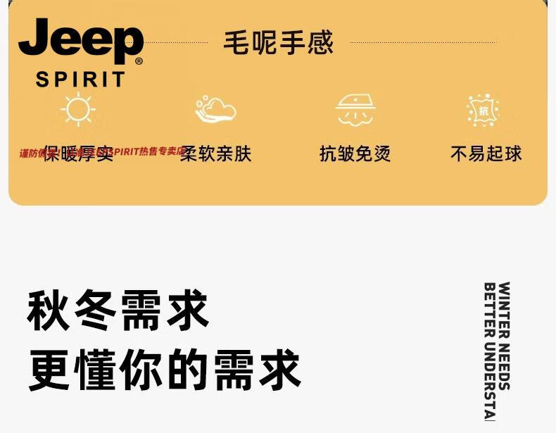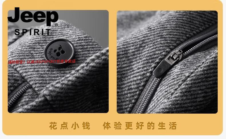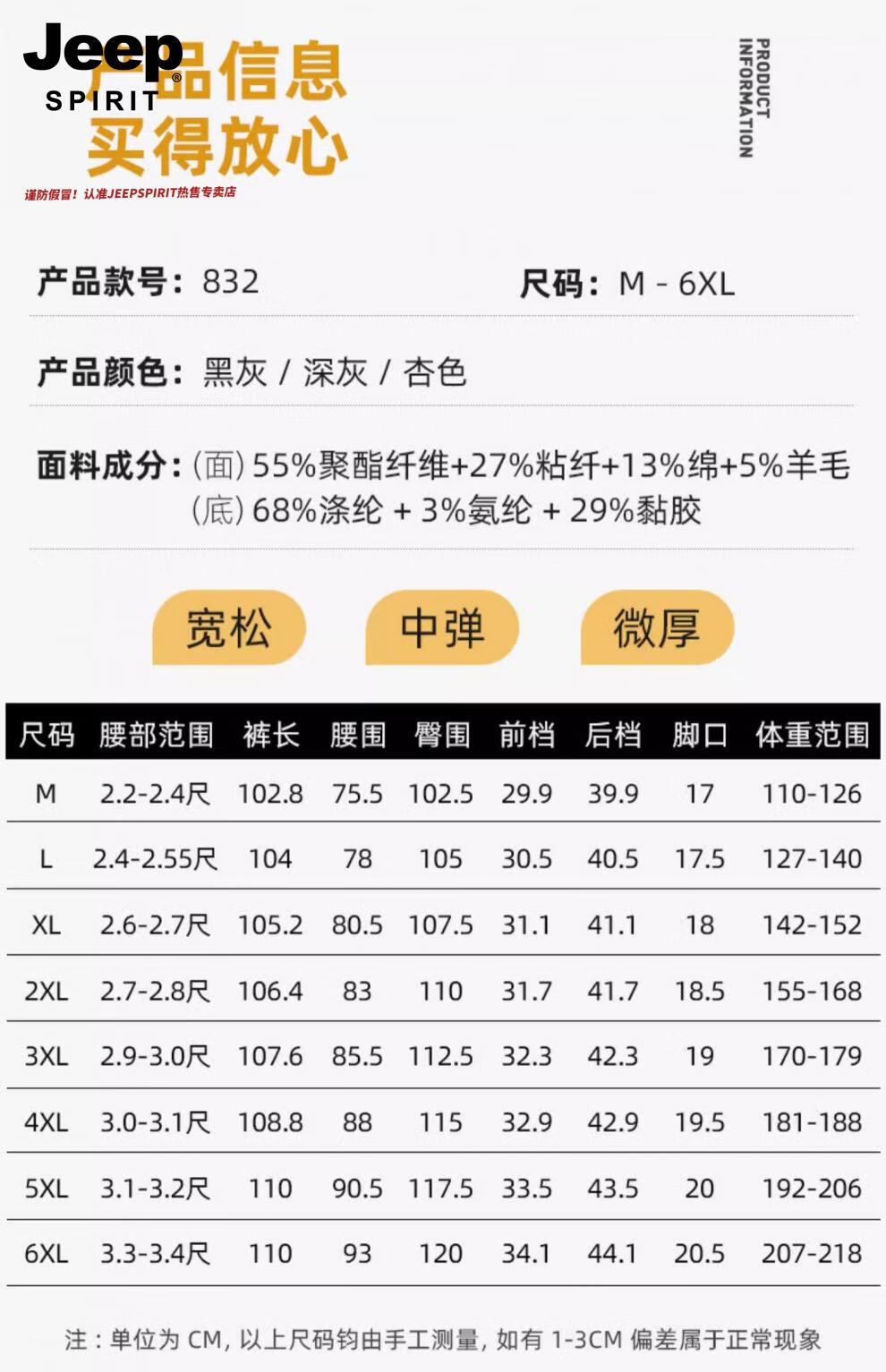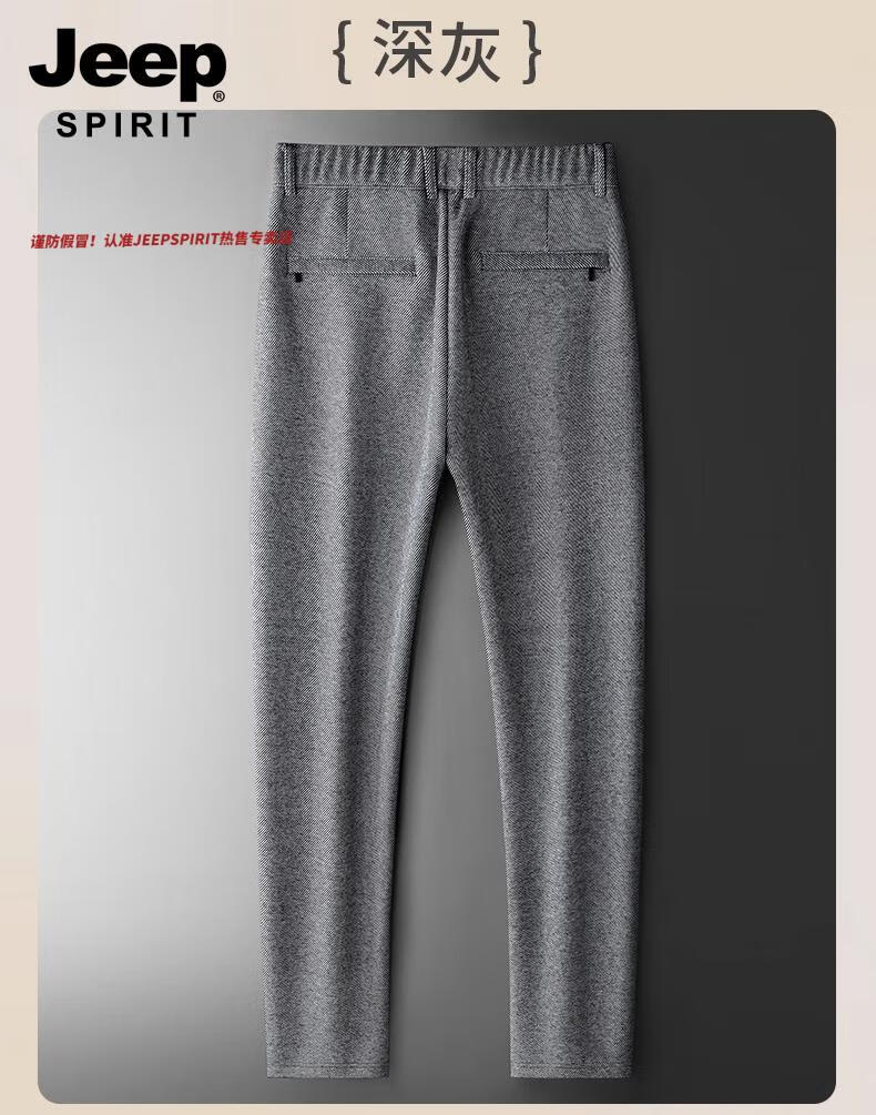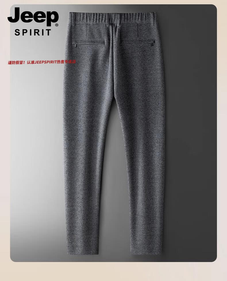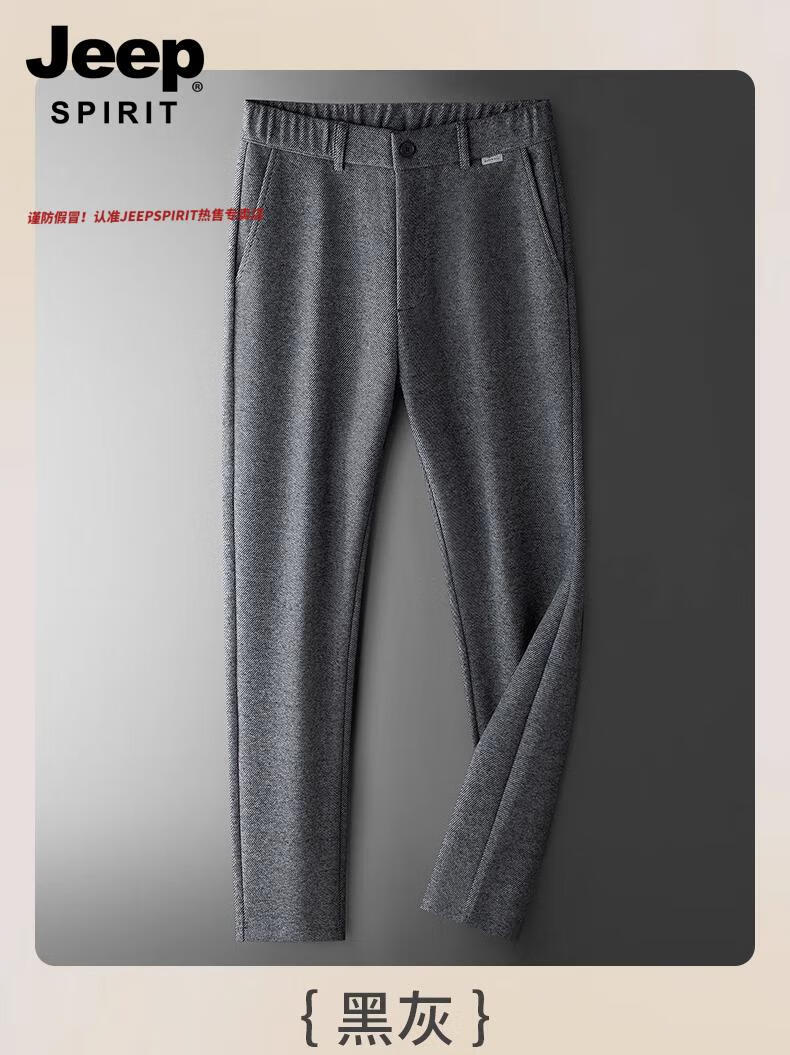 JEEP SPIRIT高端羊毛 轻奢男士休闲裤宽松直筒高腰深档厚款秋冬季男裤子加绒 杏色【高端羊毛】 M 建议【110-126】