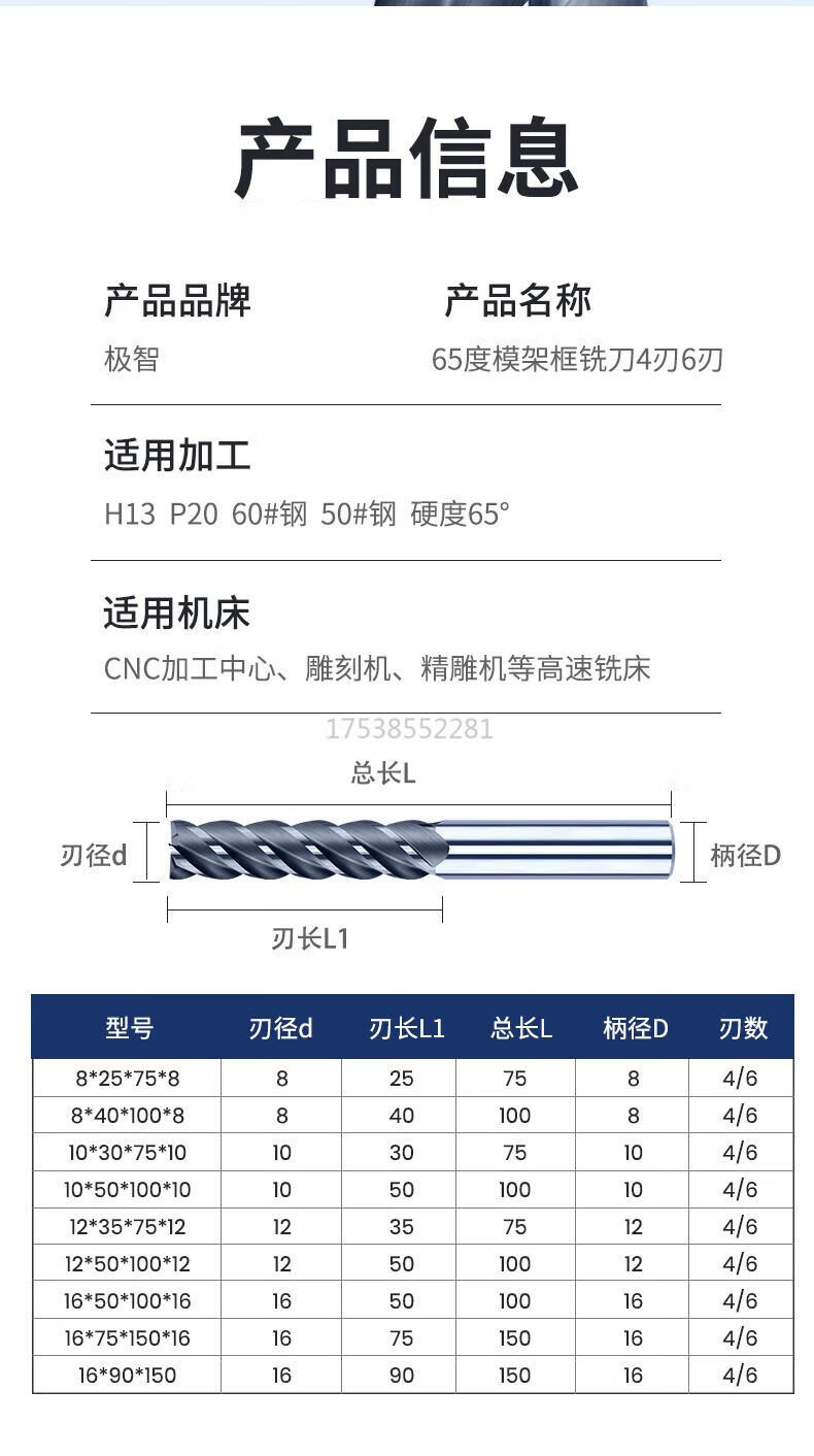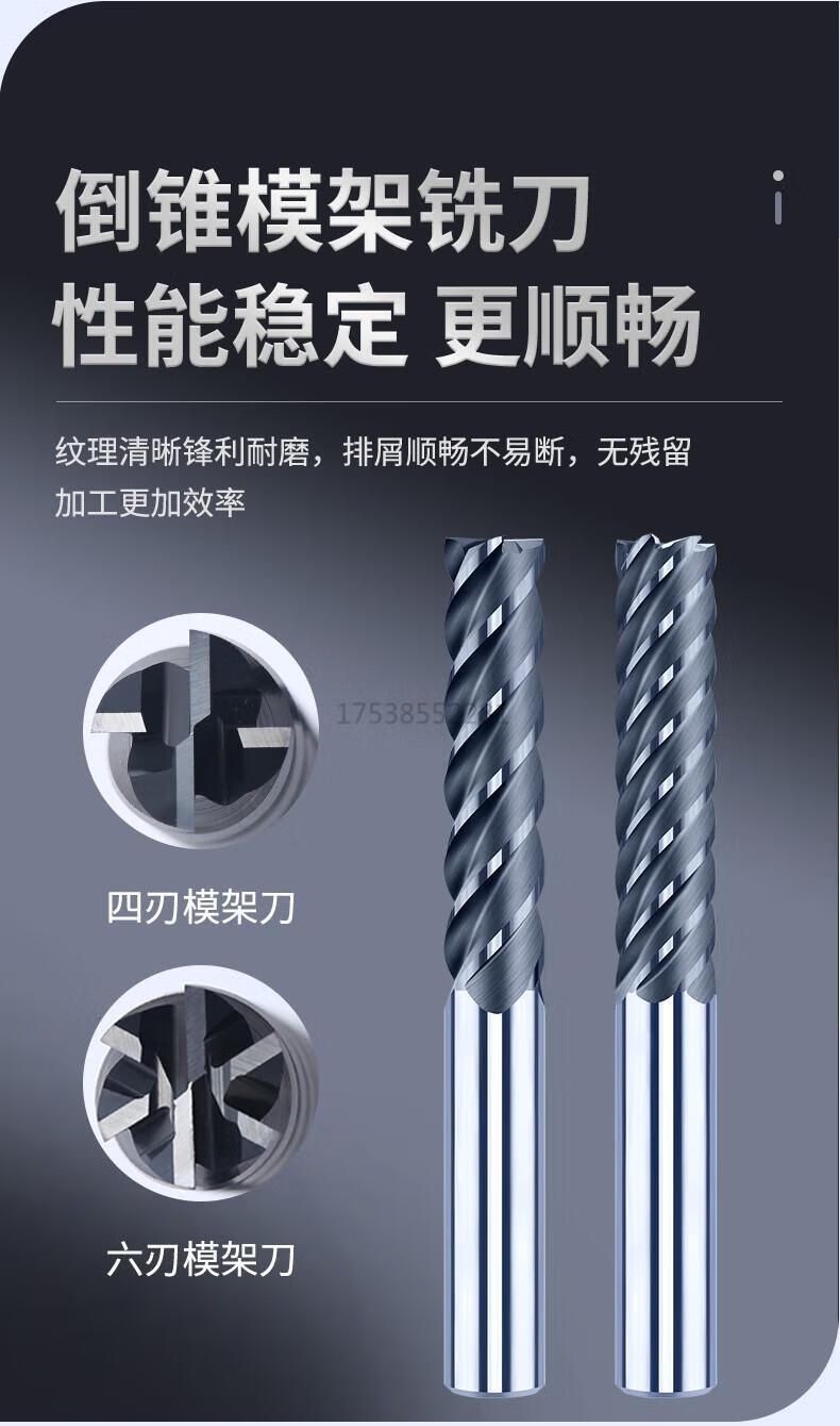 He Jiagong 65-Grad-Formrahmenfräser aus Wolframstahl mit verlängerter Klinge, 4 Klingen, 6 Klingen, Schaftfräser, Formrahmen, umgekehrter Kegel, Hartmetall 10 12 16 6. Wenn Sie eine Anpassung benötigen, kontaktieren Sie uns bitte