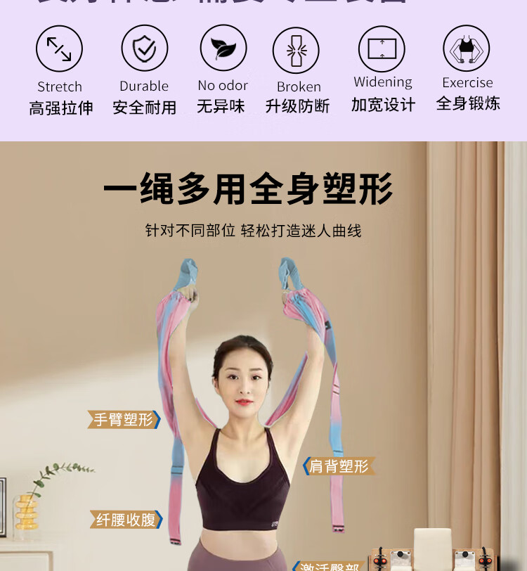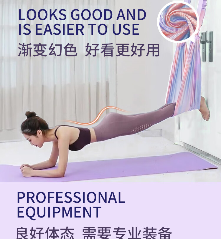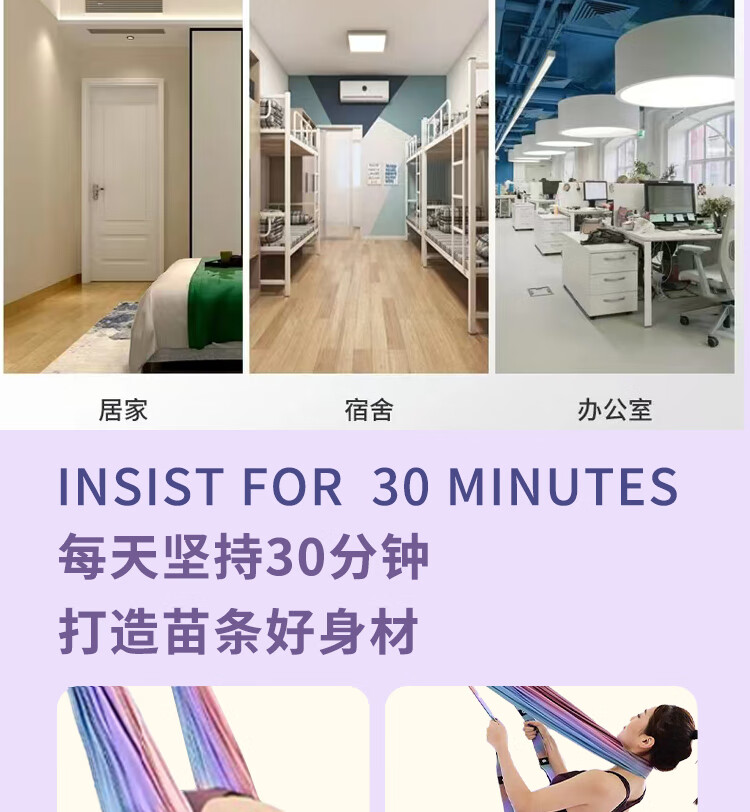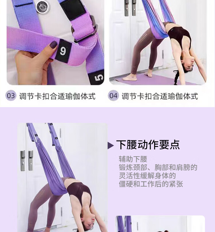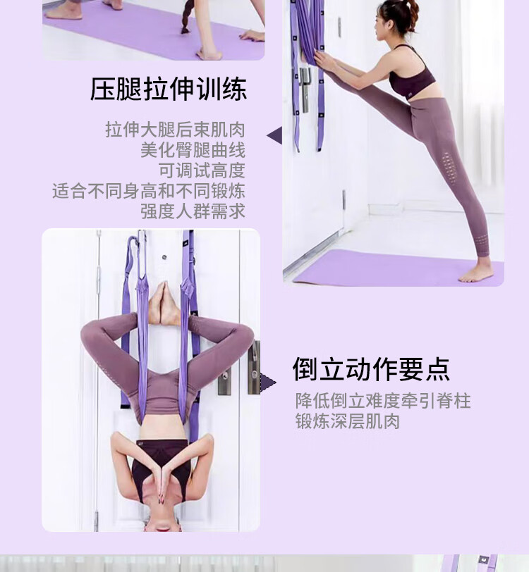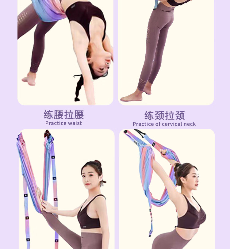 允染空中瑜伽吊绳家用用挂门伸展弹力带挂钩下腰一字马倒立训练器 霓虹色--四代半升级版开肩美