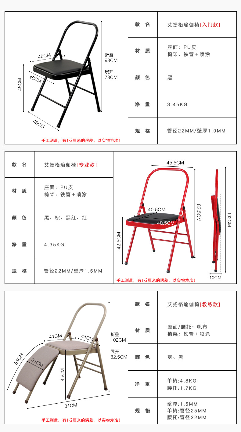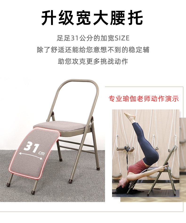 古慕妮艾扬格瑜伽椅子训练器材辅助加粗辅具可折叠倒立架多功能折叠椅子 灰色双梁+腰脱布面壁厚