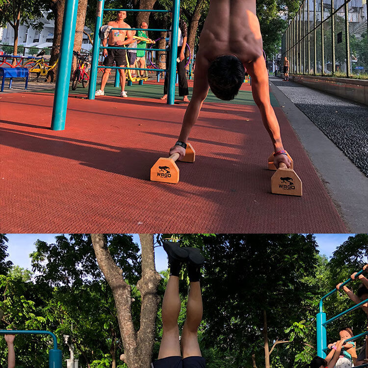 WRGD Soporte para flexiones rusas, artefacto para parada de manos, equipo de ejercicios para deportes en el hogar al aire libre, barras individuales y paralelas de madera maciza, logotipo de haya importado, 25 cm de largo