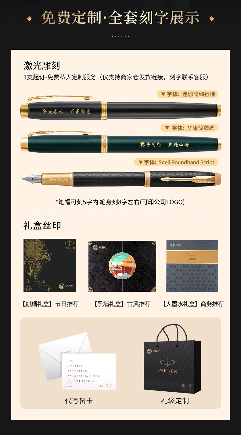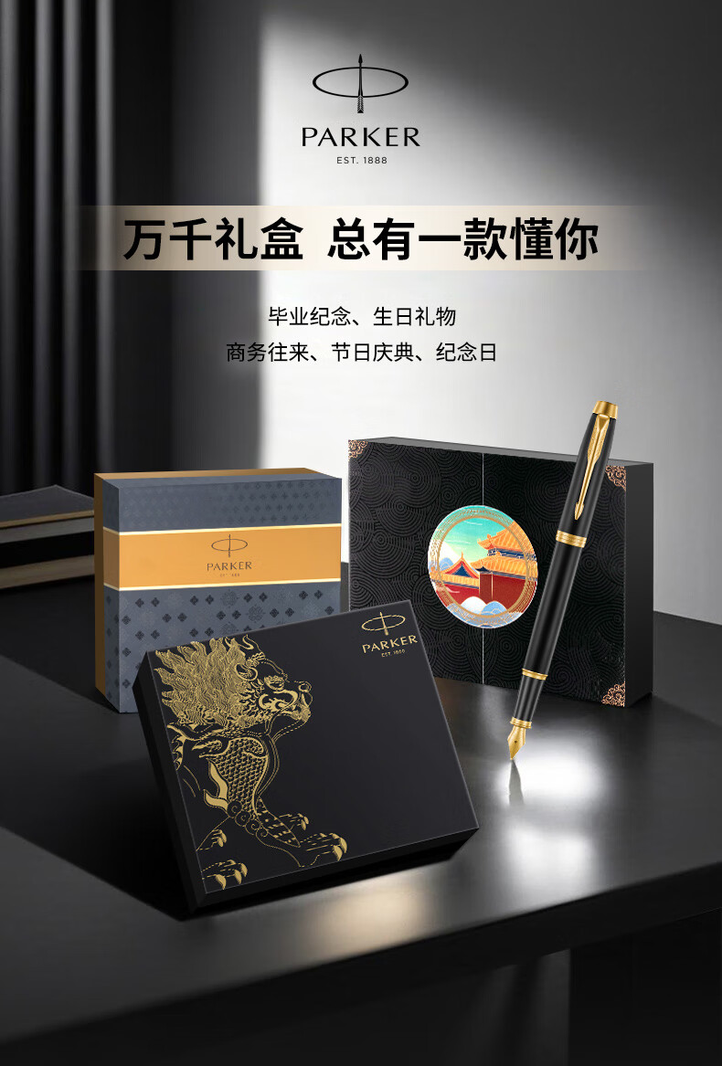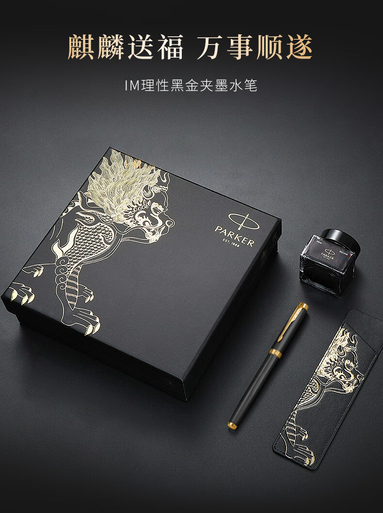 PARKER Geburtstagsgeschenk Füllfederhalter und Tintenstift High-End-Geschenkbox-Set für neue Studenten Geschäftsgeschenk individuelle Gravur Männer und Frauen Abschlussgeschenk Briefpapier Übungsstift College-Landungsgeschenk IM rationaler schwarzer Goldclip-Tintenstift + schwarze Wandgeschenkbox
