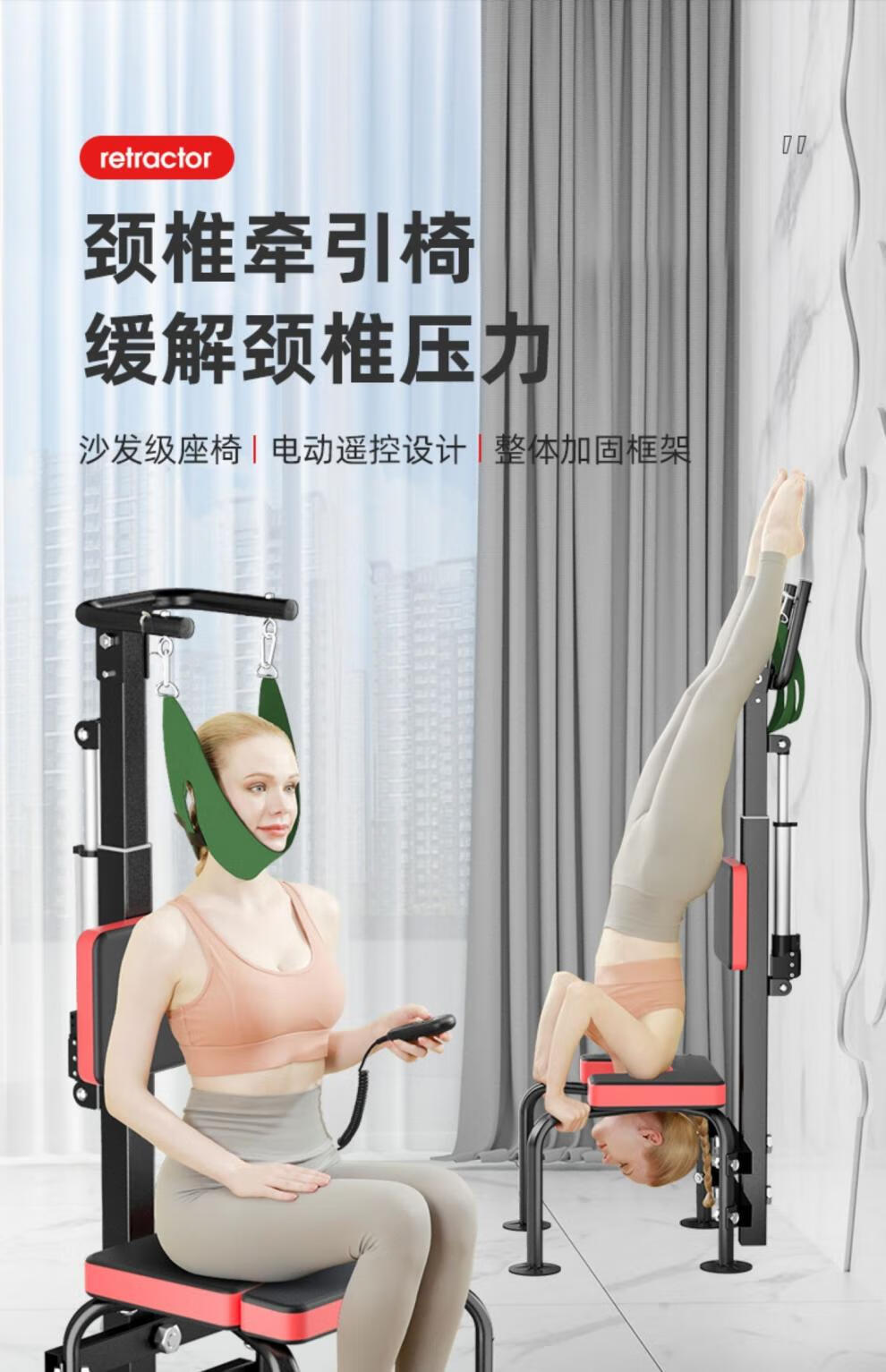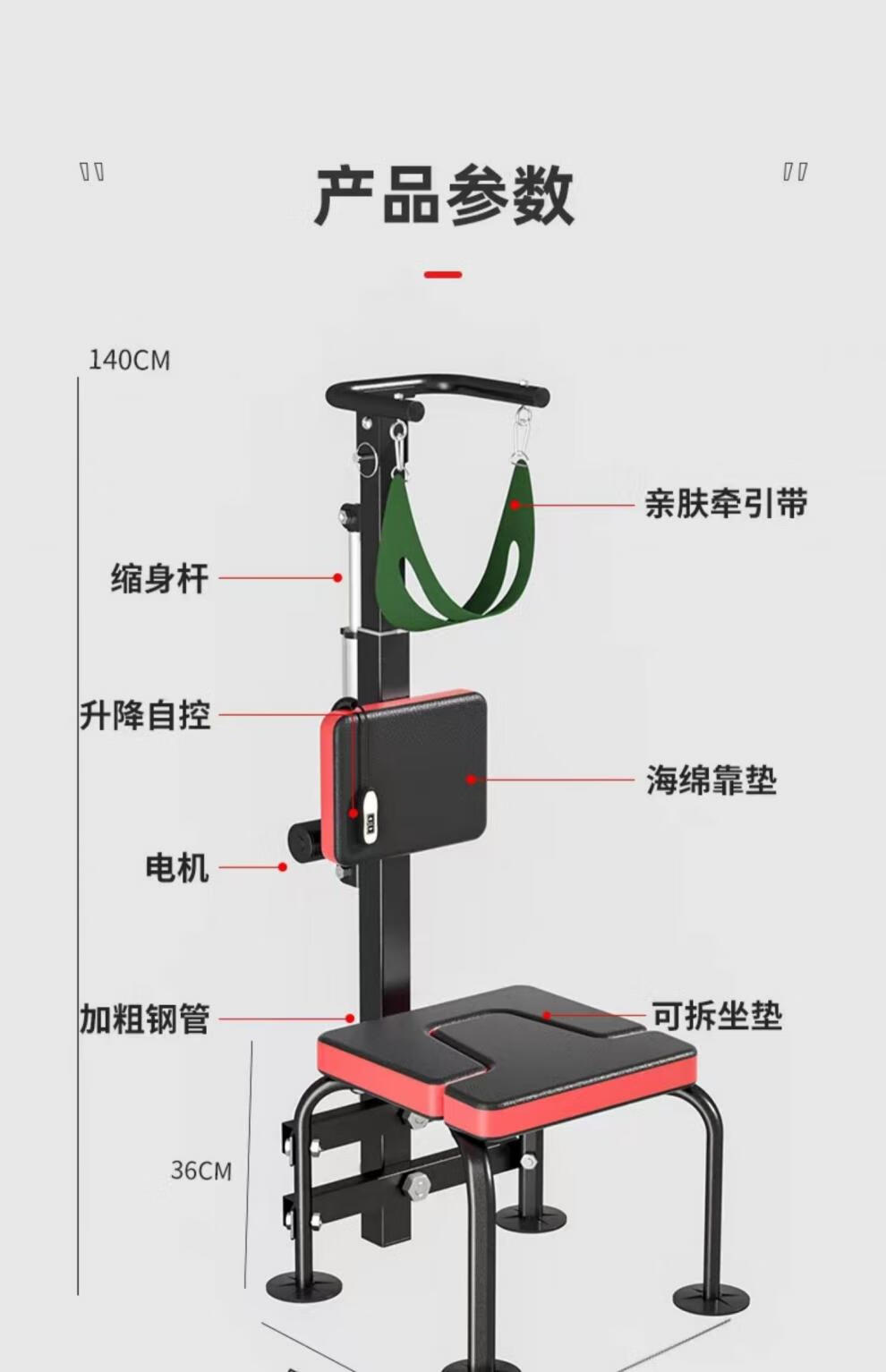 通用电动颈椎拉伸牵引家用康复吊脖子椅新款倒立机脊柱腰椎部神器 高黑款电动颈椎牵引椅