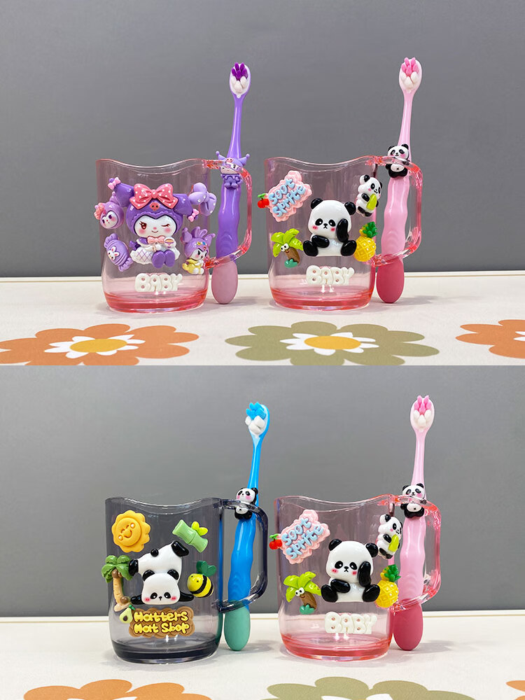 Пикап-кошка, красивая Culomi, милая детская чашка для полоскания рта, детская красивая чашка для чистки зубов Melody, перевернутая красная панда для девочек + 1 случайная зубная щетка