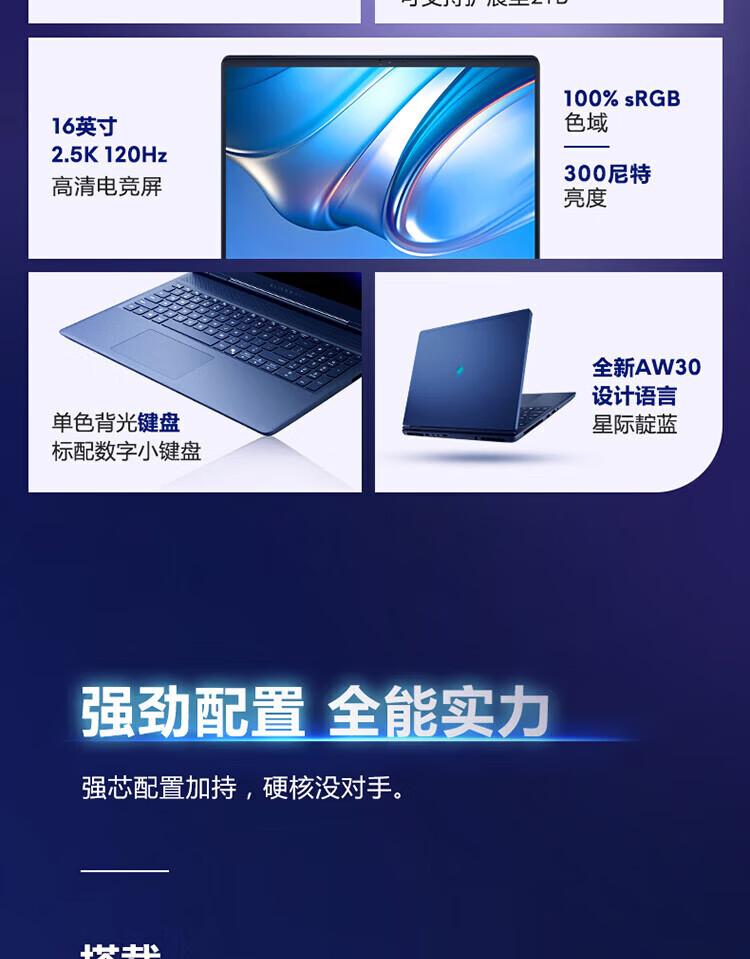 Dell Alienware Starship 16 AC16250 16-inch 2.5K gaming screen RTX50 light-tracing independent display AI designer gaming laptop Core7-240H RTX5050 32G DDR5 memory 2TB high-speed solid state customization