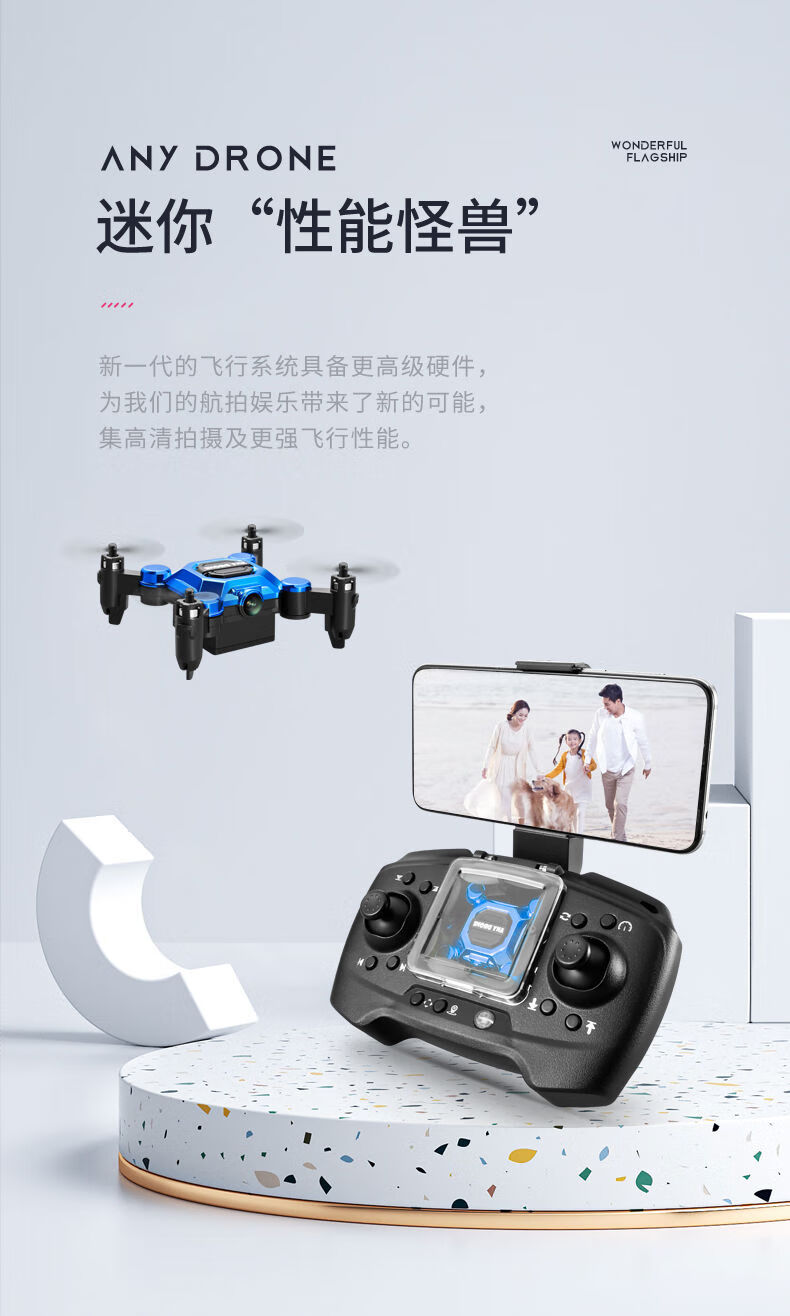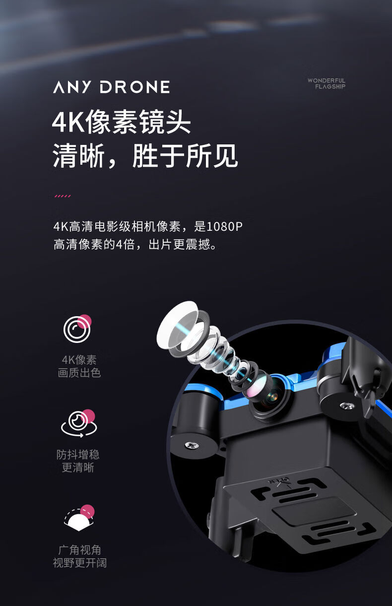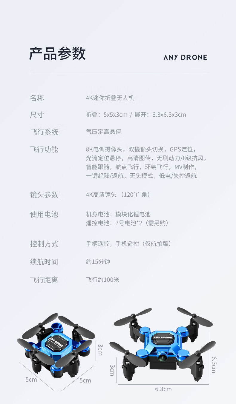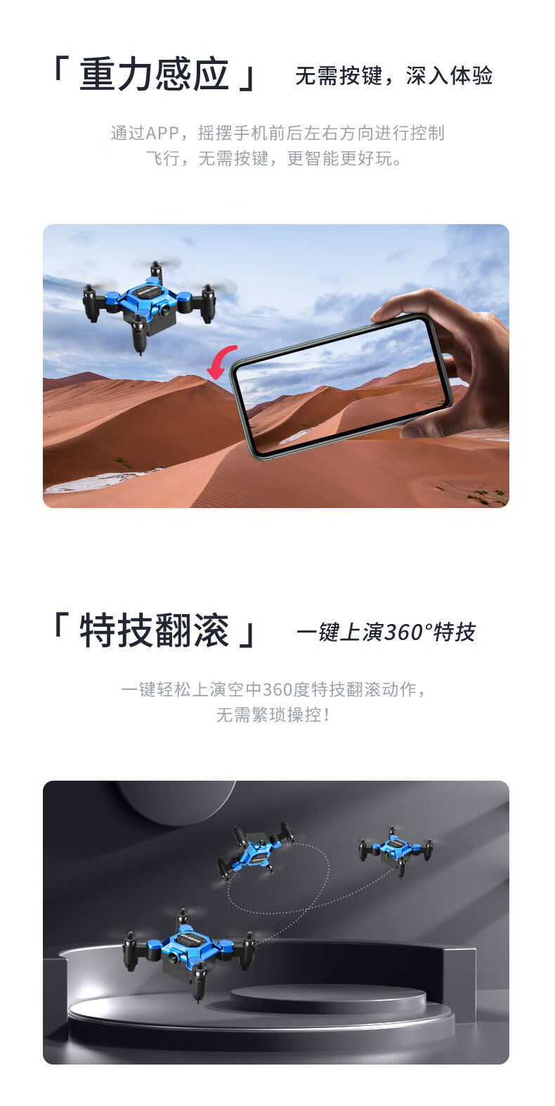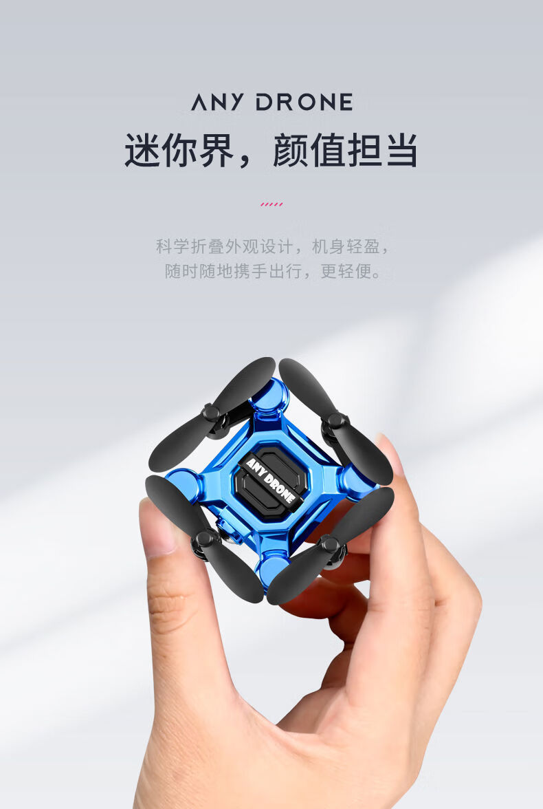 迷你折叠无人机遥控飞机航拍四轴飞行器儿童玩具小学生小型耐摔4K 蓝色-智能定高-无航拍 练手配置2电池1充电线