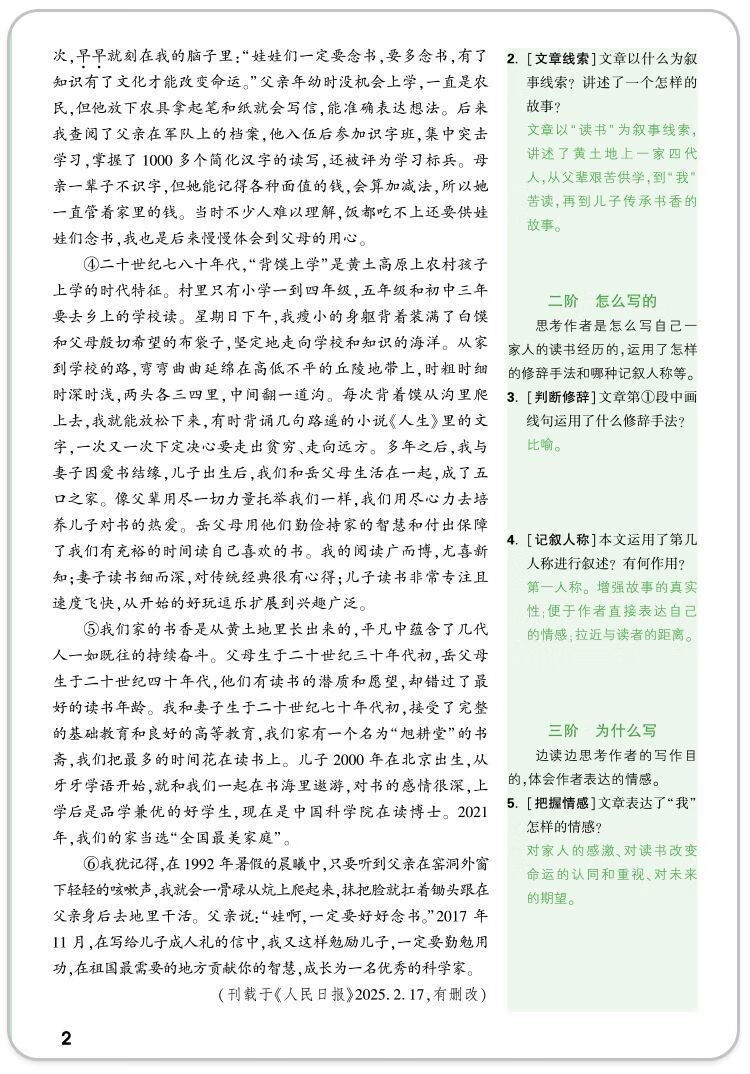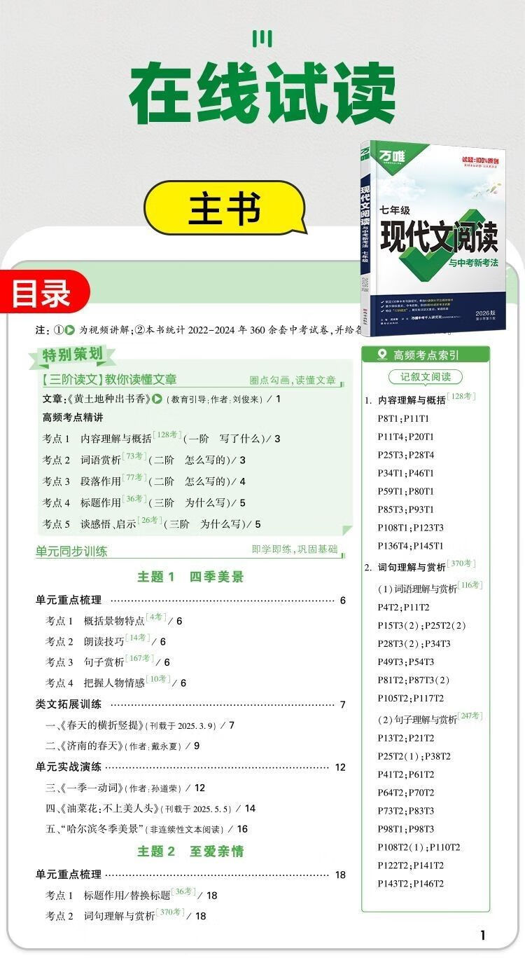 2026 Wanwei Extracurricular Classical Chinese and Modern Literature Reading Training Seventh Grade/First Grade of Junior High School Modern Literature