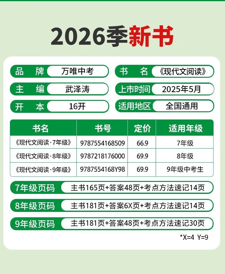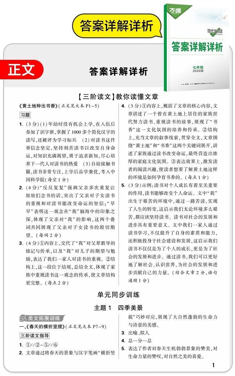2026 Wanwei Extracurricular Classical Chinese and Modern Literature Reading Training <National Edition> Seventh Grade/First Grade of Junior High School Modern Literature