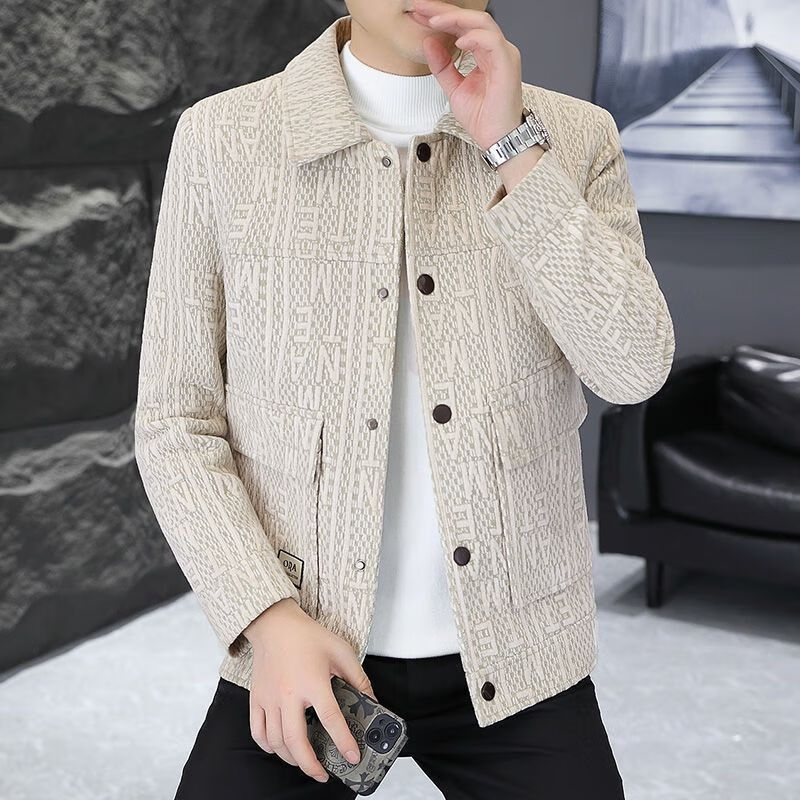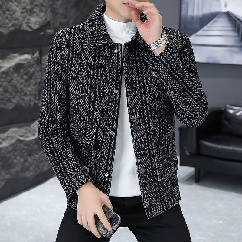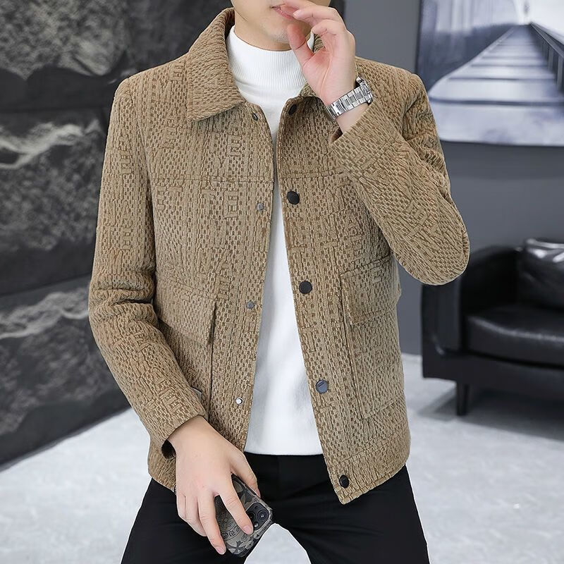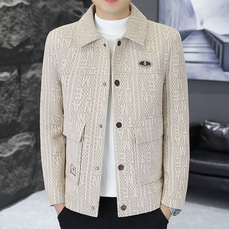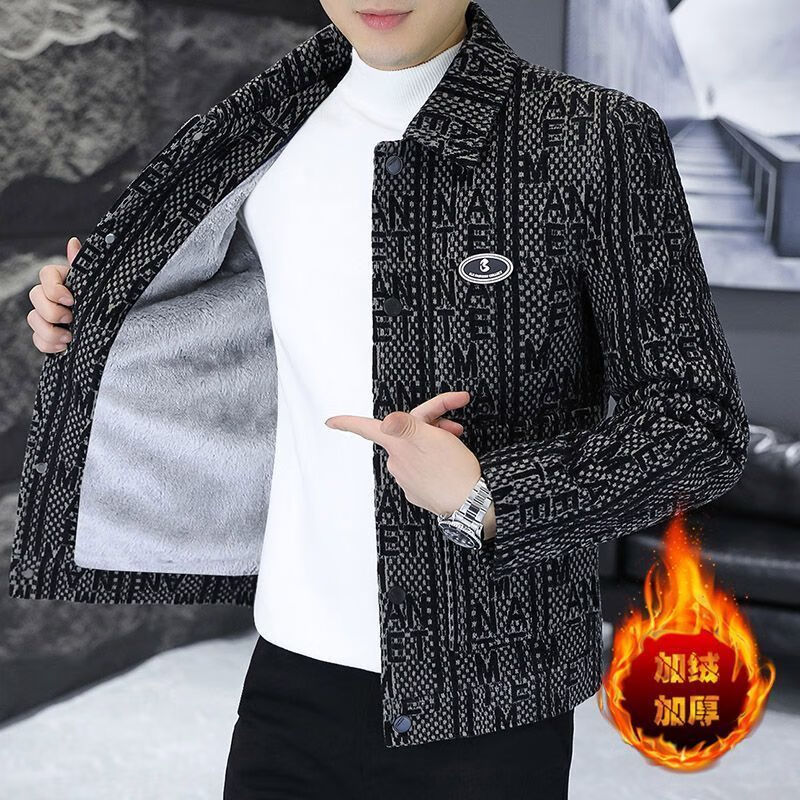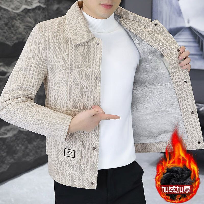 Playboy winter velvet thickened jacket men's trendy and handsome slim fit lapel casual short woolen windbreaker jacket apricot velvet XL recommended 130-150Jin Jin equals 0.5 kg