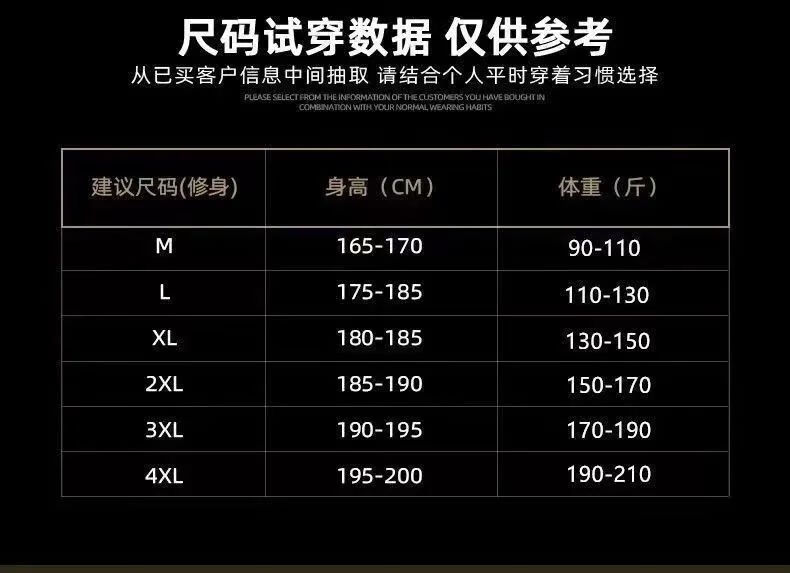 China (cm) 160-165/84-86 165-170 / 88-90 167-172 / 92-96 168-173 / 98-102 170-176 / 106-110