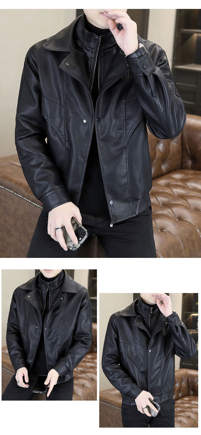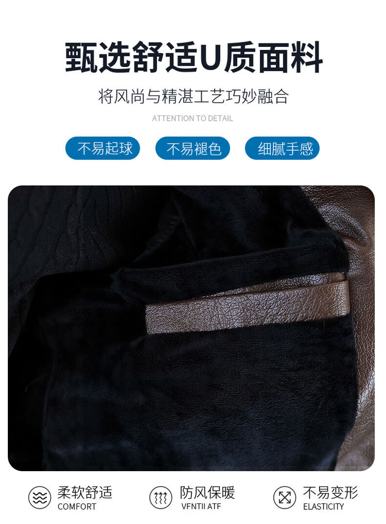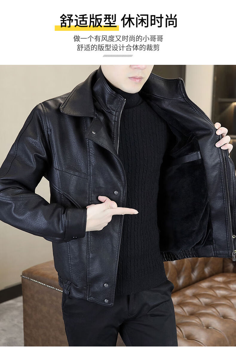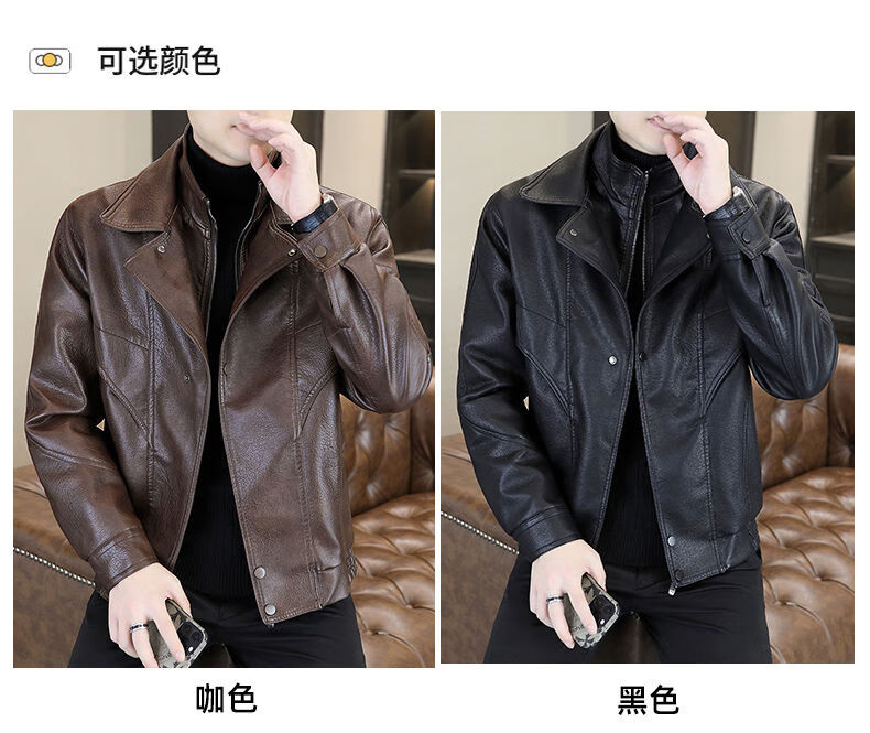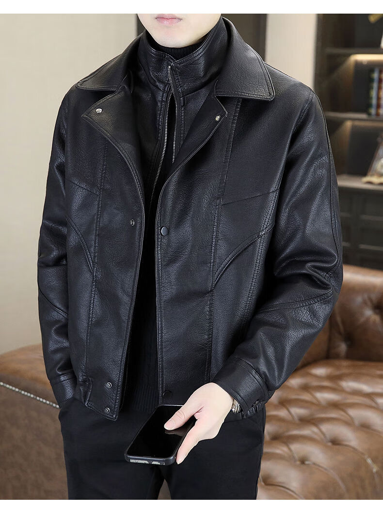 秋冬季加绒保暖皮衣男士休闲外套2024新款潮牌痞帅假两件皮夹克 黑色加绒 2XL 2XL建议120-140斤