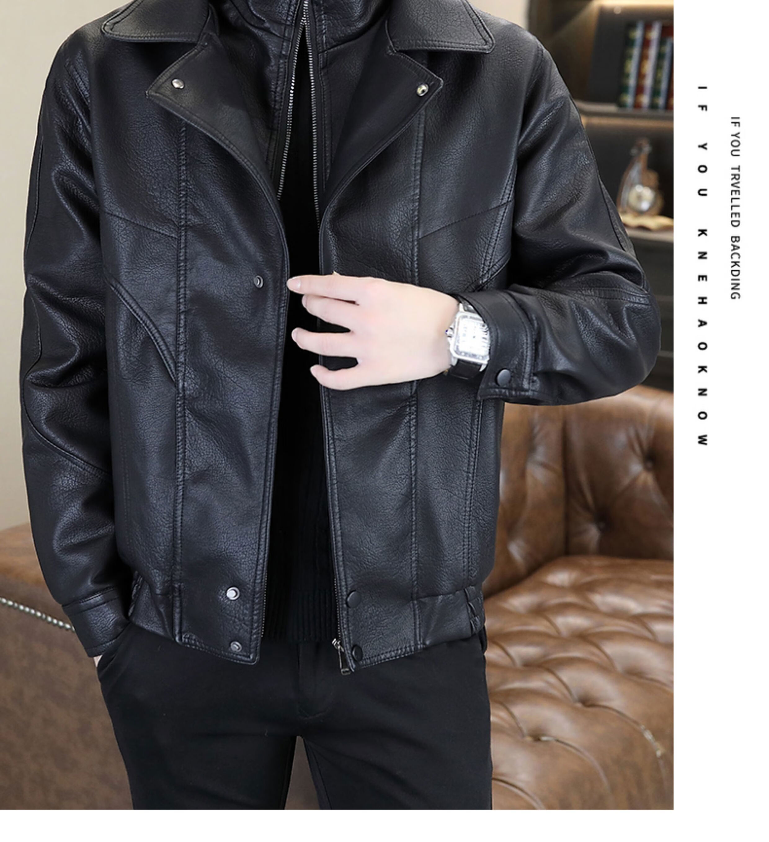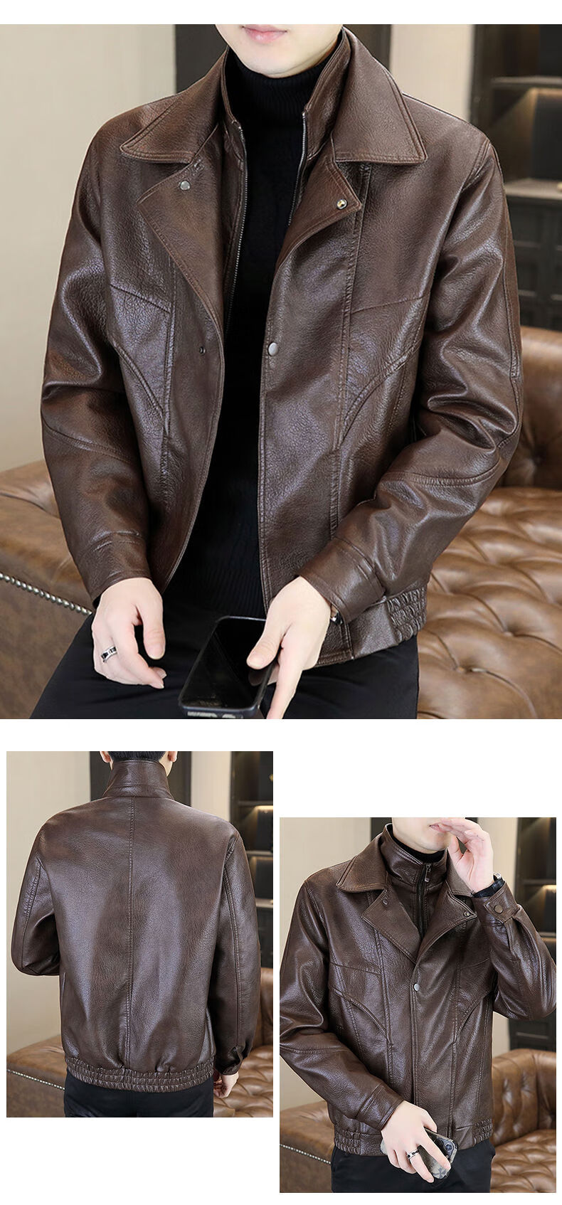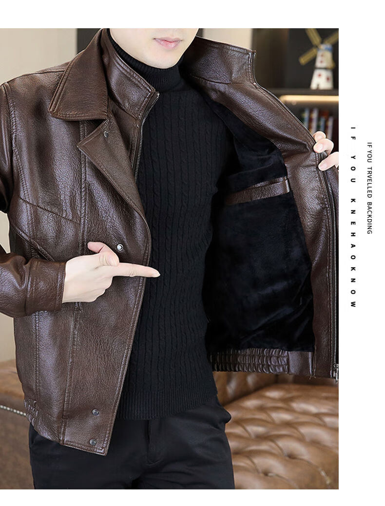 秋冬季加绒保暖皮衣男士休闲外套2024新款潮牌痞帅假两件皮夹克 黑色加绒 2XL 2XL建议120-140斤