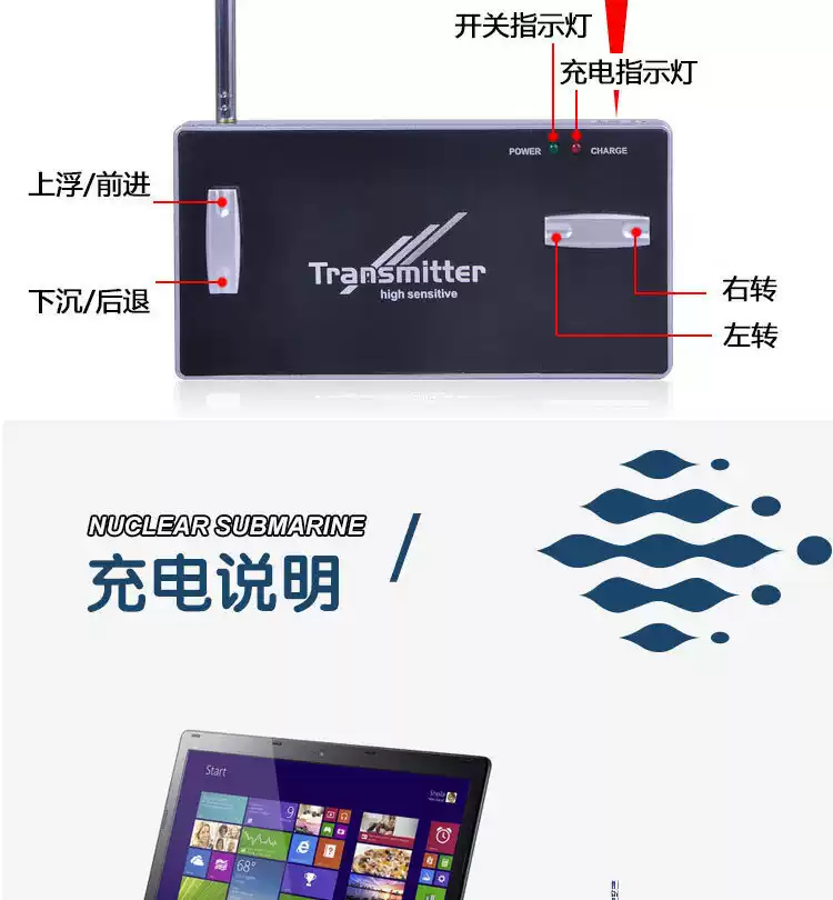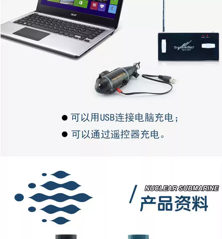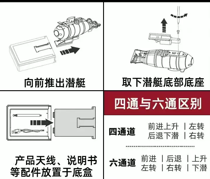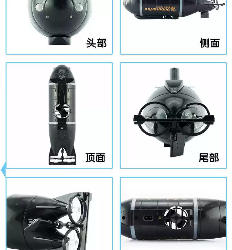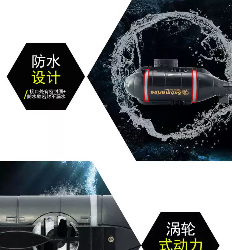 儿童遥控潜水艇小型核潜艇玩具电动迷你充电玩具船鱼缸船模型防水 6.0升级版12cm六通道上浮下潜黑色潜艇
