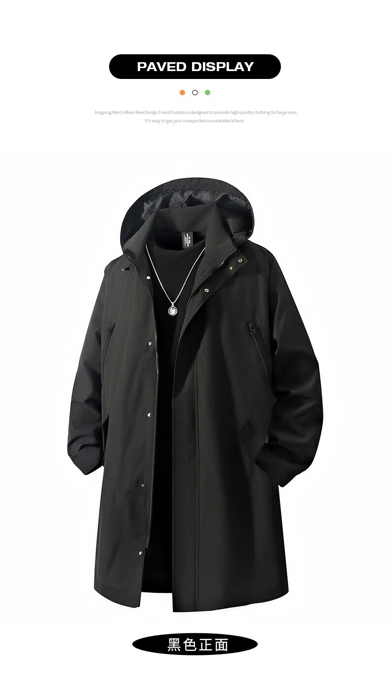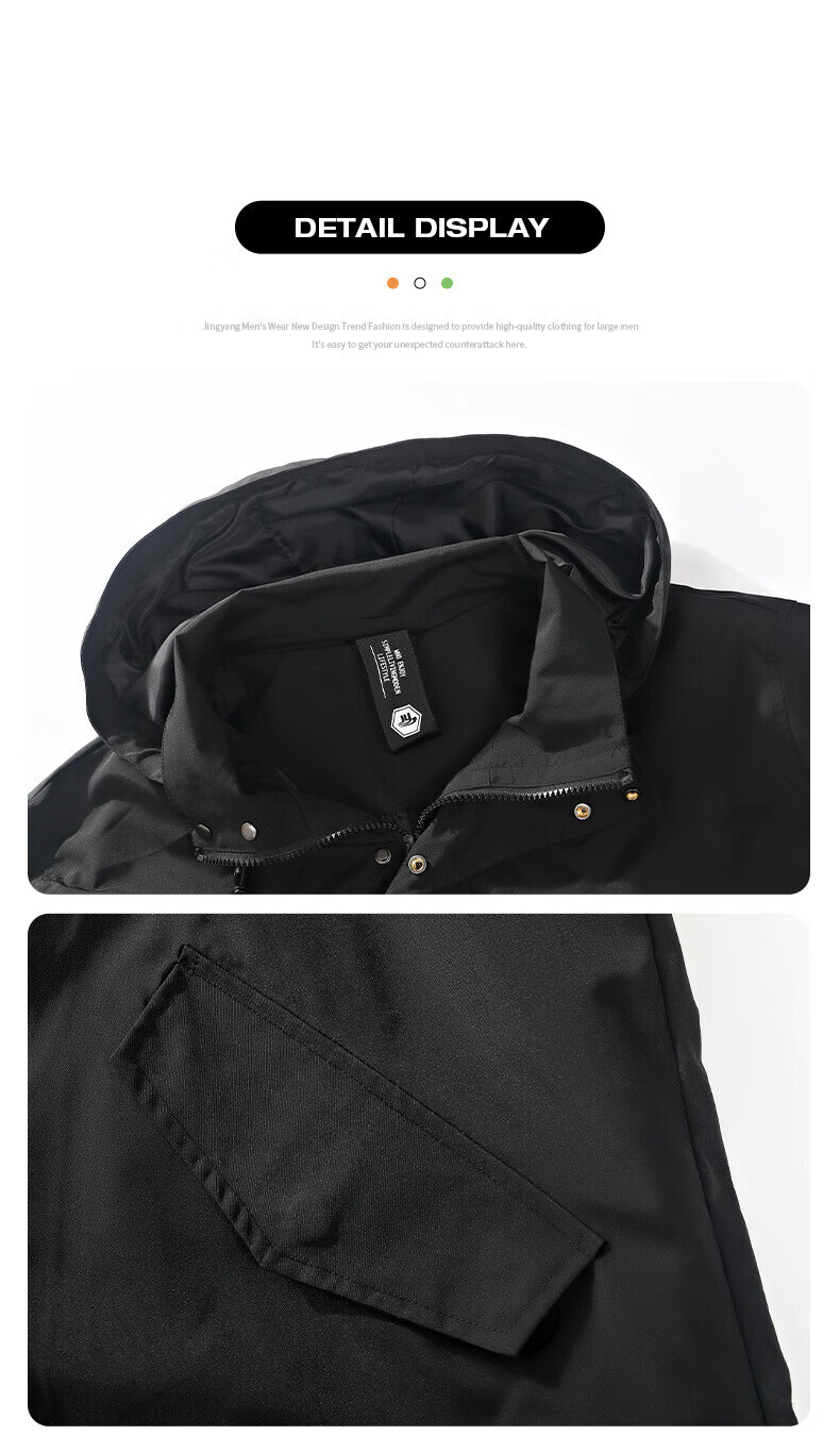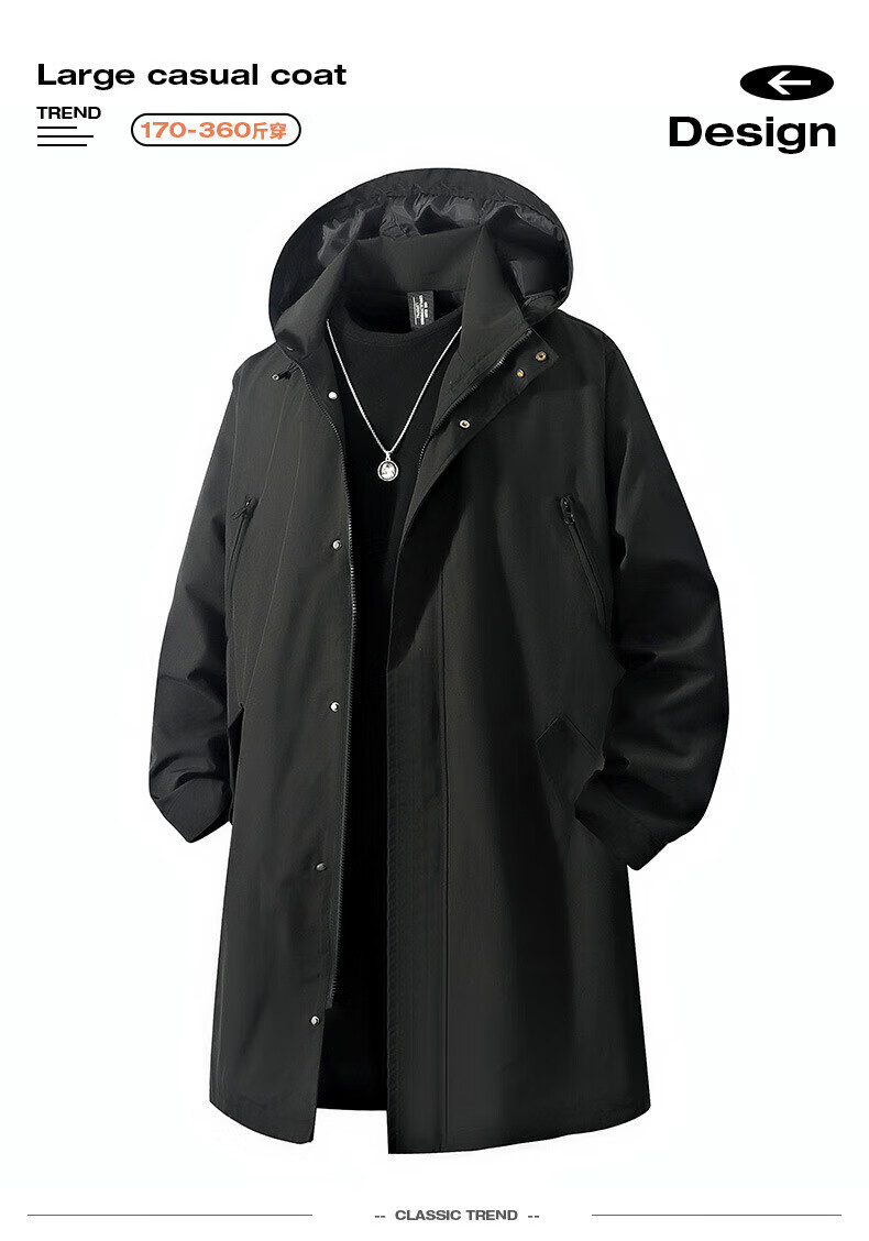 JEEP SPIRIT Large Size Men's Mid-Length Windbreaker Jacket Men's Spring and Autumn Style Fatty Loose Plus Fat Extra Large Hooded Fat Man Coat Black 2XL (220Jin Jin is equal to 0.5kg -245Jin Jin is equal to 0.5kg)