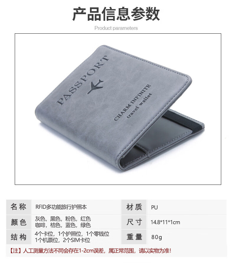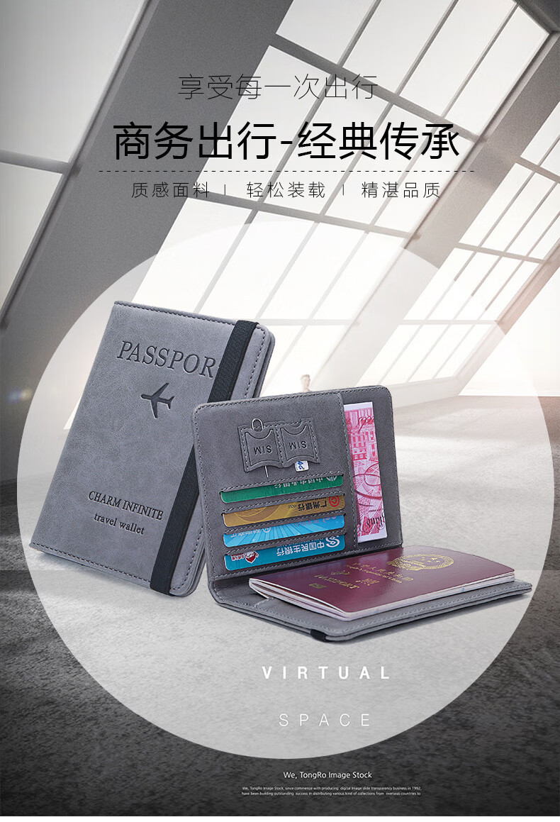 He Jiagong Anti-Diebstahl-Tasche, Reisepasshülle, RFID-Passtasche, multifunktionale Tasche, Übersee-Reisepasshülle, individuelles Logo, dunkelgrau