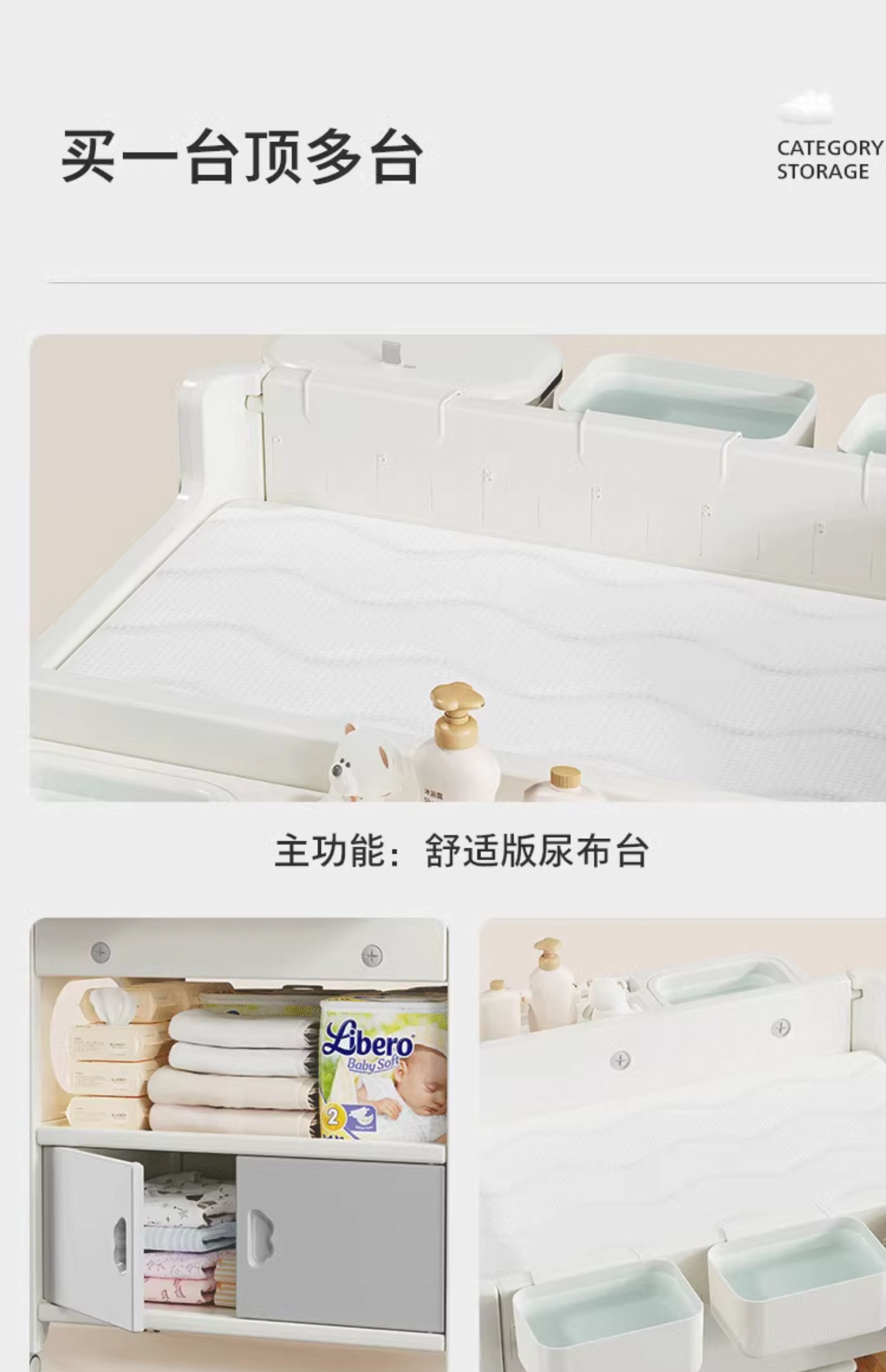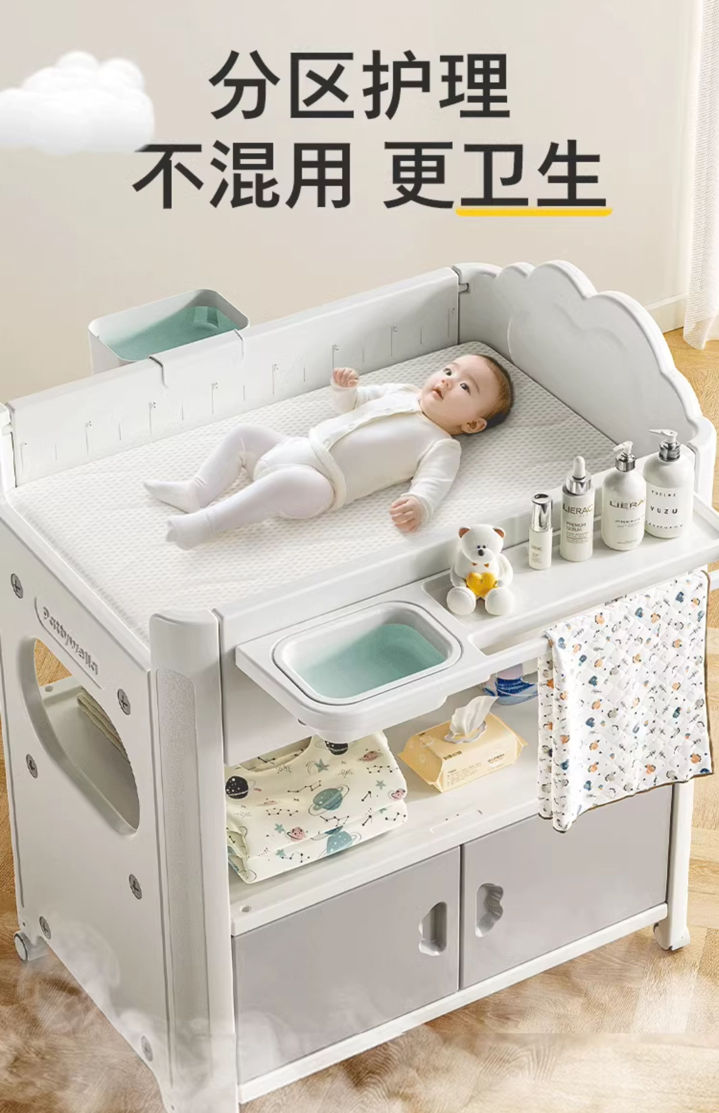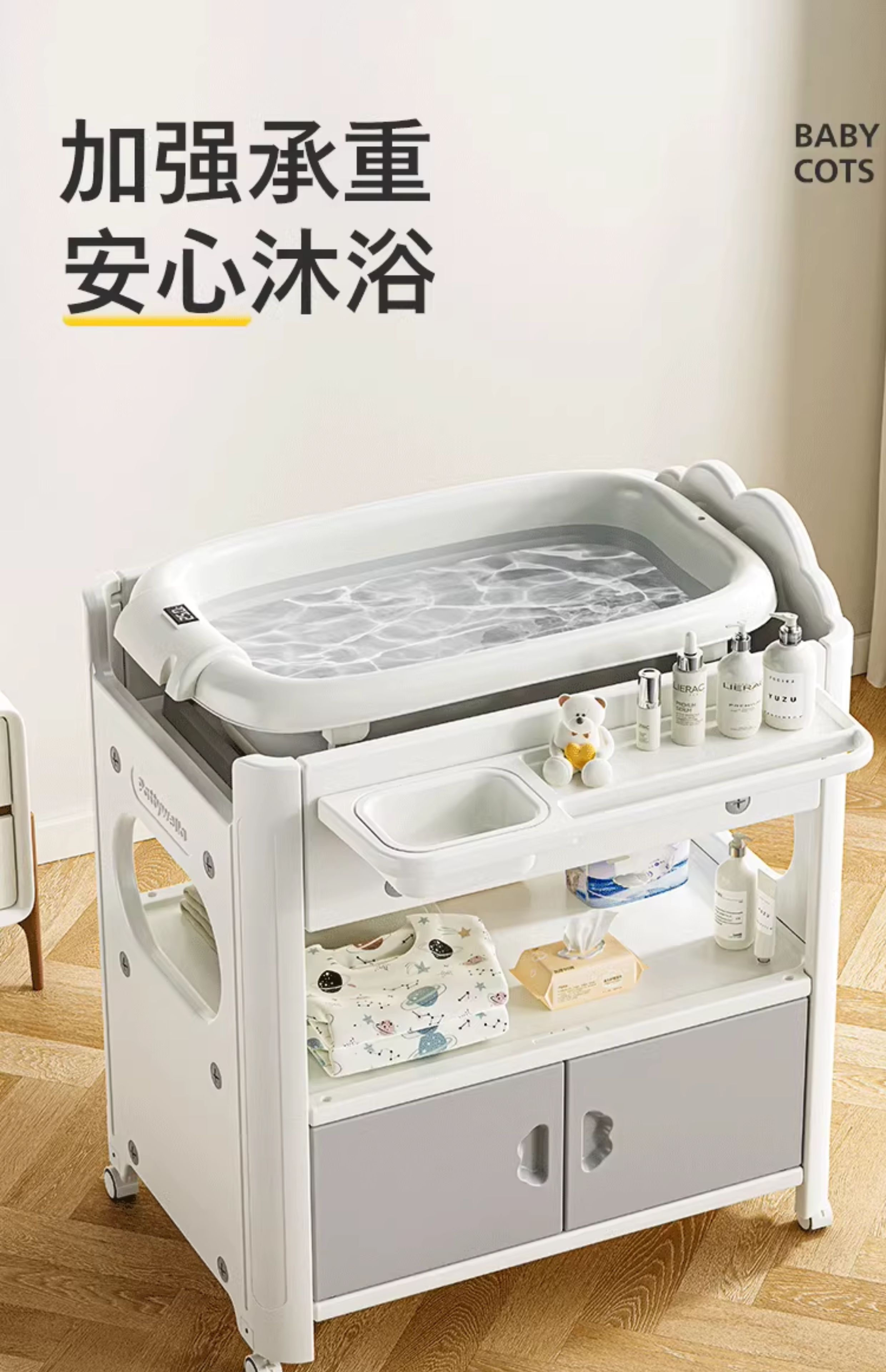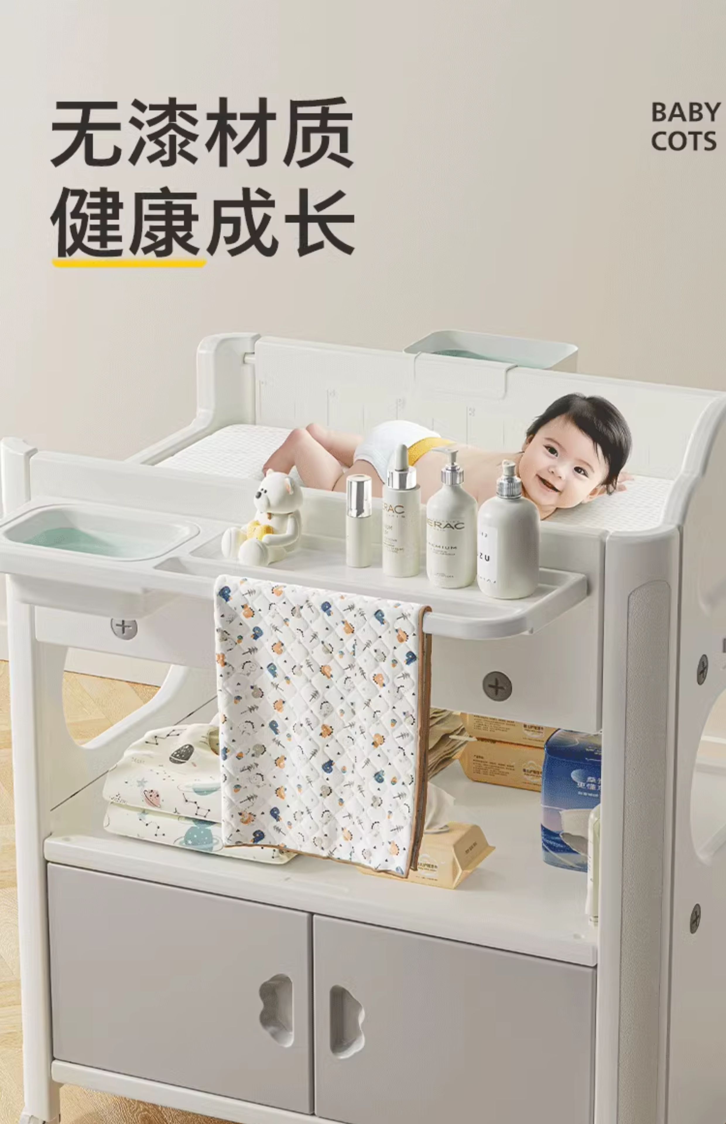 婴儿尿布台宝宝洗澡护理台新生儿换尿布台婴儿床二合一 置物款尿布台+乳胶垫