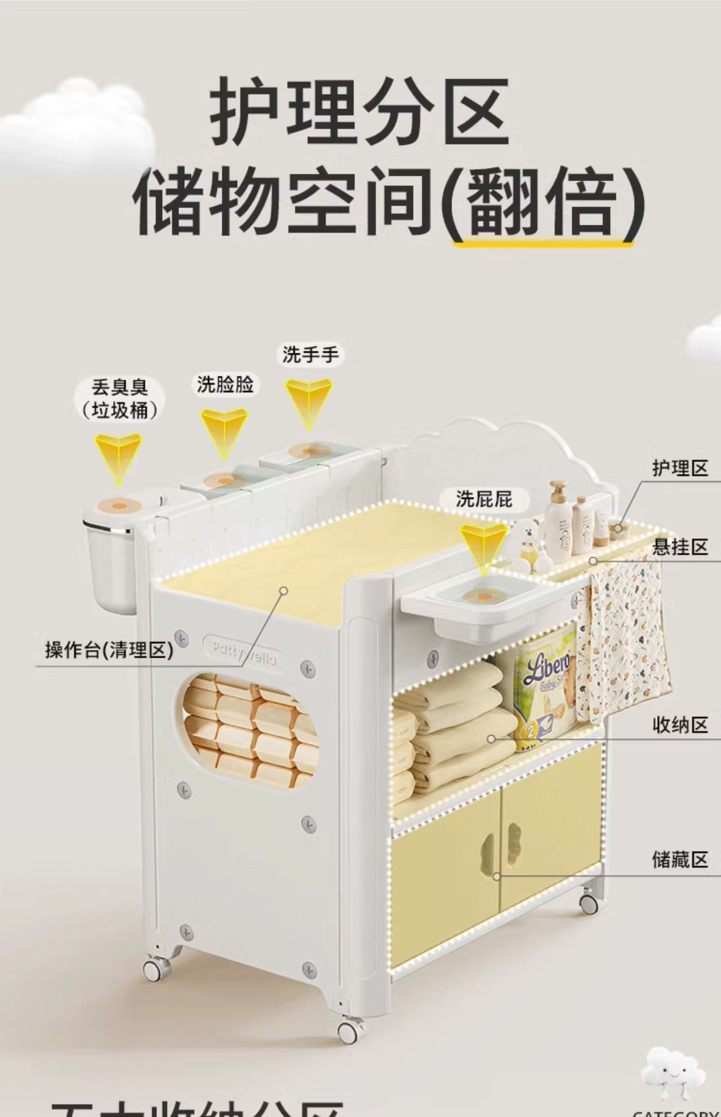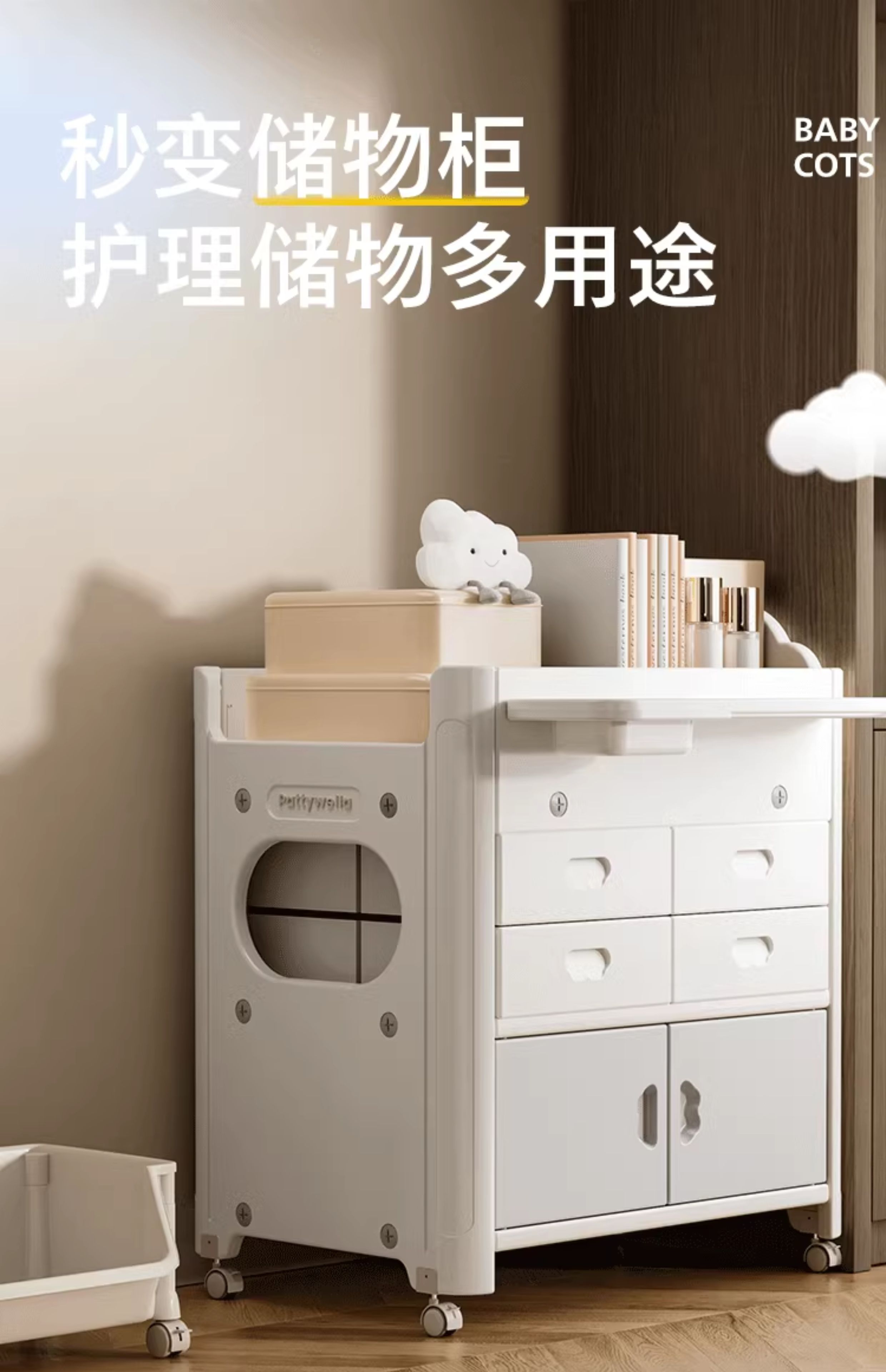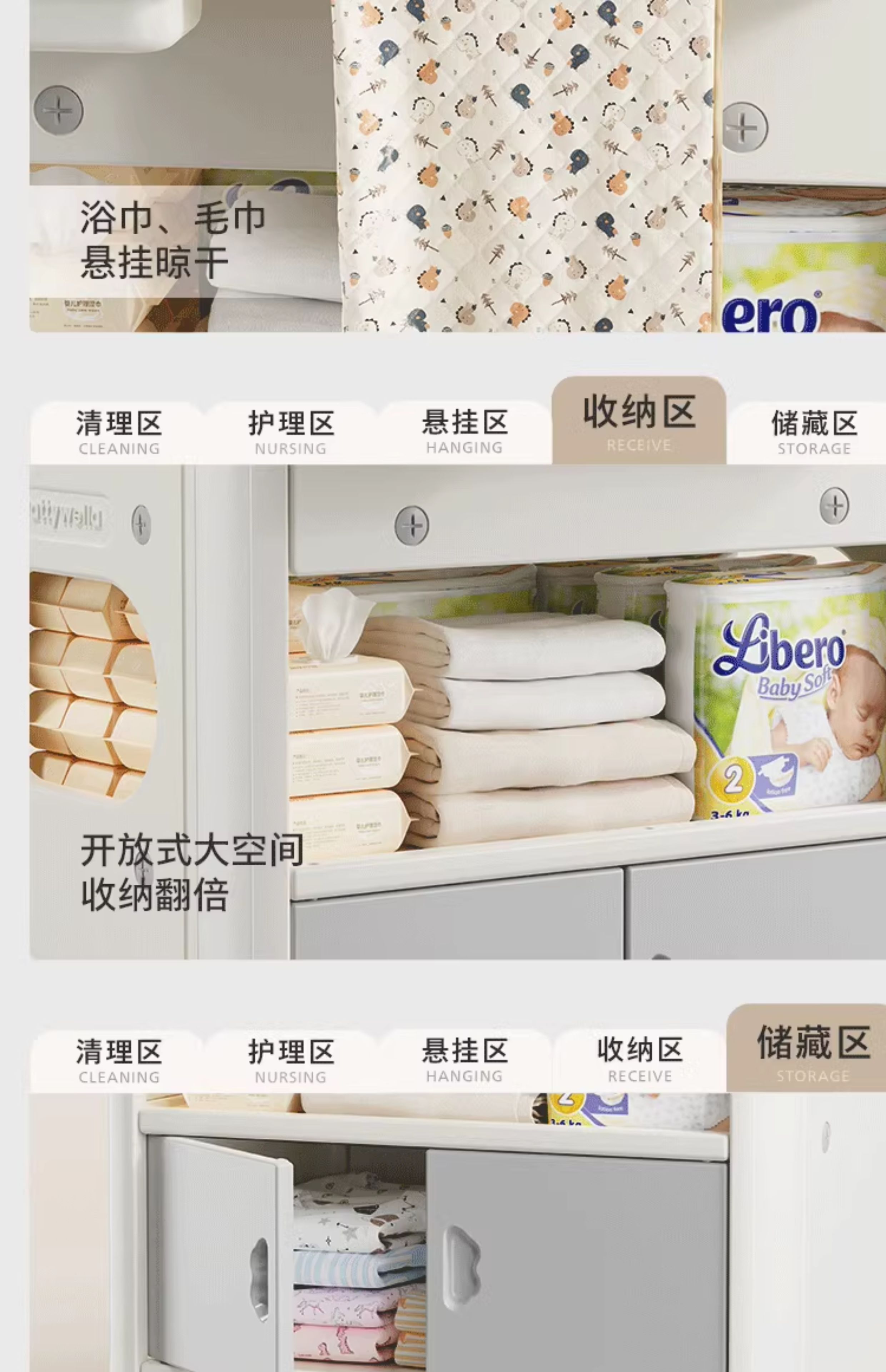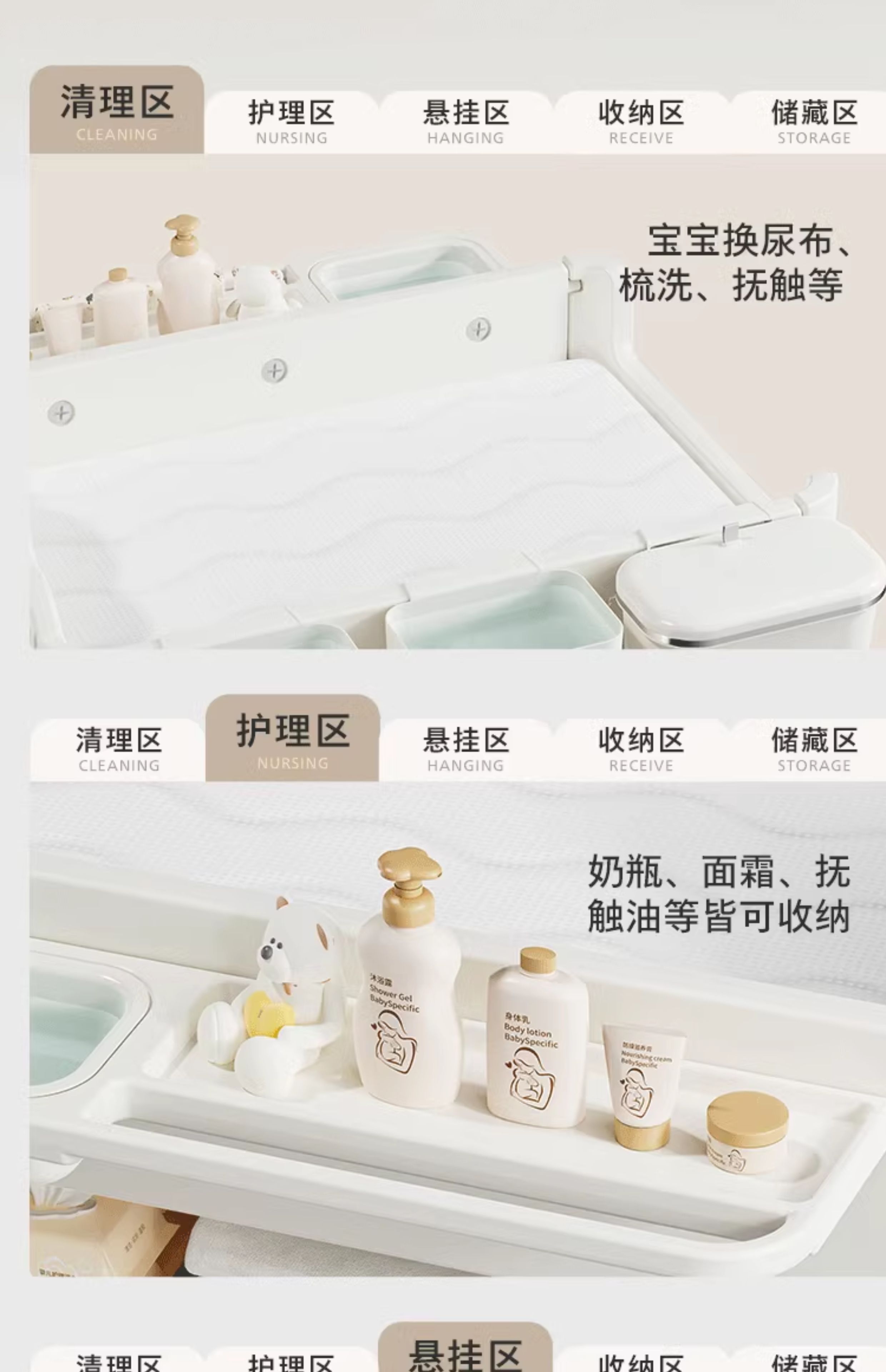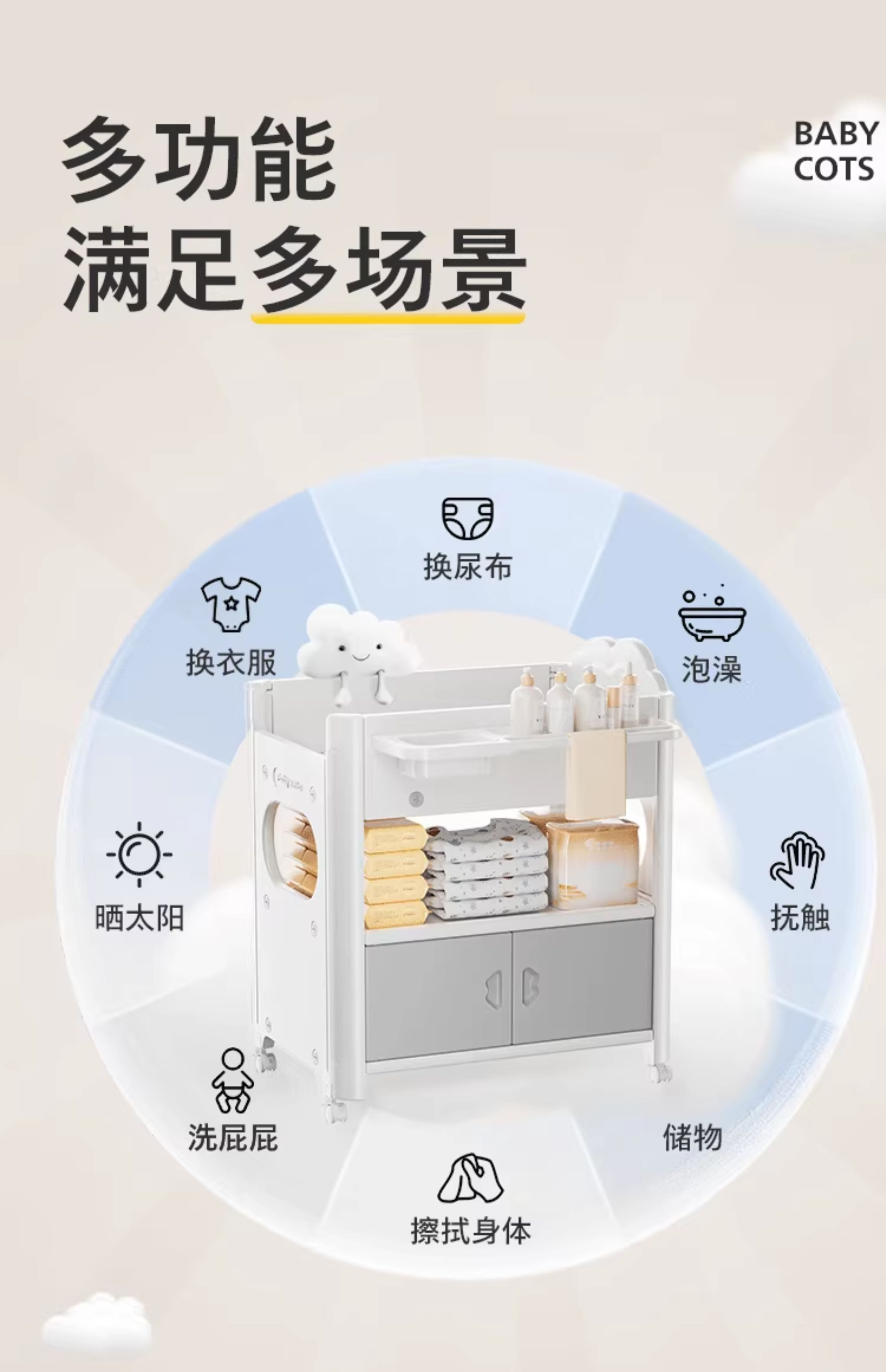 婴儿尿布台宝宝洗澡护理台新生儿换尿布台婴儿床二合一 置物款尿布台+乳胶垫