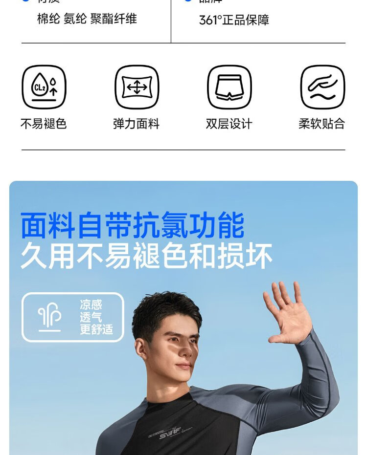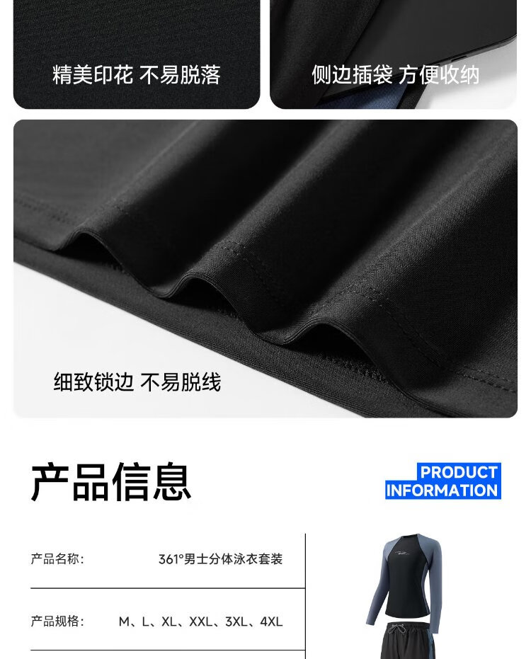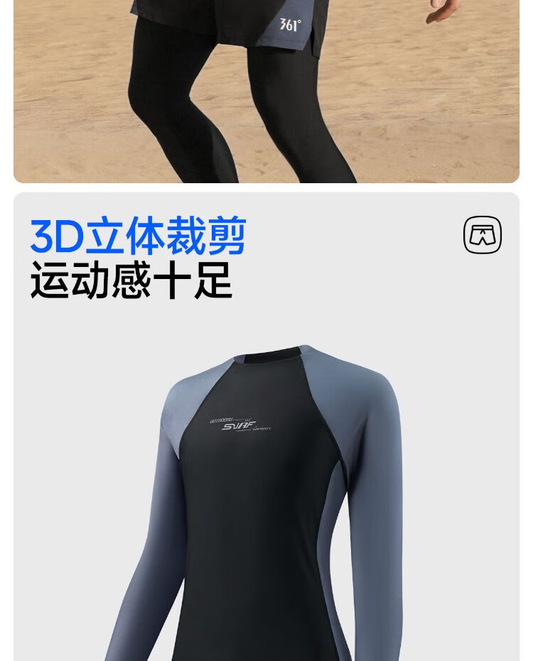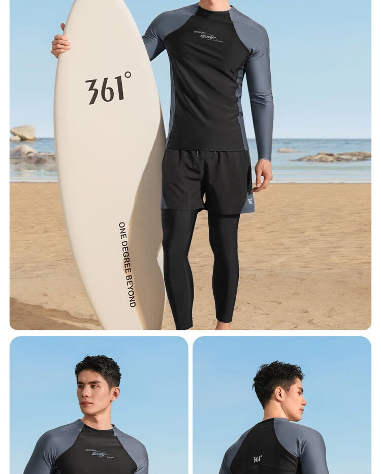 361 Men's swimsuit men's jellyfish suit swimming trunks split long-sleeved trousers winter snorkeling surf suit black suit + swimming goggles M M height 158-168cm weight 75-120 Jin Jin equals 0.5 kg