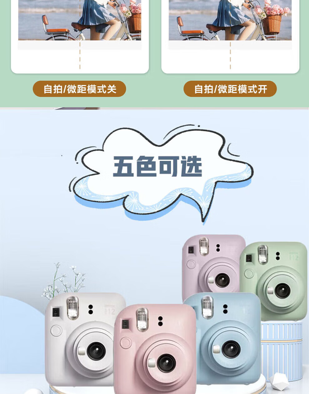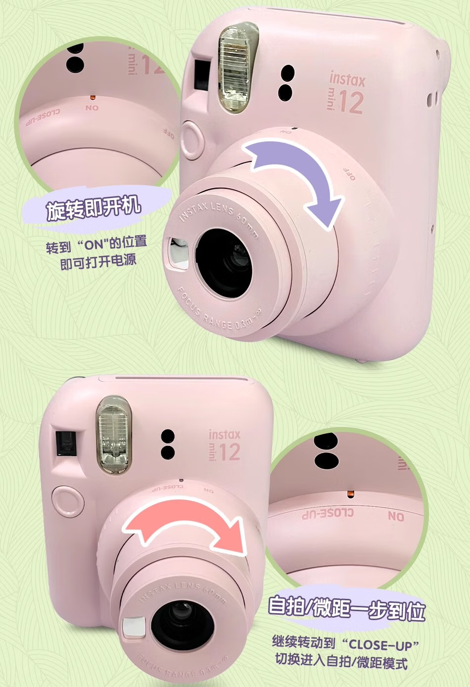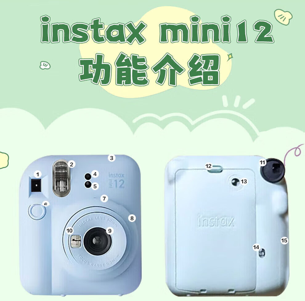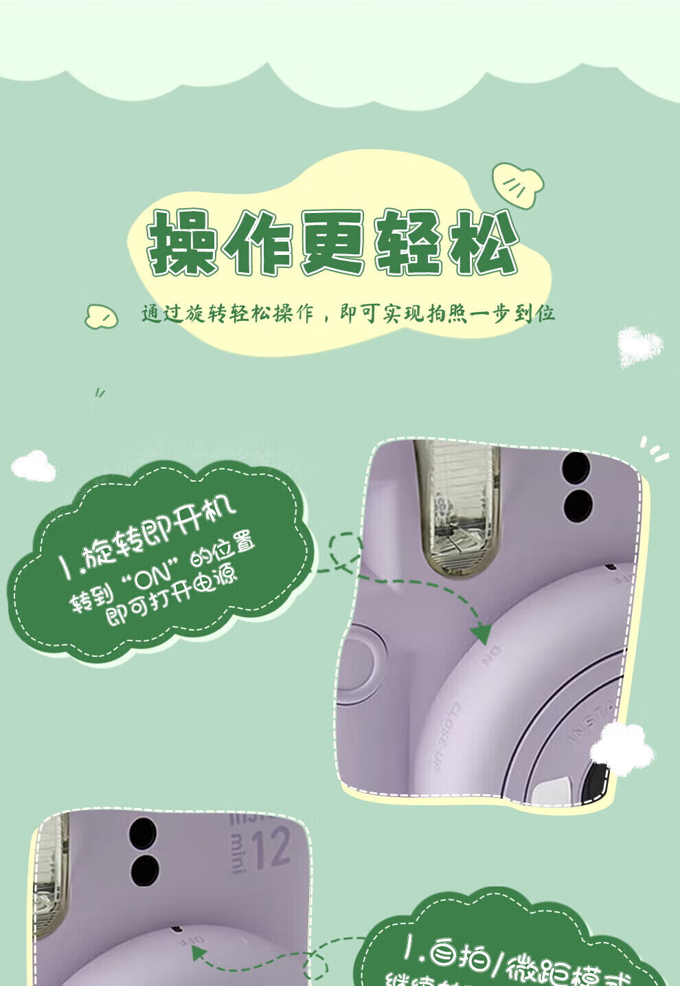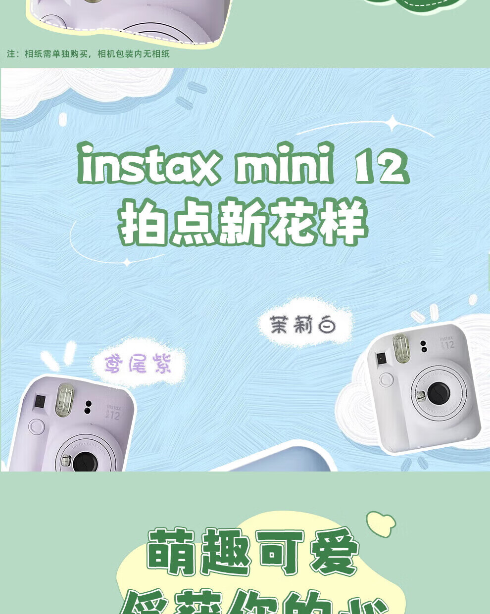 富士(FUJIFILM)instax mini12一次成像相机 立拍立得一次成像相机拍立得相机 Mini12鸢尾紫 标配+40相纸