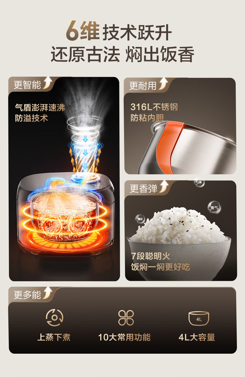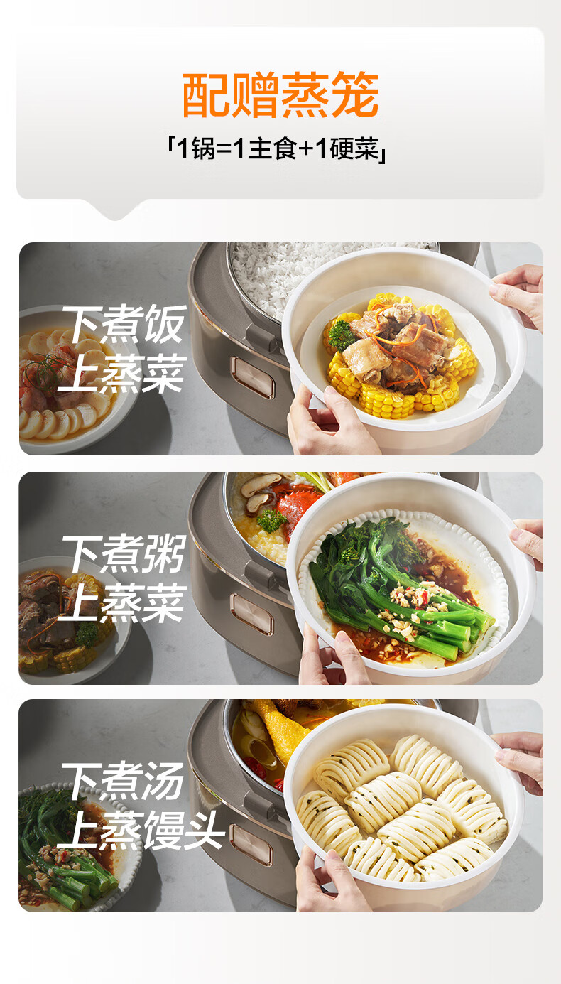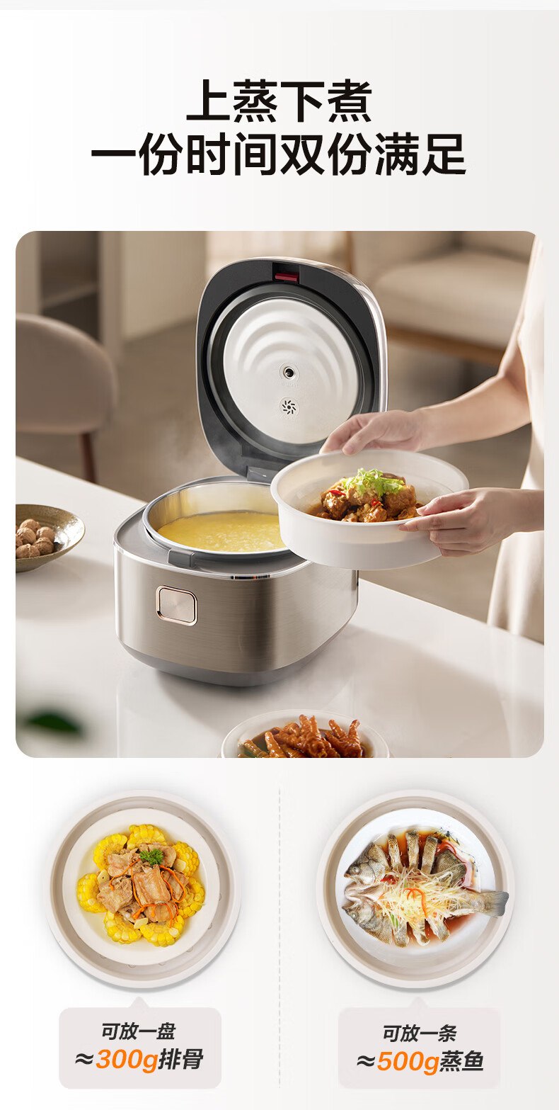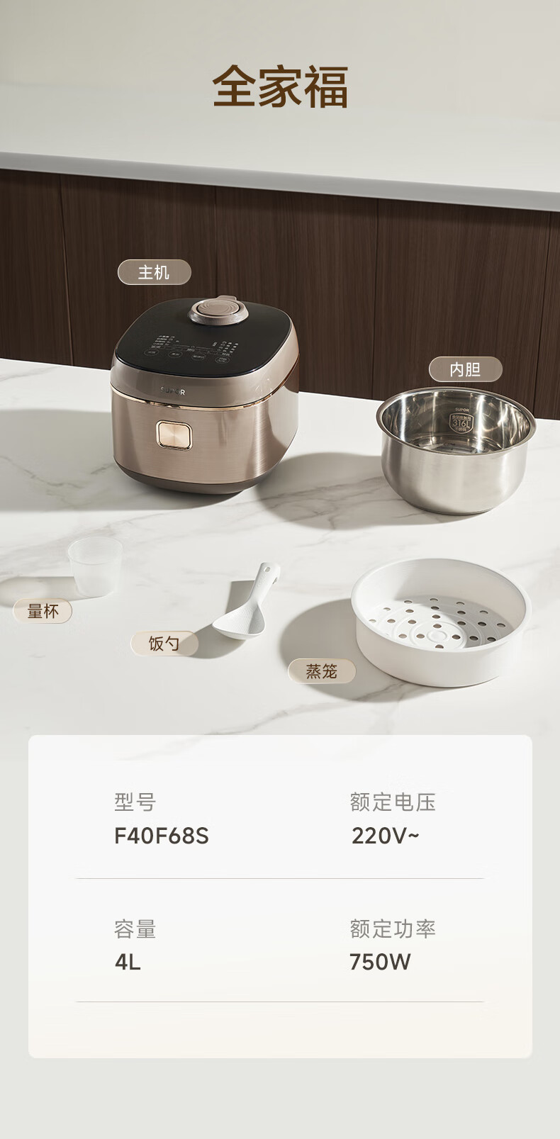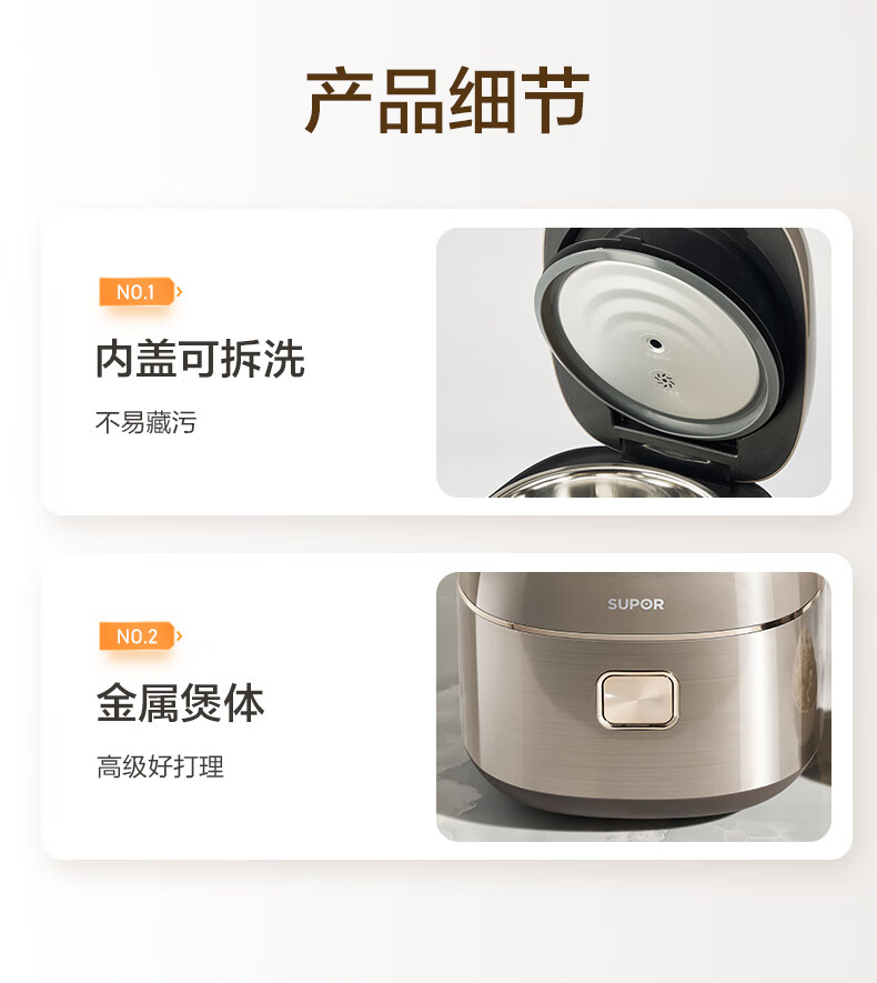 苏泊尔(SUPOR)电饭煲电饭锅 0涂层不锈钢二级能效煮饭锅 家用4L3-6人智能预约电饭煲 煮饭煮粥防溢锅F40F68S 【0涂层】创新气盾速沸防溢技术 4L 0涂层涡轮防溢