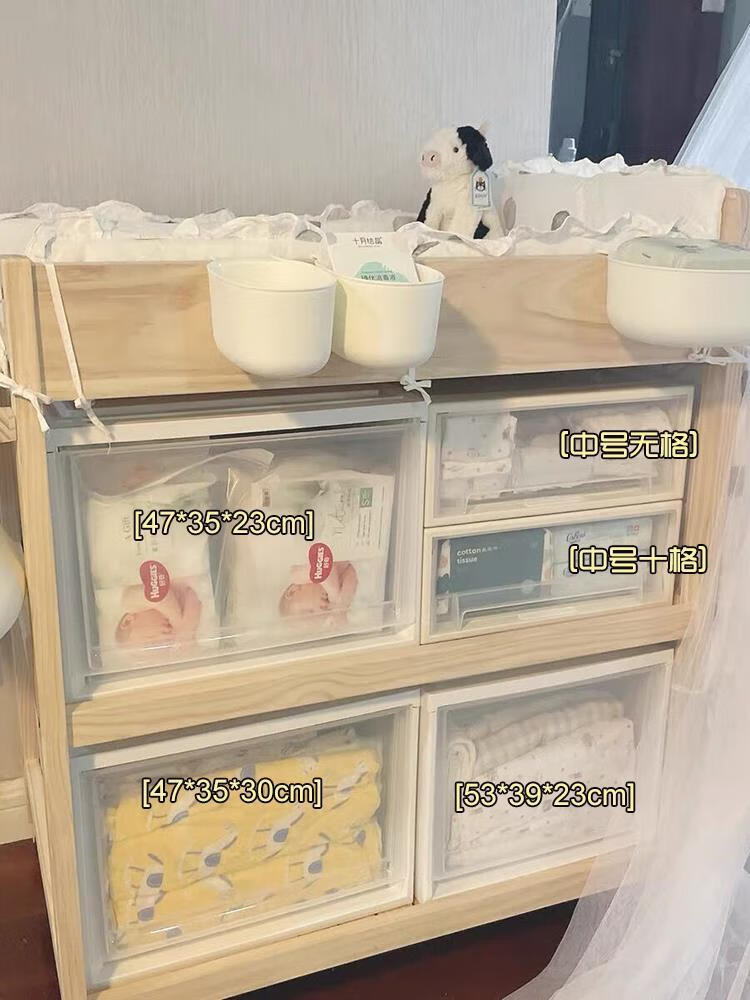 语森忆奶瓶收纳箱婴儿换尿布台抽屉式尿布棉柔巾收纳盒袜子浴巾小 A款[收纳纸尿裤尿垫浴巾] 适配尿布台加厚材质