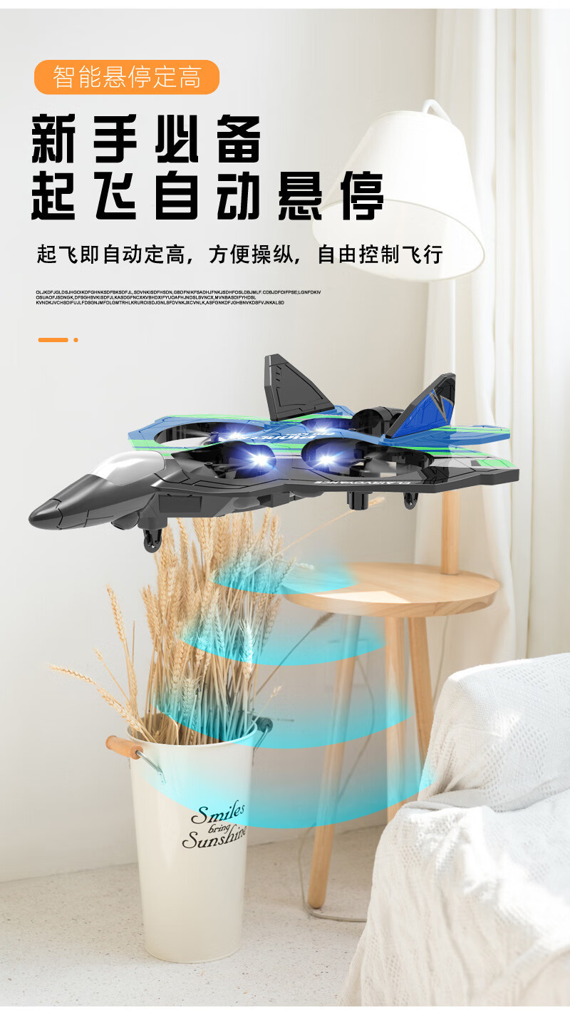Schino Large Remote Control Fighter EPP Foam Quadcopter Height-fixing Anti-Fall Stunt Drone for Children Medium Watch + Remote Control Fighter Blue Four Lithium Batteries