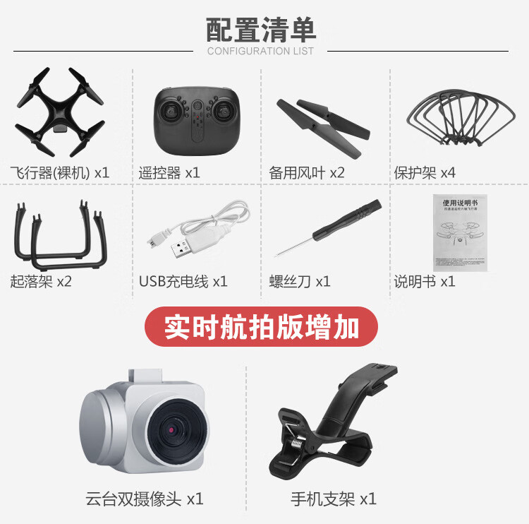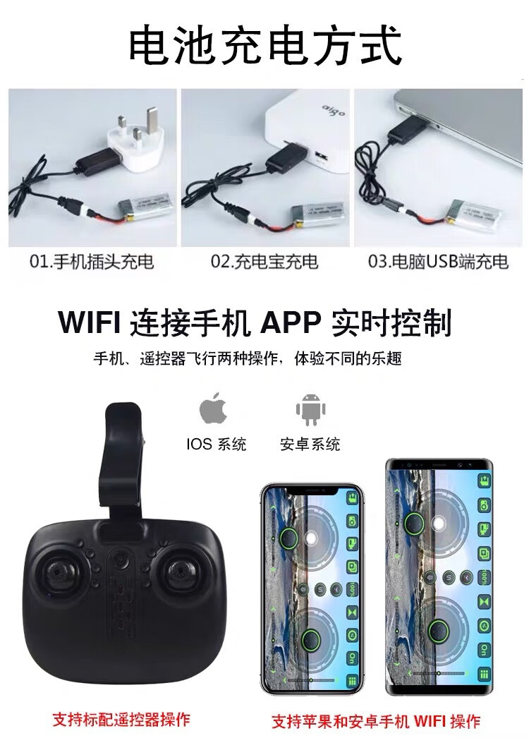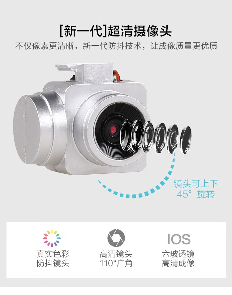 四轴飞行器无人机玩具航拍版摄像头儿童益智男孩手柄遥控器礼物批 蓝色礼盒白色定高版【800万航拍版送VR】