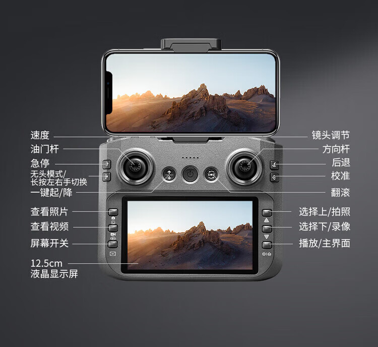 全包围大屏幕带屏遥控无人机高清航拍四轴飞行器儿童玩具学生 单电-7.4V强动力长续航GPS自动返航+大屏遥控