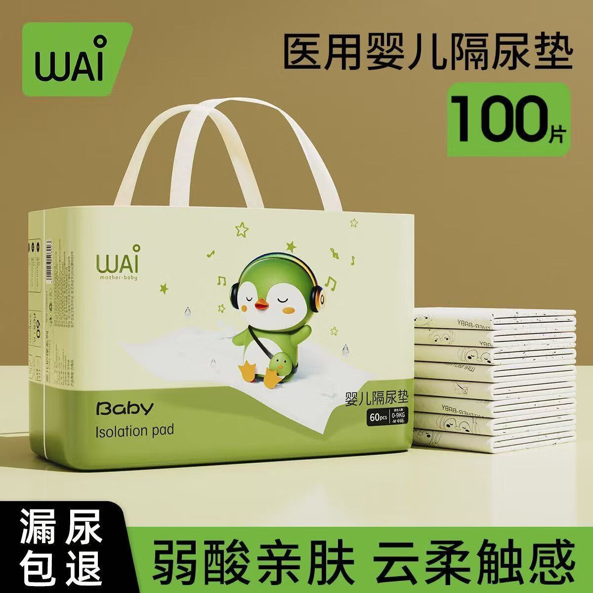 哇爱隔尿垫婴儿一次性纸尿片宝宝防漏尿布垫加厚护理垫防水床垫 小号100片[适合0-1个月宝宝]