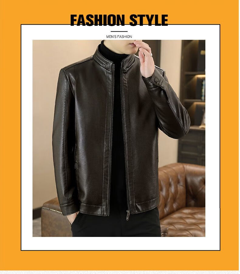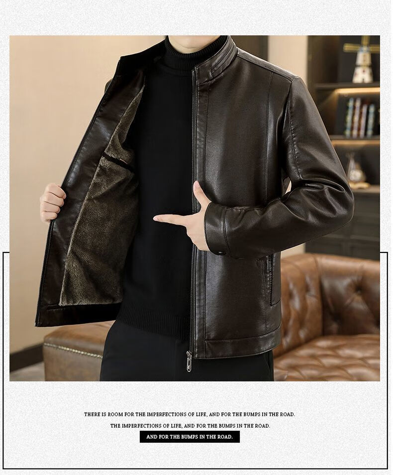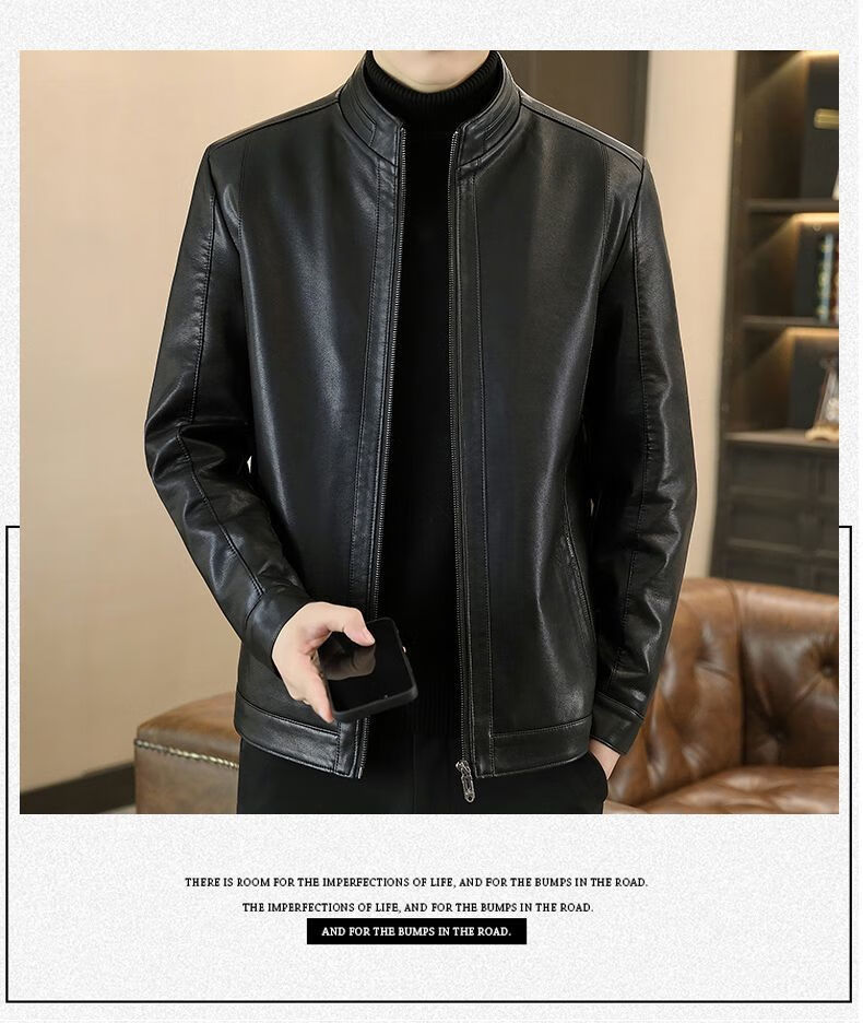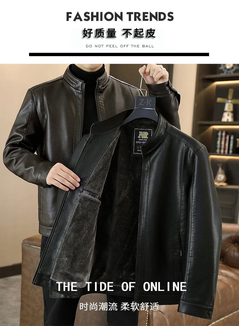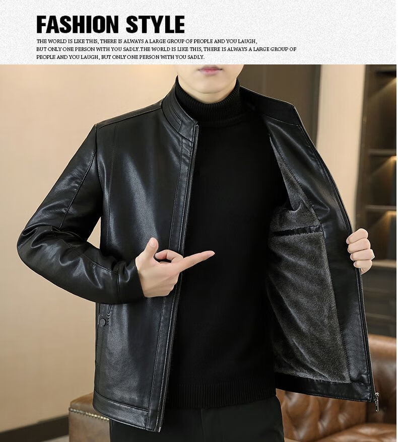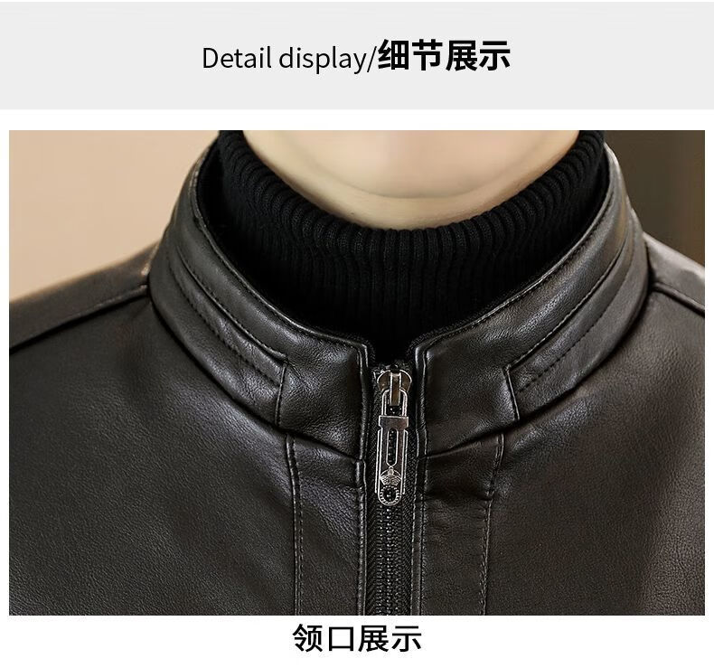 Autumn and winter velvet thickened leather jacket men's stand-up collar casual warm leather jacket middle-aged and elderly men's leather jacket men's K black velvet M (90-110Jin Jin equals 0.5 kg)