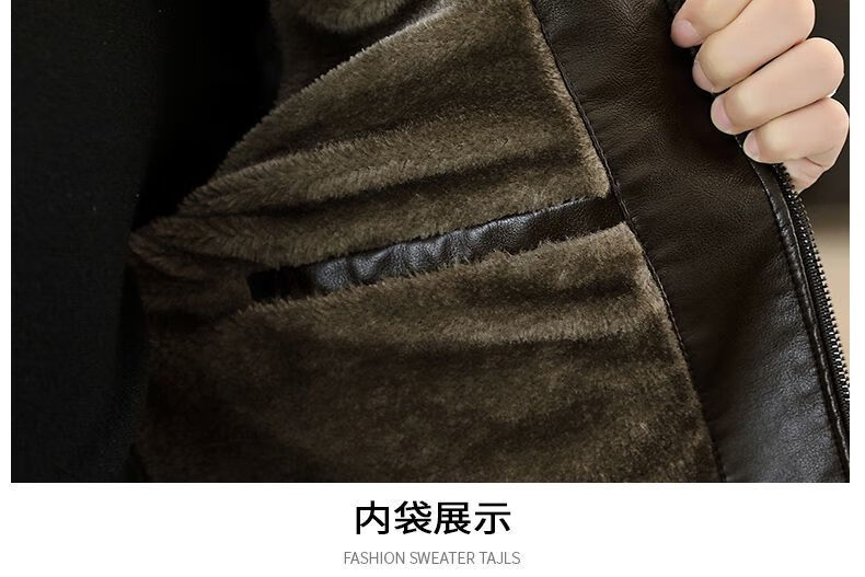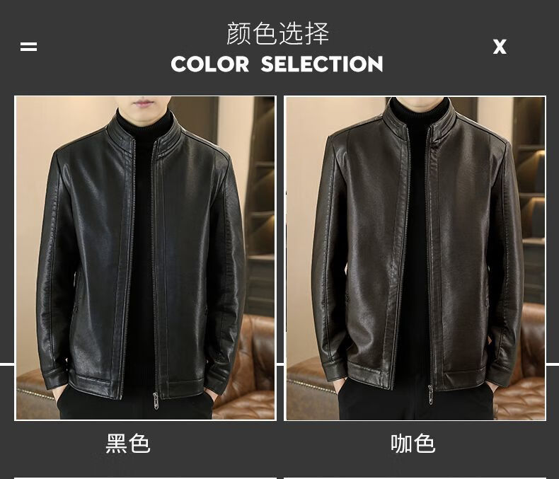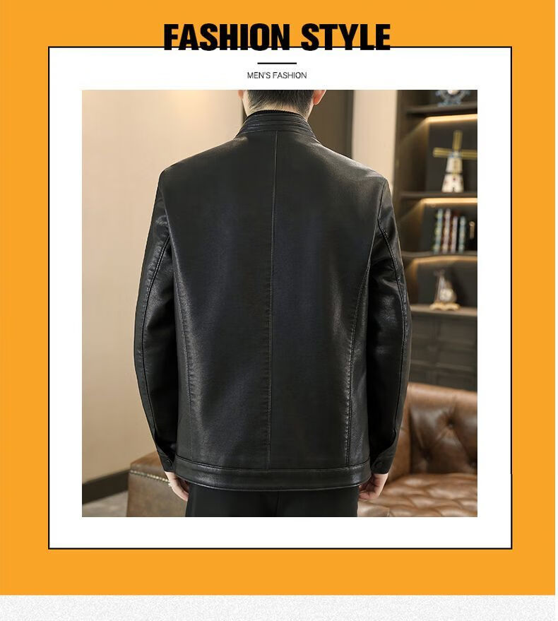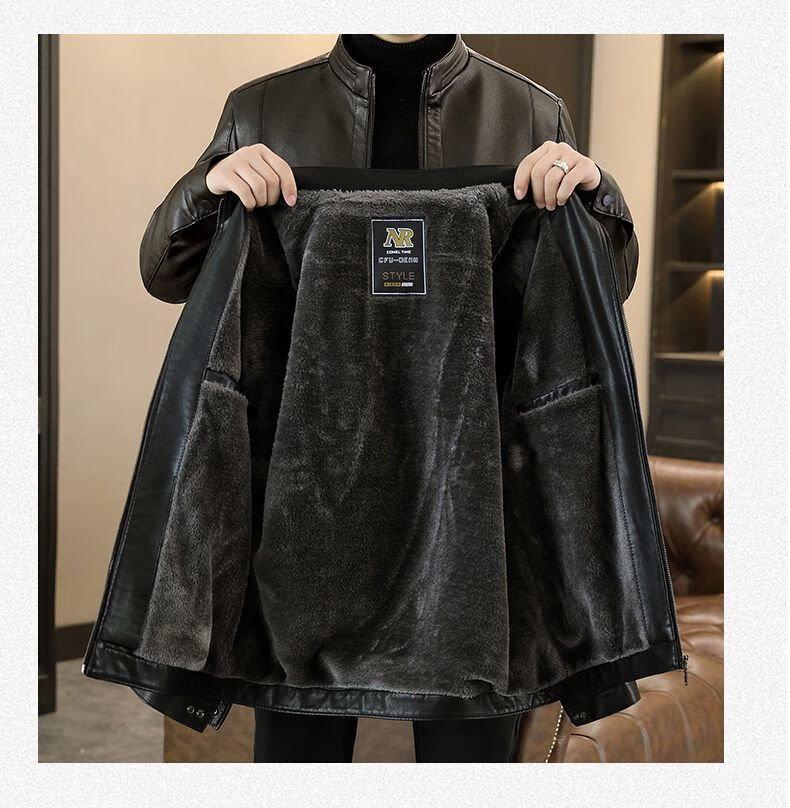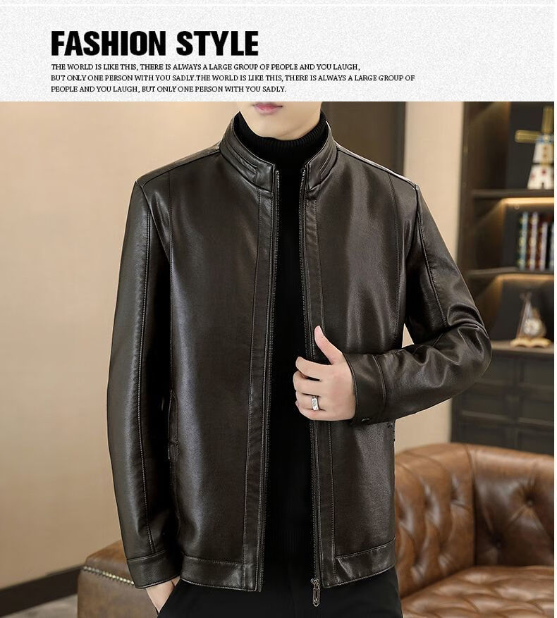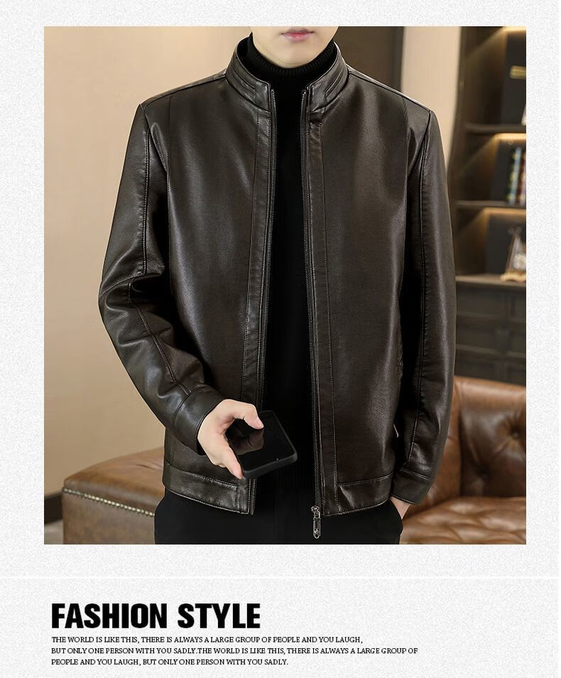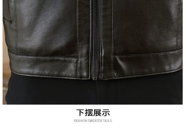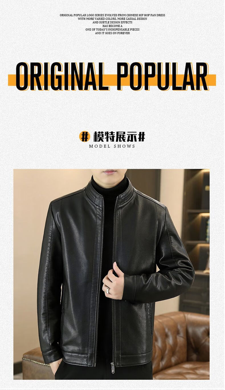 Autumn and winter velvet thickened leather jacket men's stand-up collar casual warm leather jacket middle-aged and elderly men's leather jacket men's K black velvet M (90-110Jin Jin equals 0.5 kg)