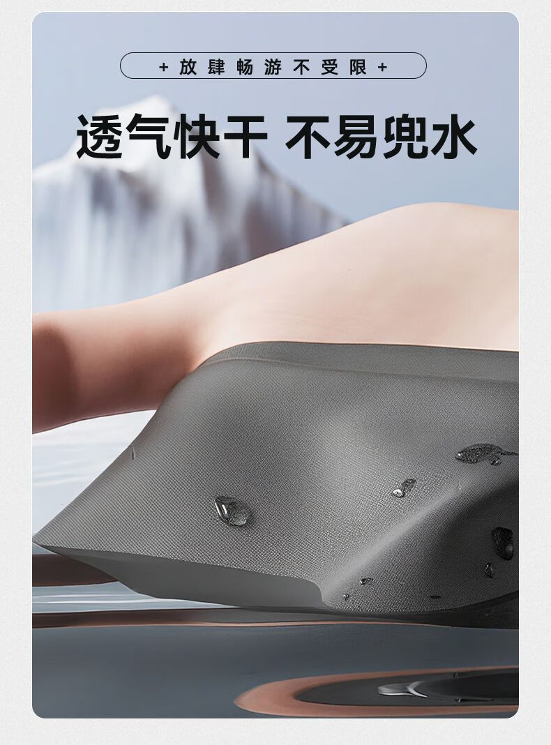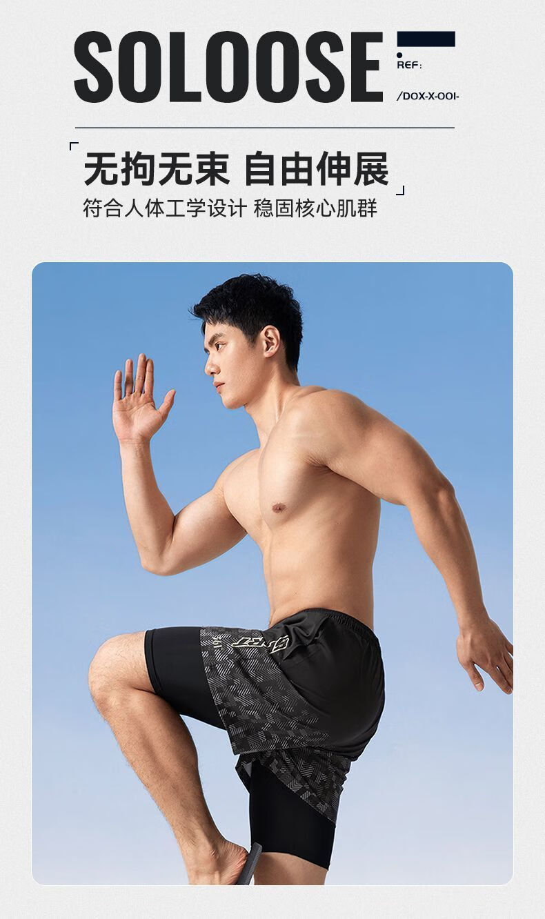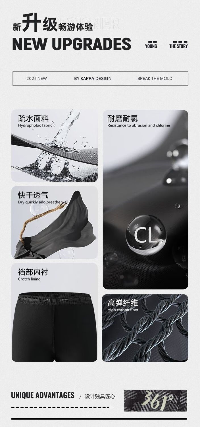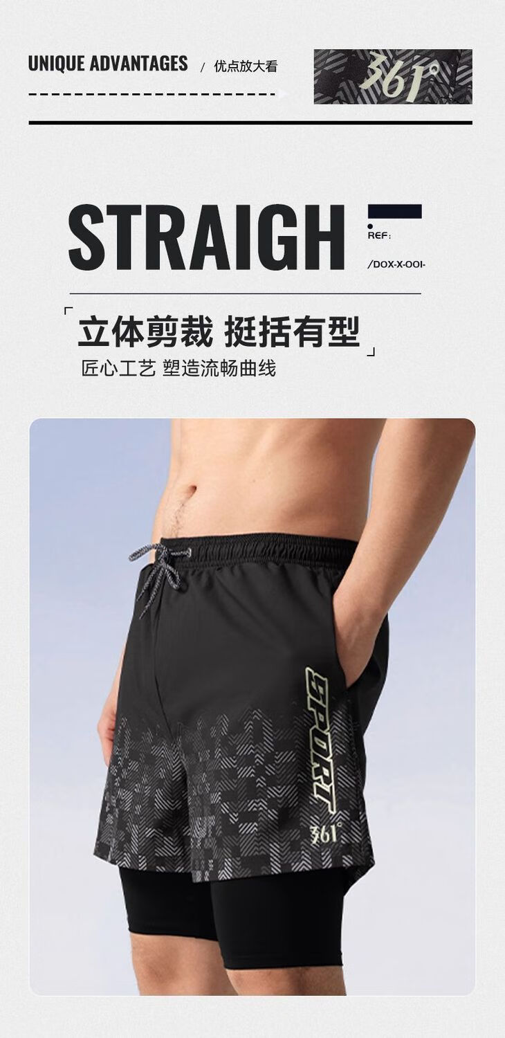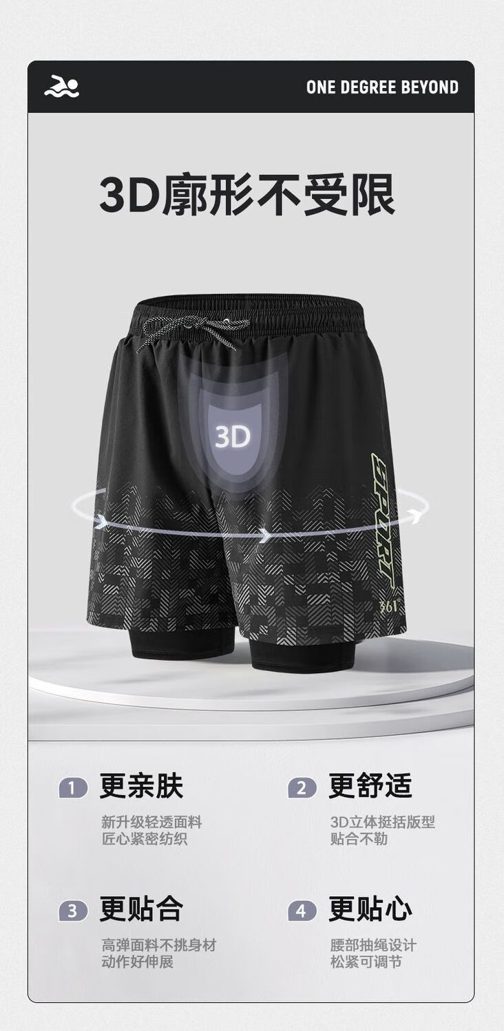 361 Men's new style anti-embarrassing large size five-point swimming trunks adult double-layer swimming sports quick-drying shorts black swimming trunks+swimming cap+swimming goggles+mobile phone waterproof bag M