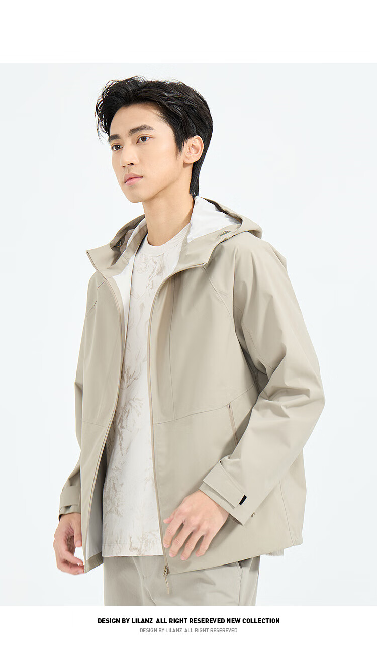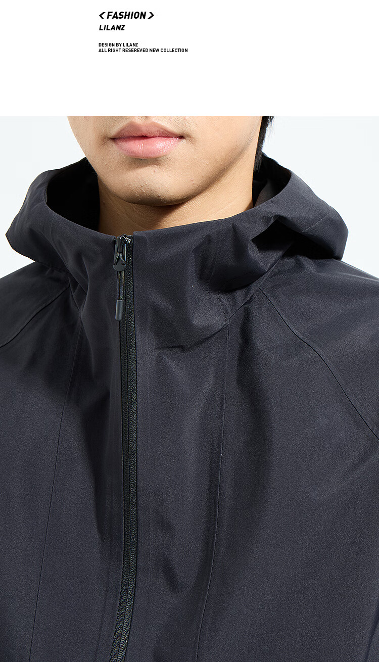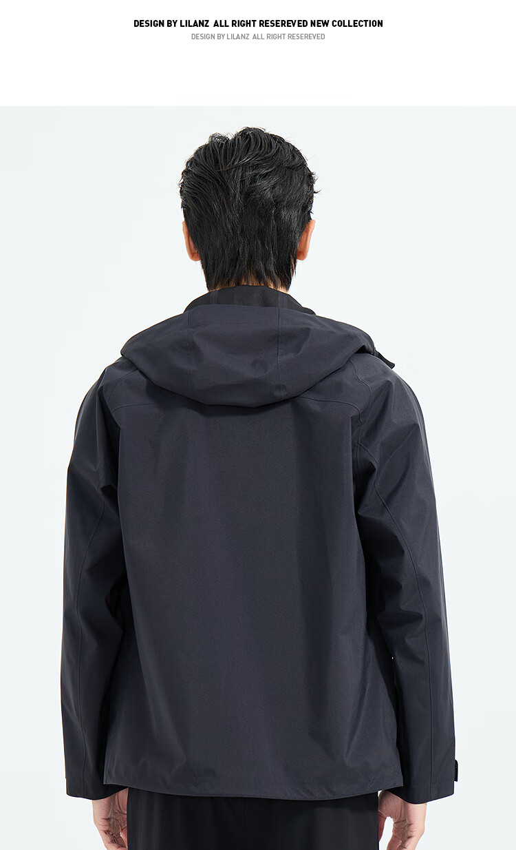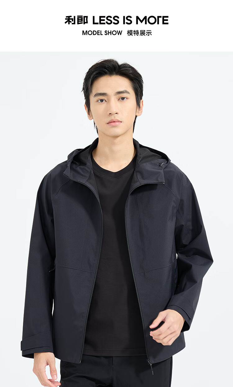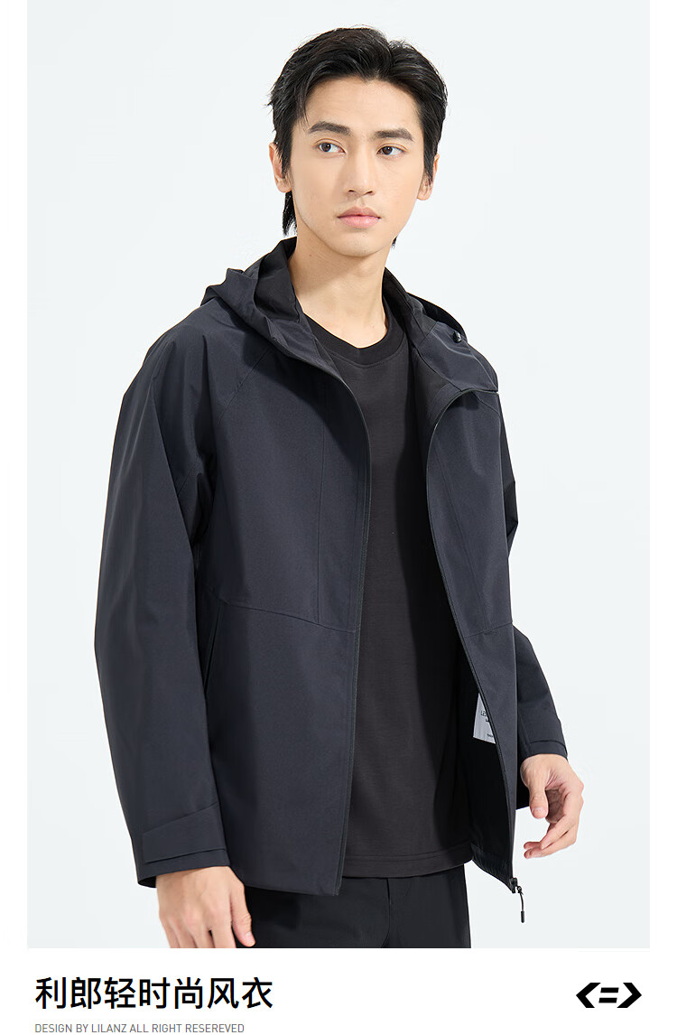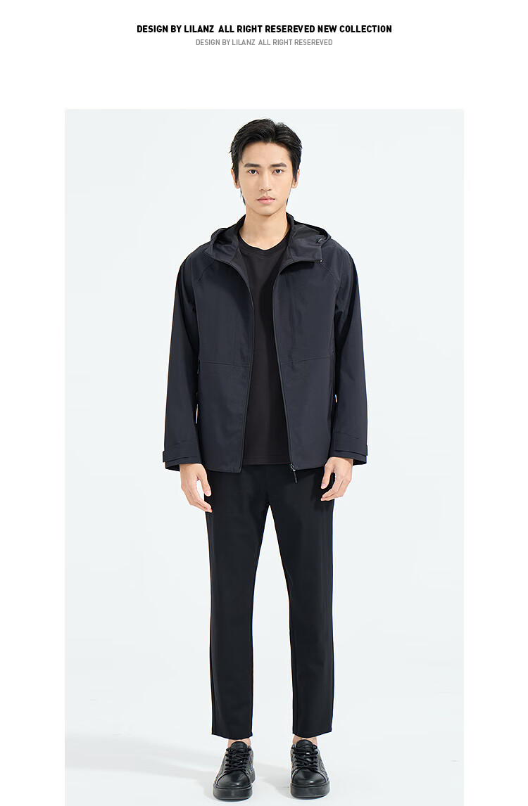 LiLang Легкая модная мужская одежда Торговый центр Ветровка в одном стиле Мужская эластичная легкая в уходе ветрозащитная куртка с капюшоном для поездок на работу, черная (1K) M (165)