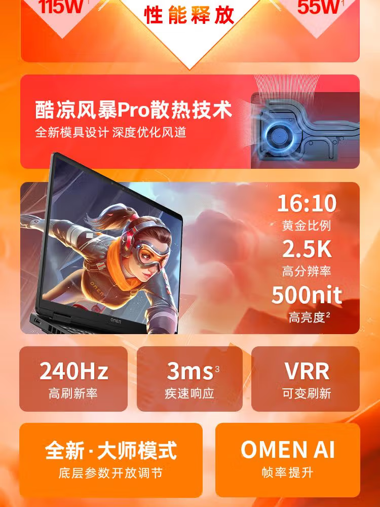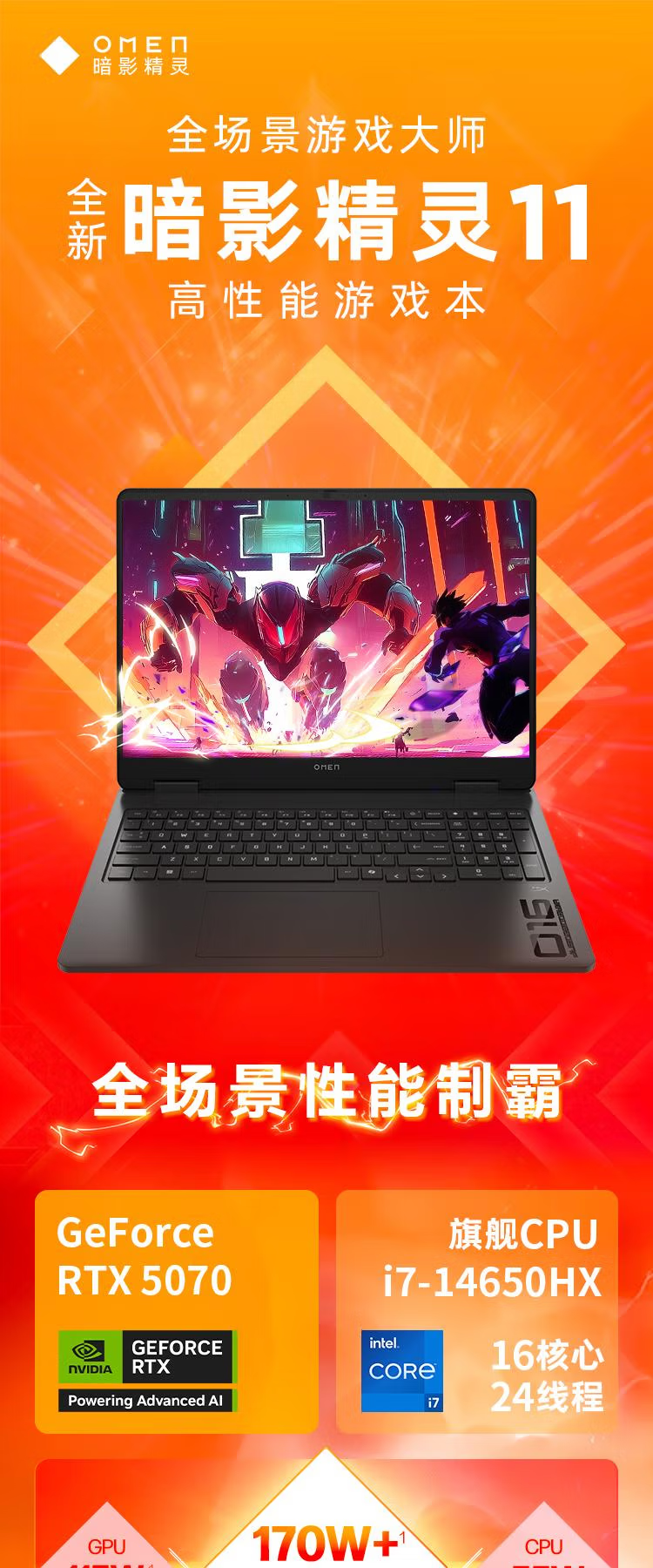 惠普展机暗影精灵11/10 2024/25款RTX5060满血电竞游戏笔记本电脑 光影10 i7-13620H RTX4060 16G+1T 官方正品|全国质保