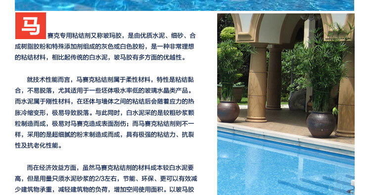 XMSJ玻玛胶水池游泳池鱼池游泳粘结剂辅料防水瓷砖胶马赛克专用胶水池 中性胶镜面马赛克用