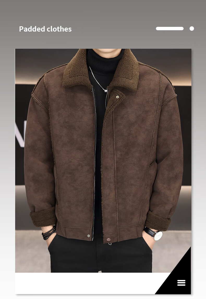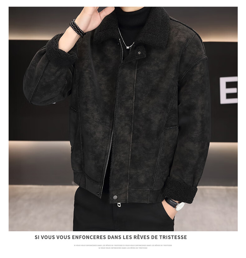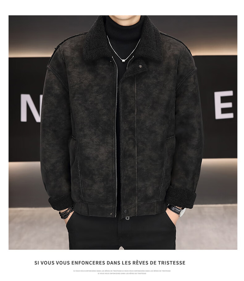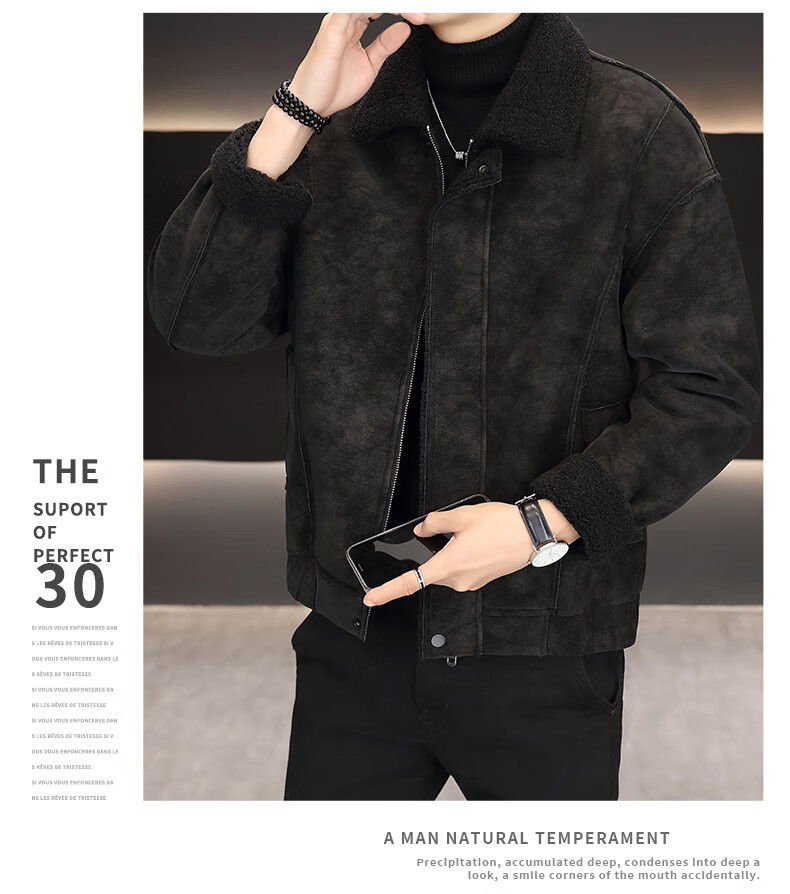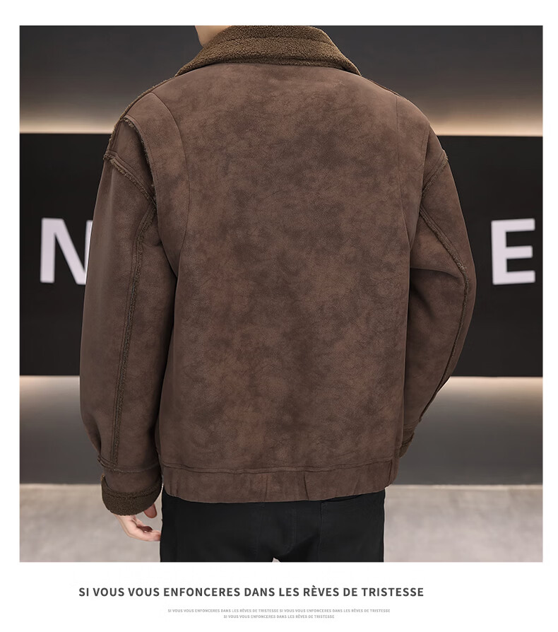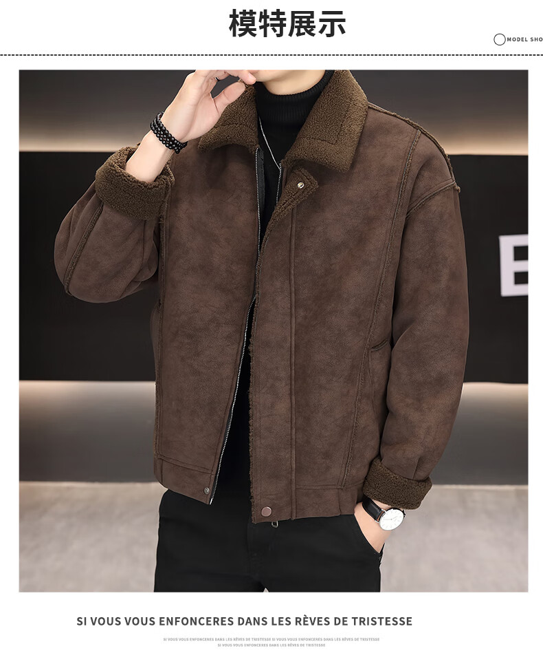 恒源祥皮毛一体男士皮衣冬季加绒加厚鹿皮绒PU皮翻领夹克保暖棉袄外套潮 咖啡色 L