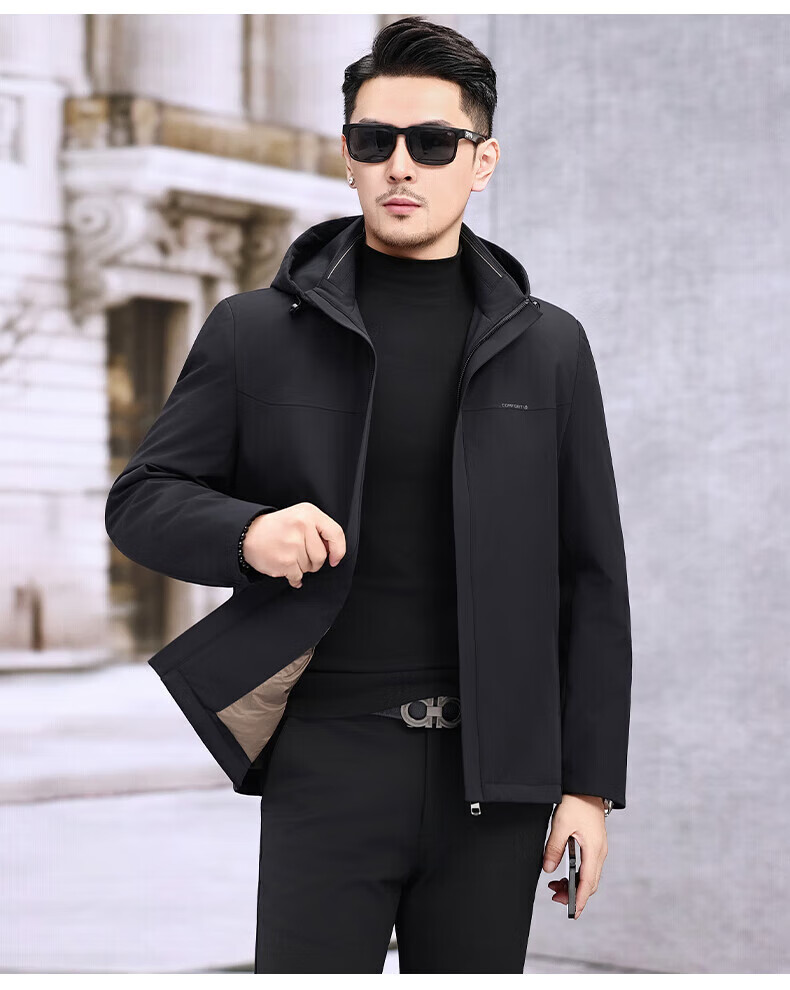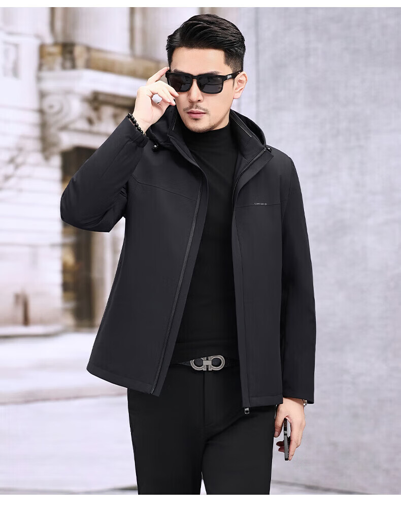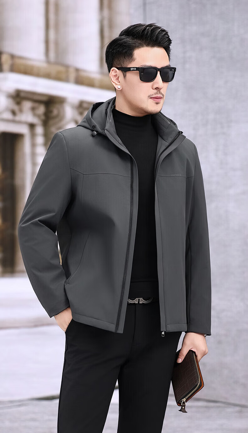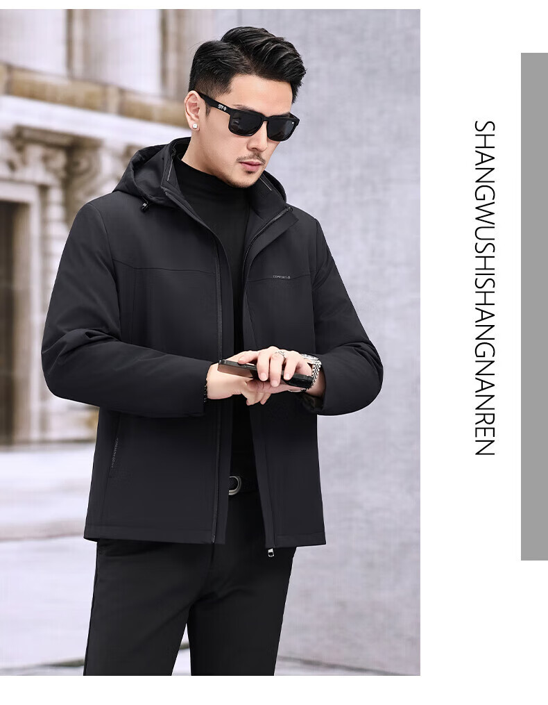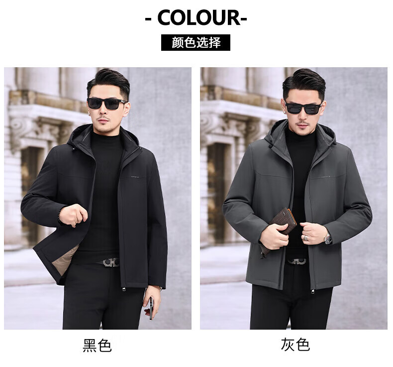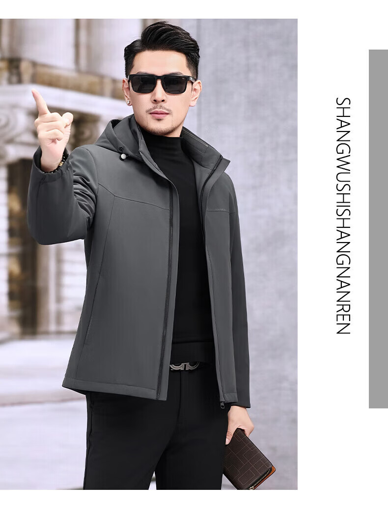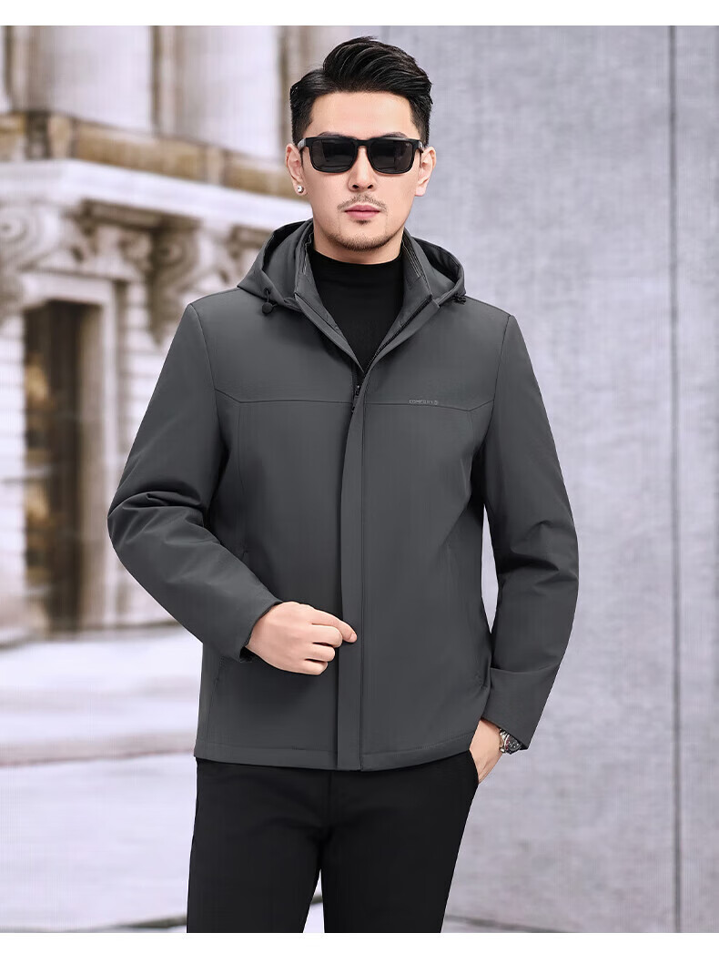LILANZ利郎爸爸秋冬男外套2025秋季新款中年夹克男休闲连帽羽绒服上衣 灰色 M 170/48 建议115-130斤