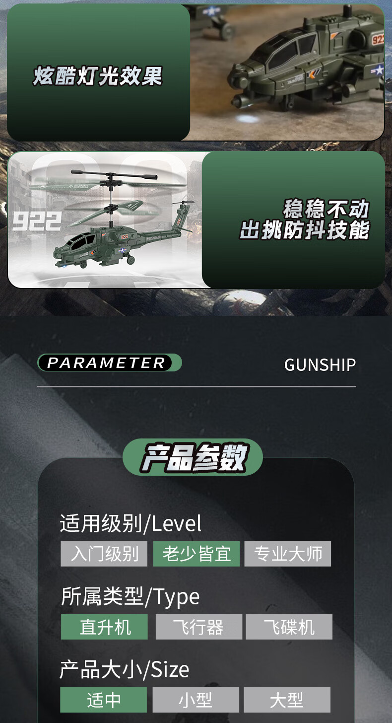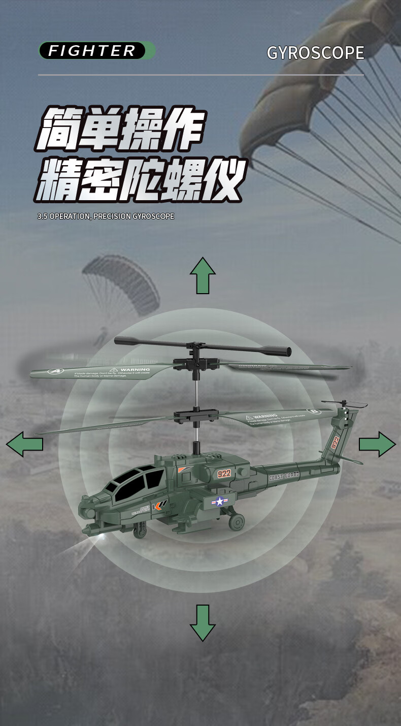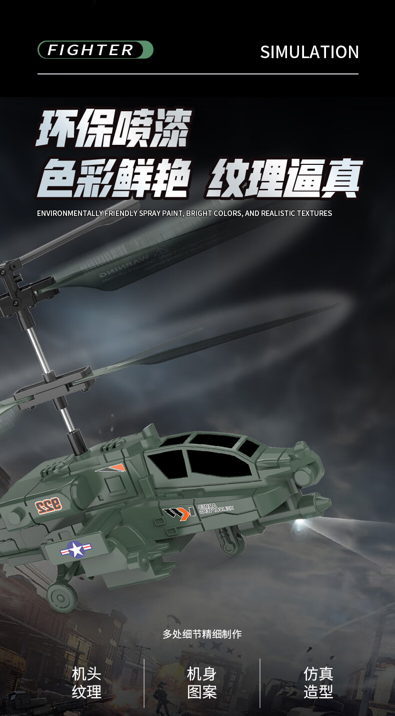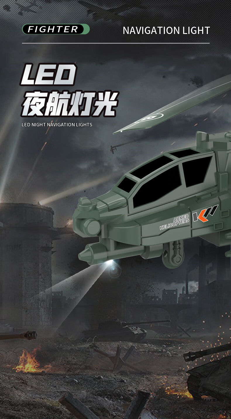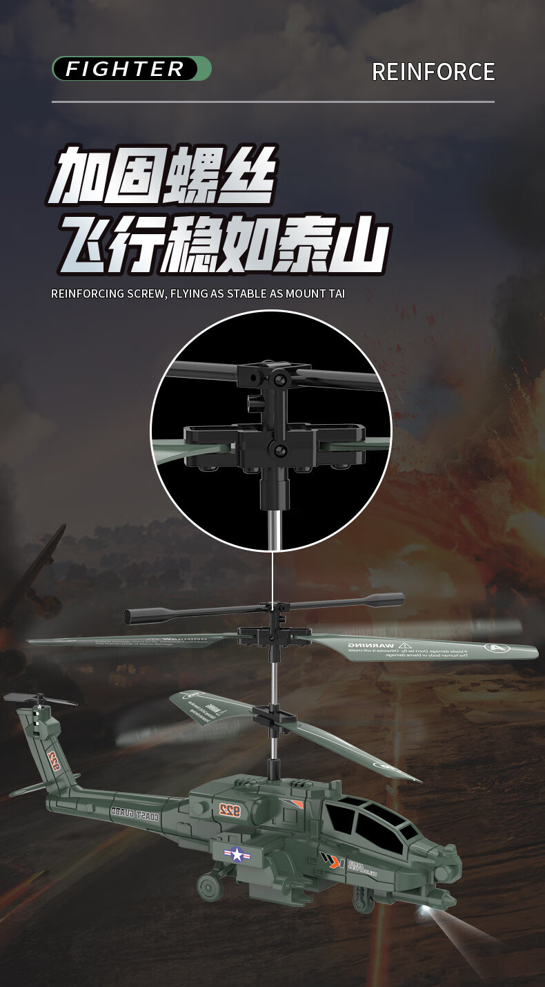 Sailoto Apache ferngesteuertes Flugzeug 36-jähriges Kindergeschenk mit Gyroskop und Anti-Fall-bewaffnetem Hubschrauber-Spielzeugmodell-Maschinengrün