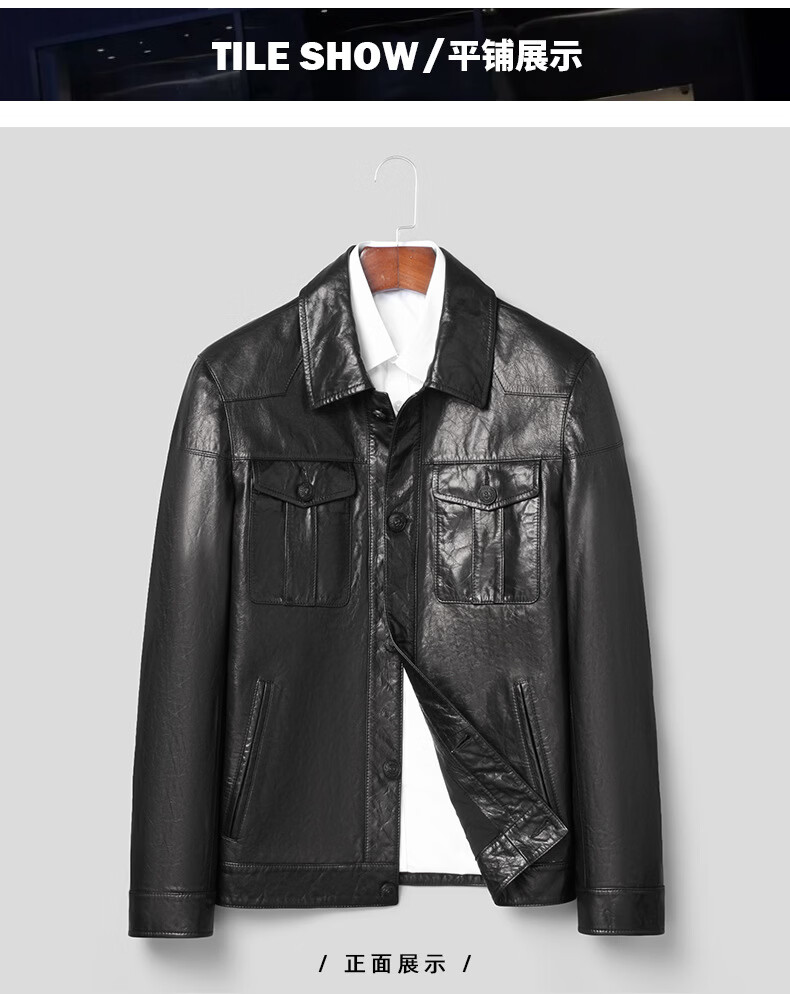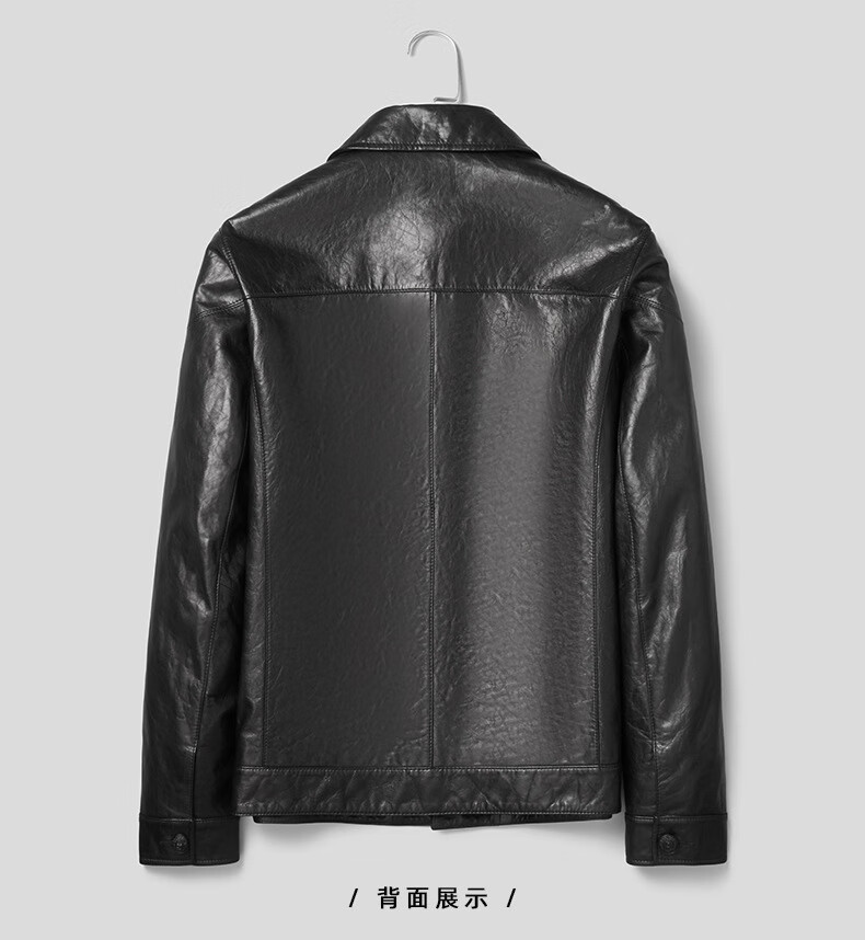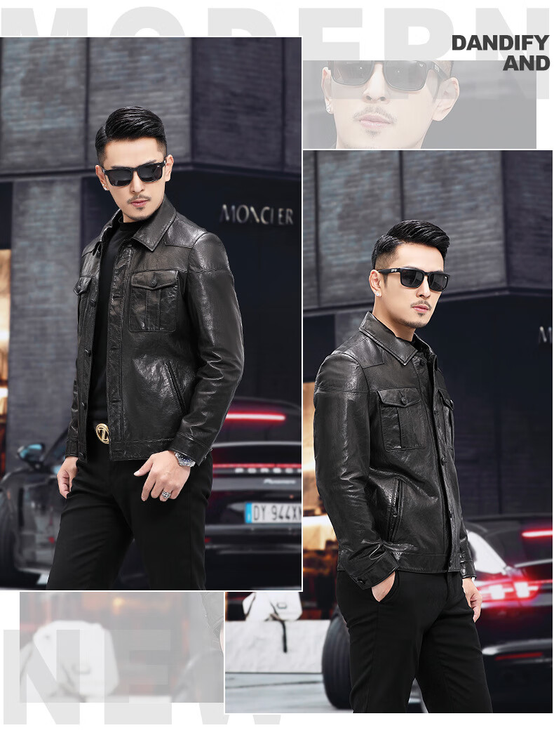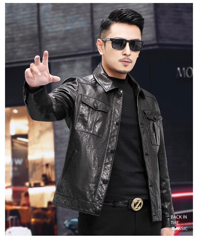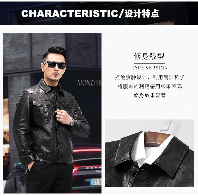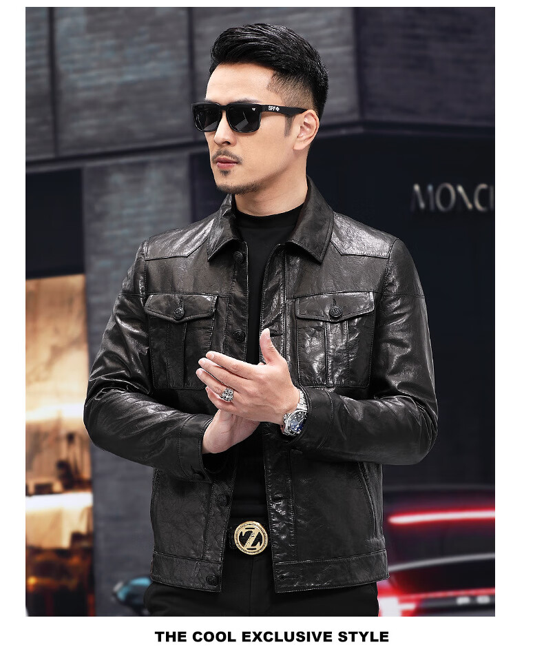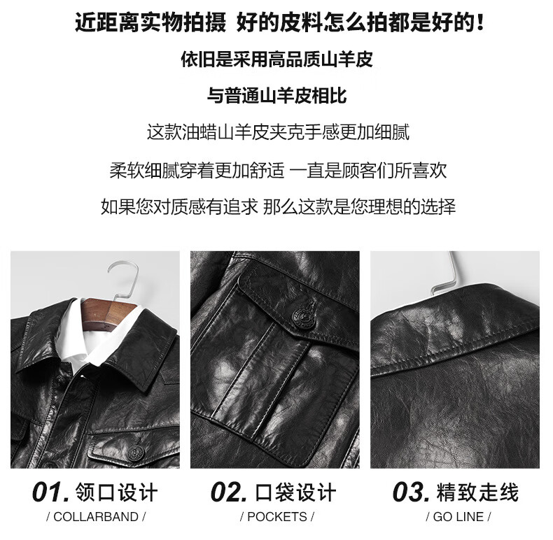 Fat Donglai Supermarket purchasing men's spring and autumn new Haining goatskin oil wax leather jacket casual short jacket same style black L