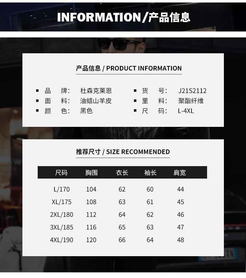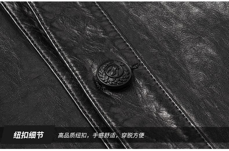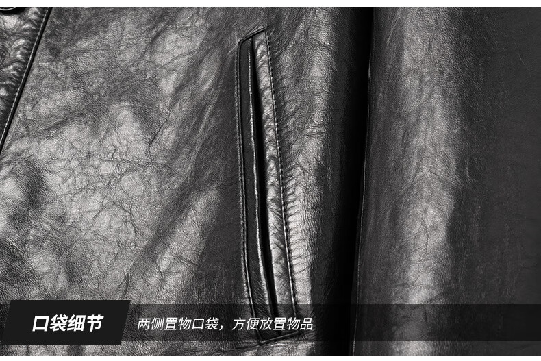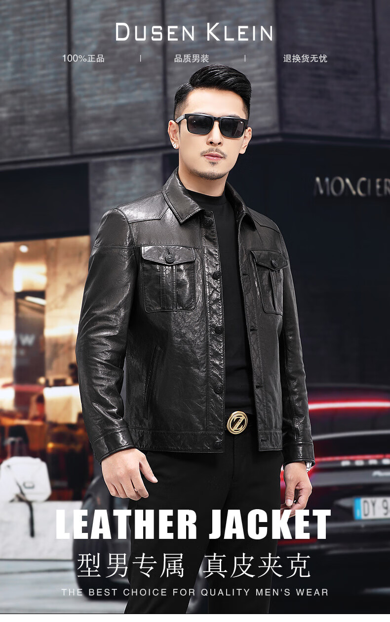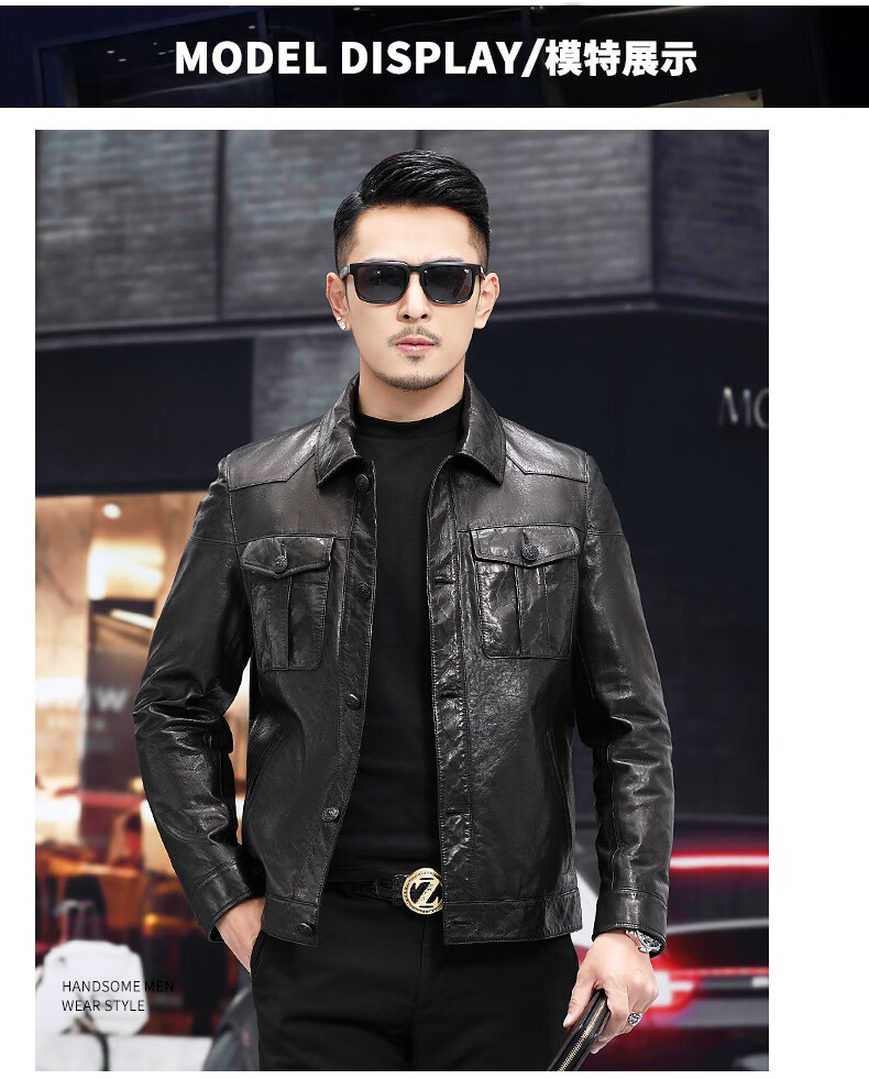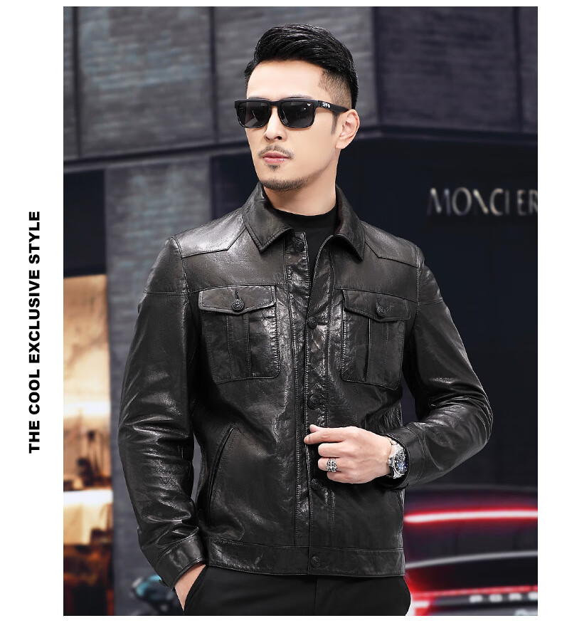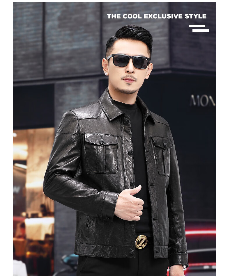 Fat Donglai Supermarket purchasing men's spring and autumn new Haining goatskin oil wax leather jacket casual short jacket same style black L