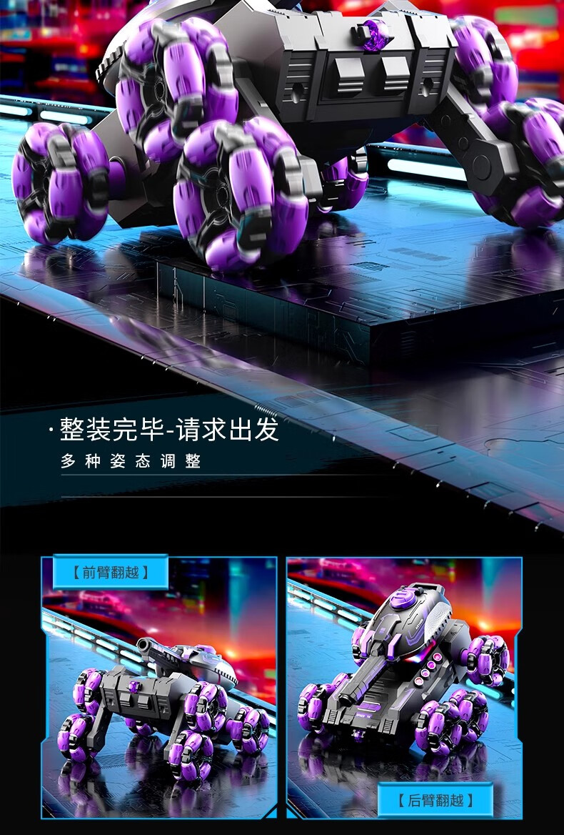 六轮特技遥控发射水弹坦克车儿童玩具手势感应越野车男孩汽车礼物 B六轮变形特技水弹坦克车手柄 单组标配续航40分钟+8万水弹