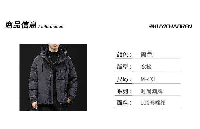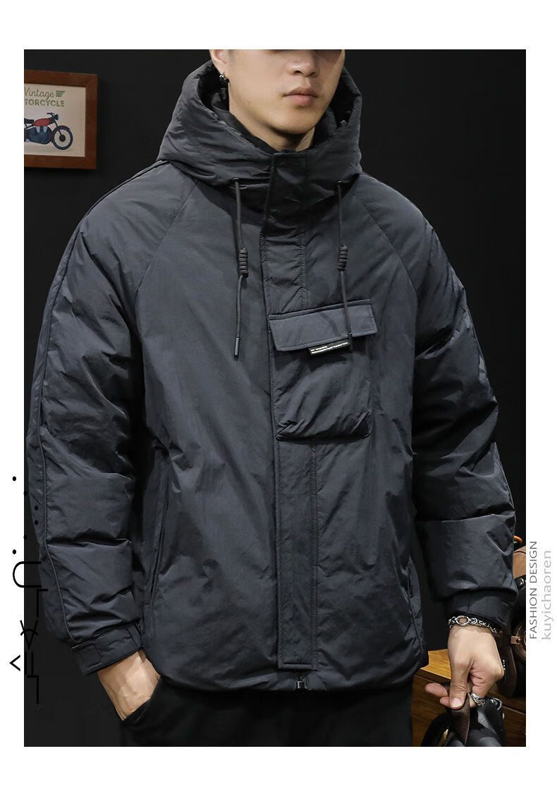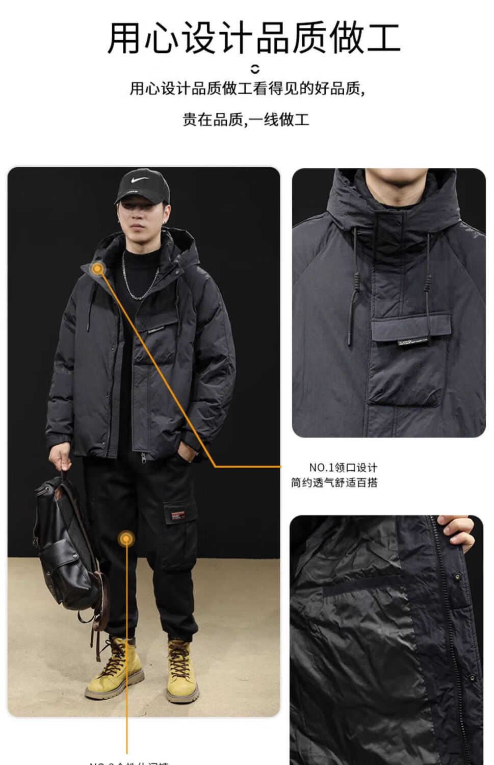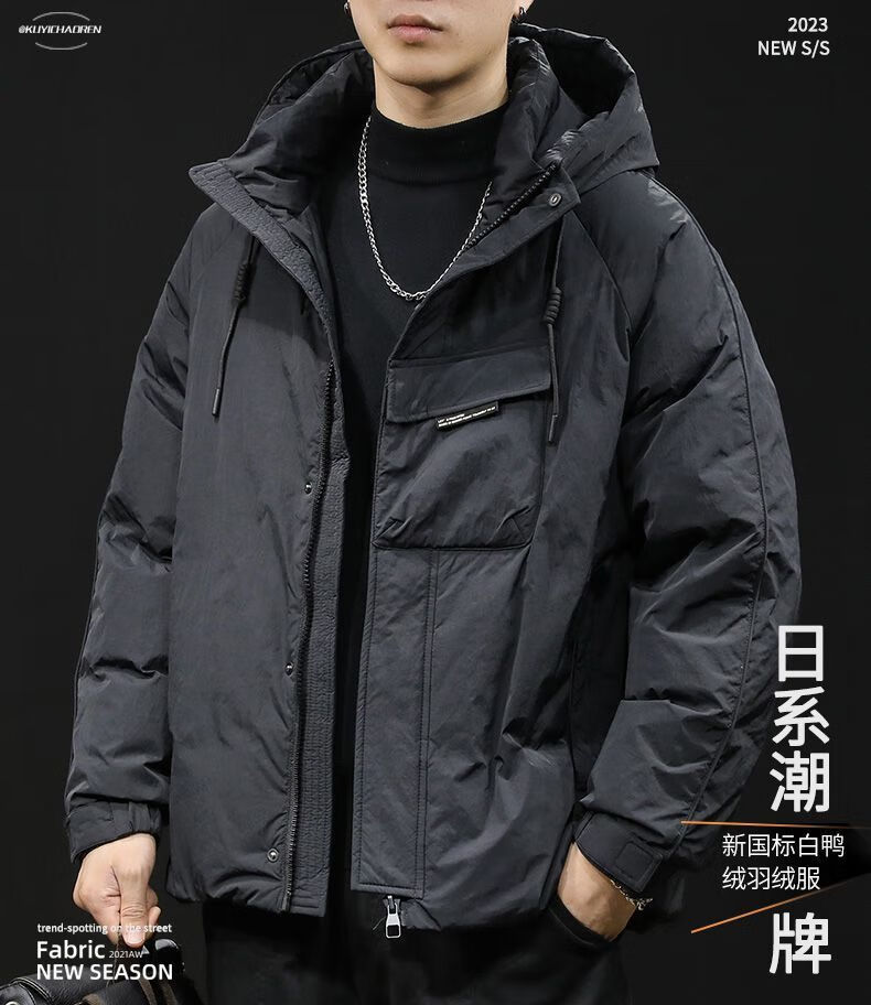 JEEP SPIRIT, новинка 2025, зимний пуховик, рабочая куртка, утепленная, теплая, с капюшоном, мужская легкая, роскошная, короткая, на белом утином пуху, черная (пуховик высокого качества) L рекомендуется 100–115 Jin Jin = 0,5 кг