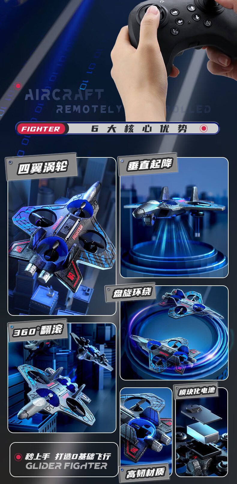 Neues ferngesteuertes Flugzeug, sturzsicher, Hochrotorjäger, Kindermodellflugzeug, vierachsige Drohne, Spielzeugschaumflugzeug, X92-Schaumdrohne, Doppelfernbedienung, rot, Werksversion mit Einzelbatterie